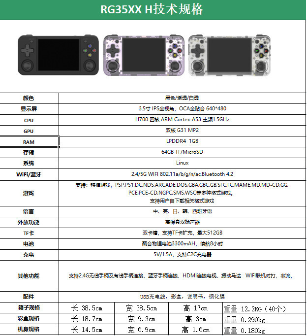 크로스보더 RG35XXH 오픈소스 휴대용 게임기, 듀얼 조이스틱, 레트로 PSP TV 게임기, Anbernic 아케이드 게임기 도매스토어 가기