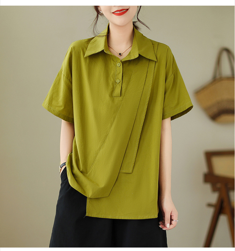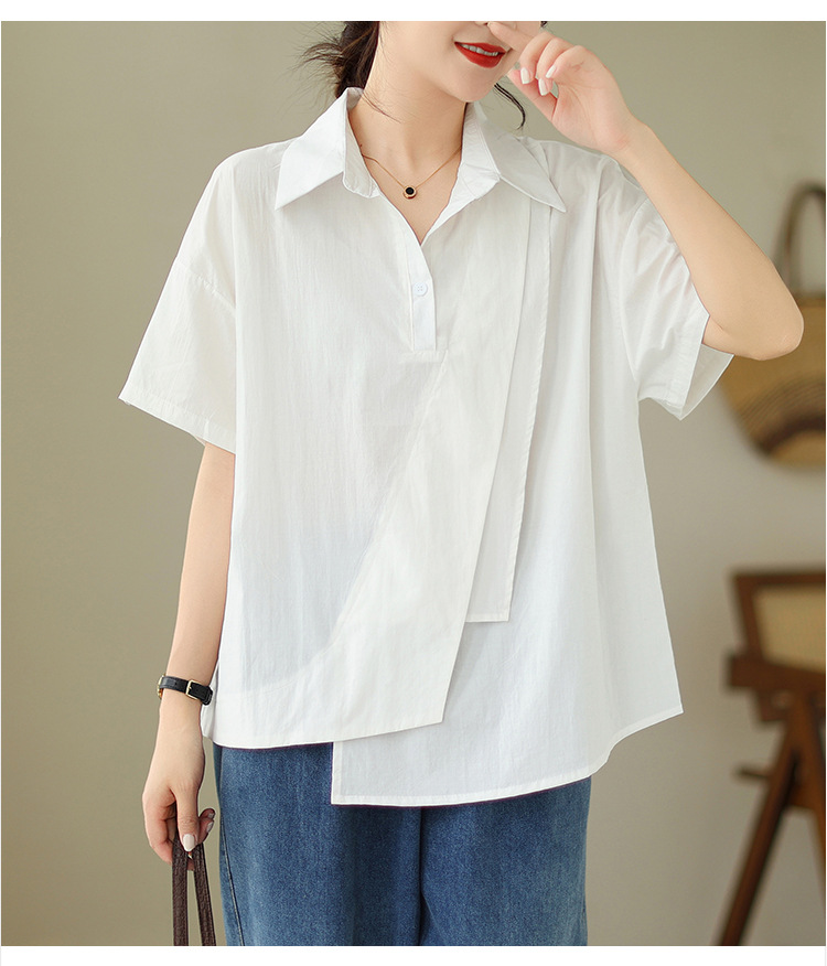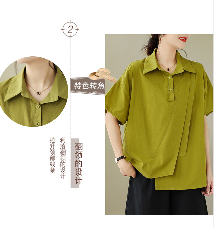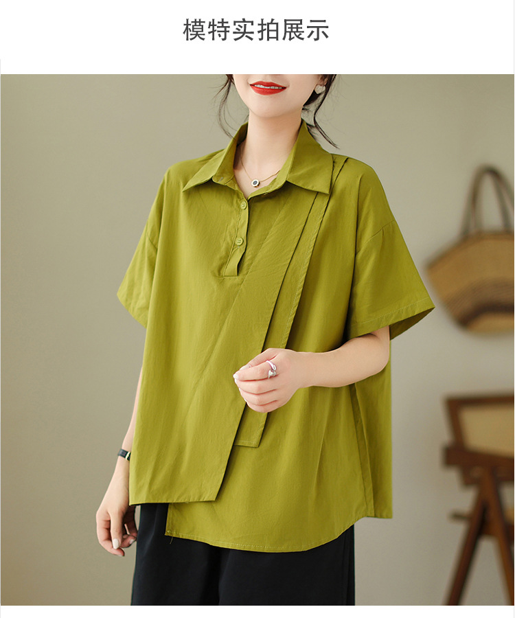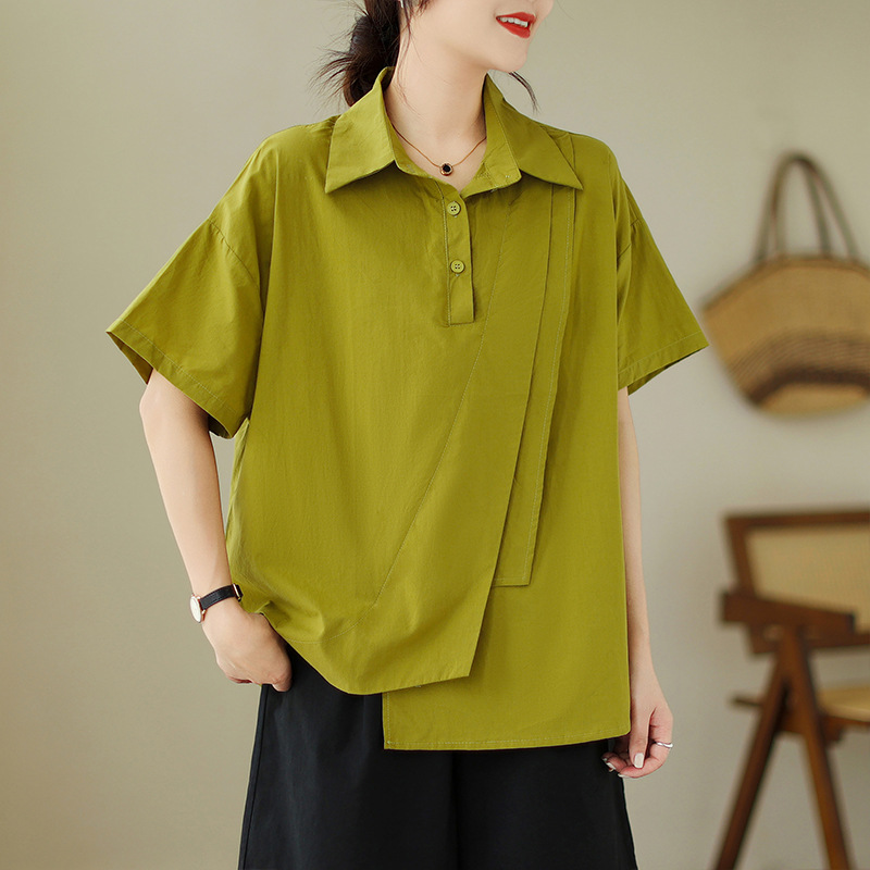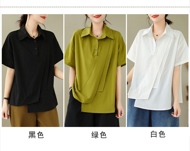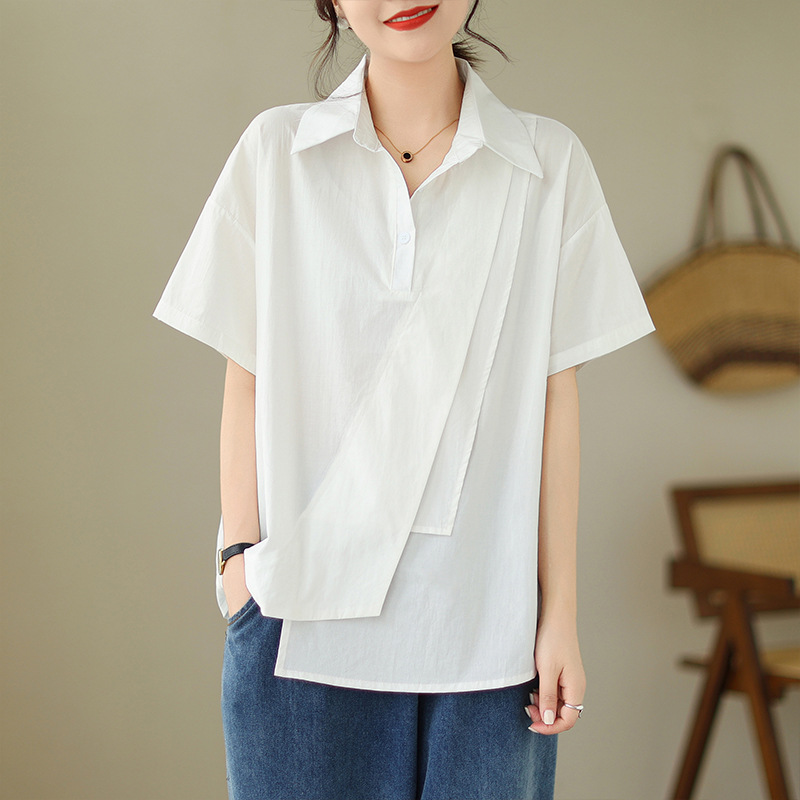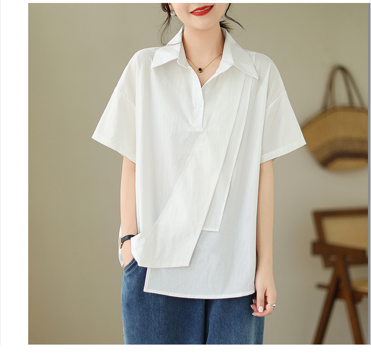 9071 # 원래 불규칙한 바느질 머리 셔츠 여성 디자인 짧은 소매 셔츠스토어 가기