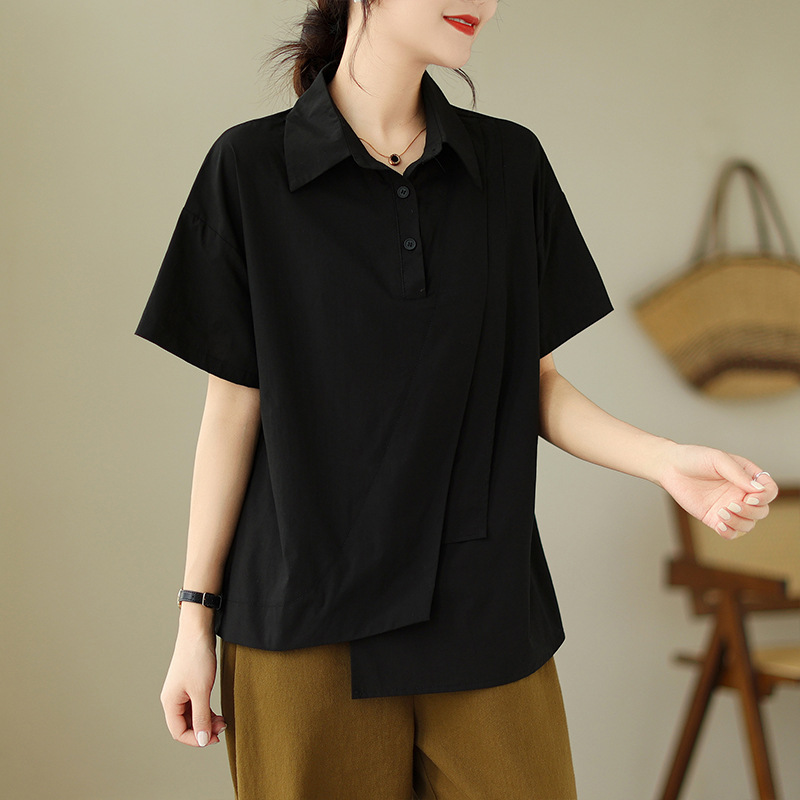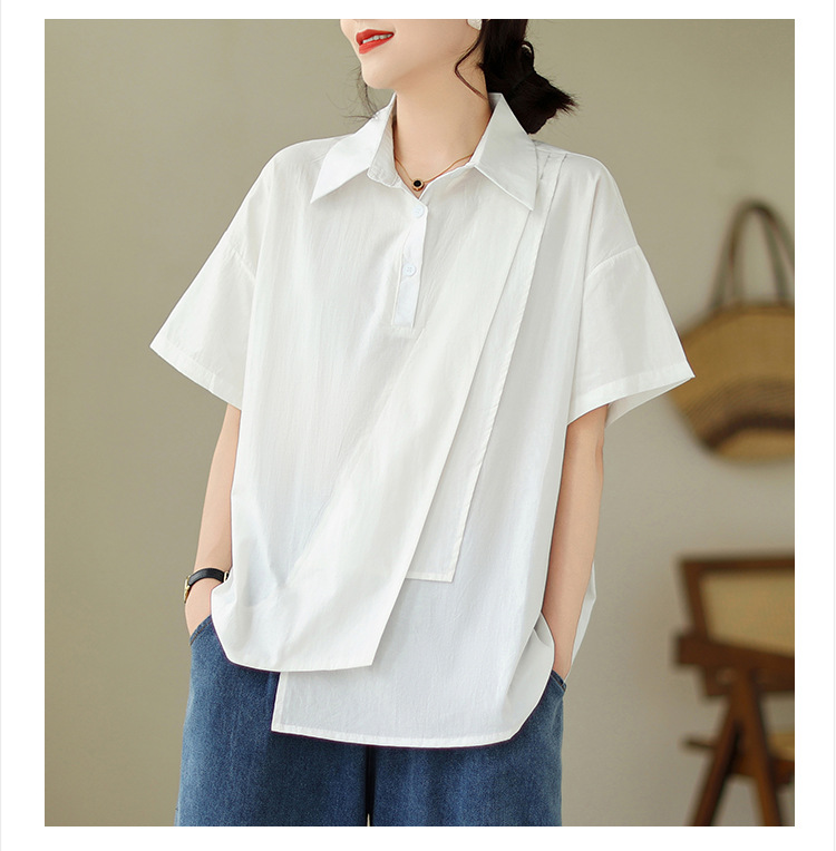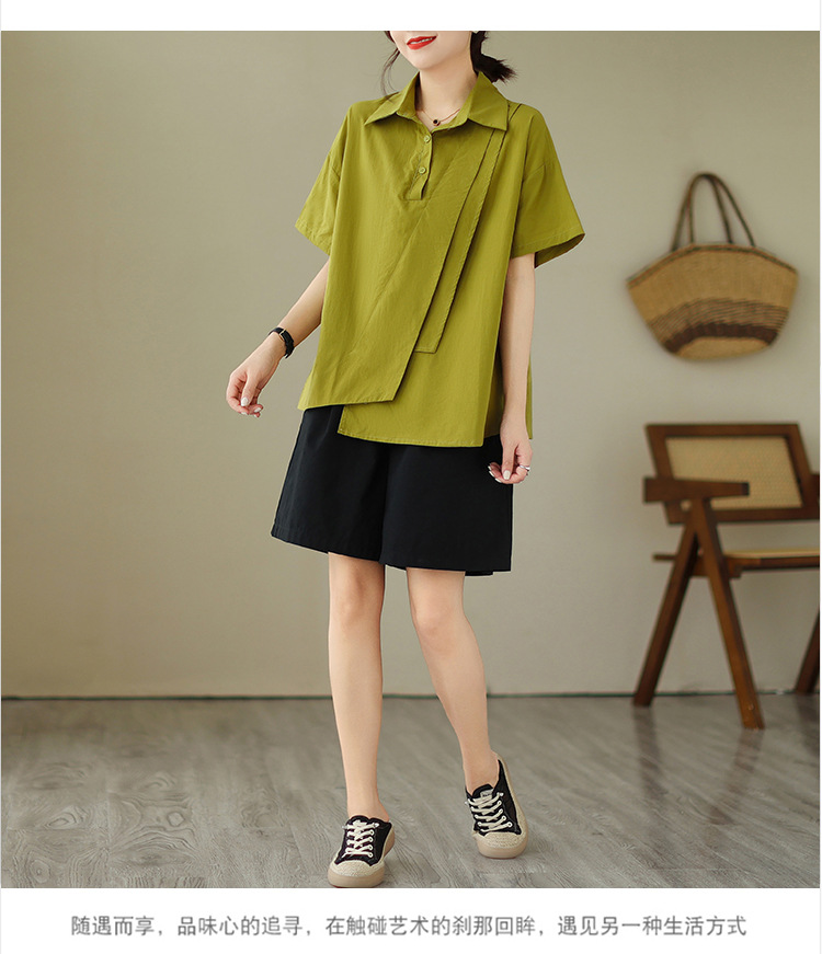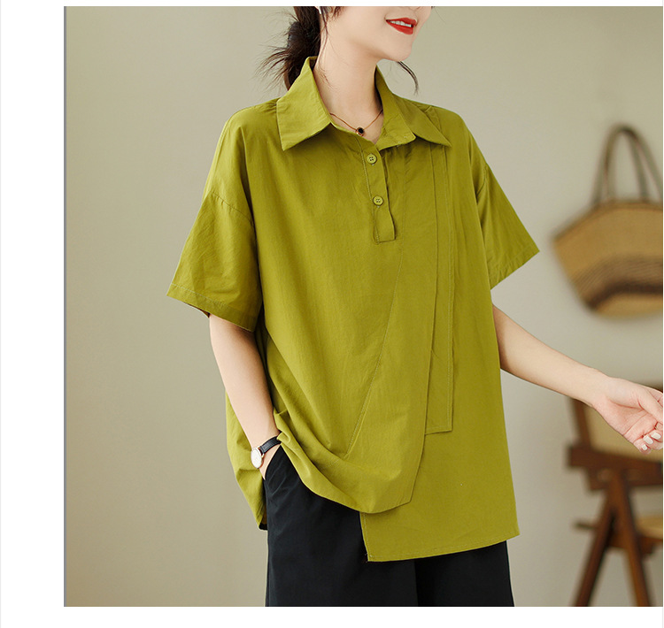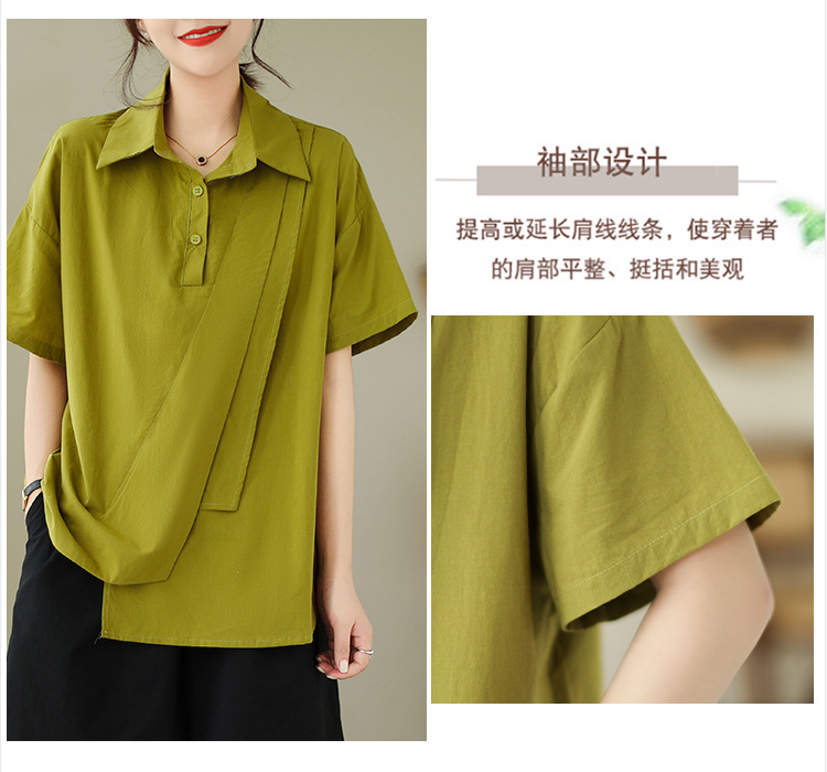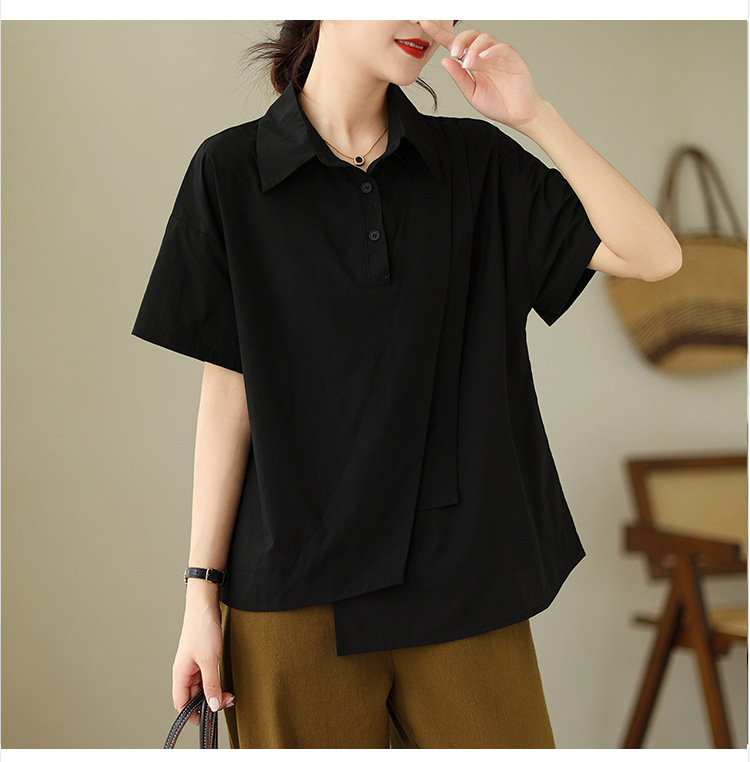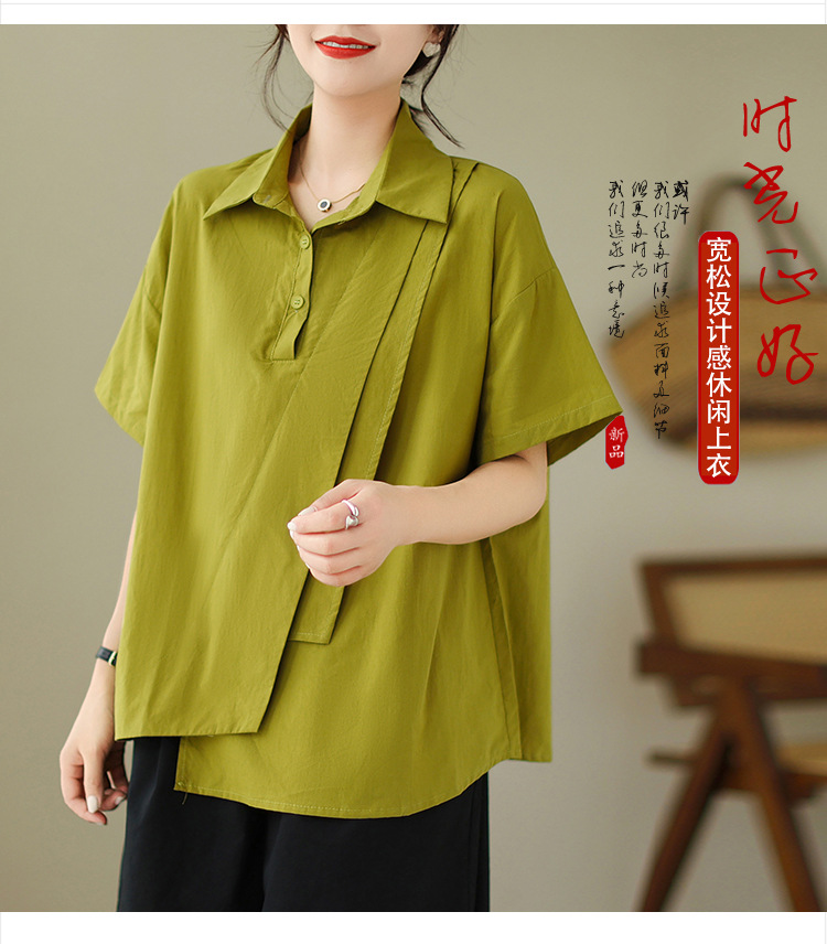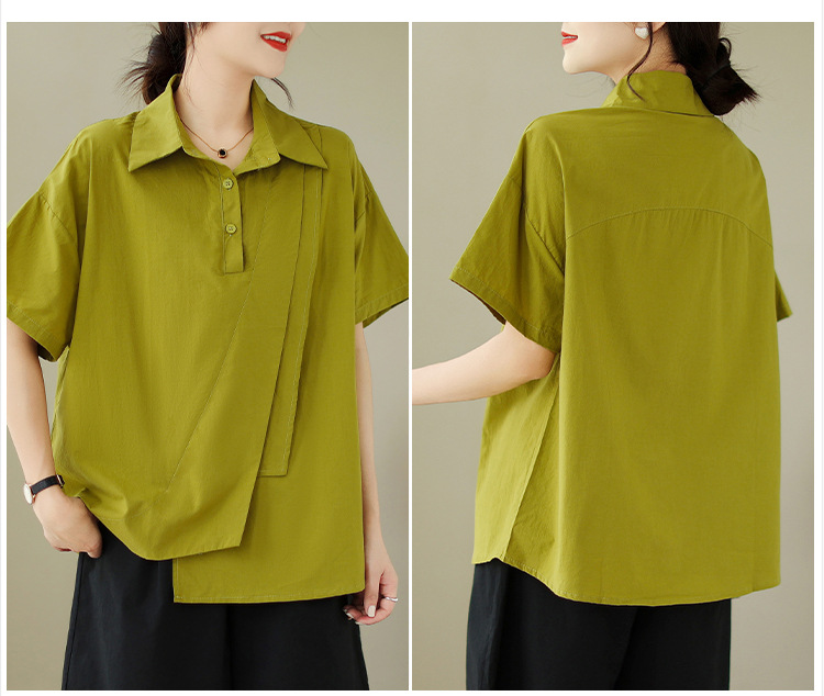 9071 # 원래 불규칙한 바느질 머리 셔츠 여성 디자인 짧은 소매 셔츠스토어 가기