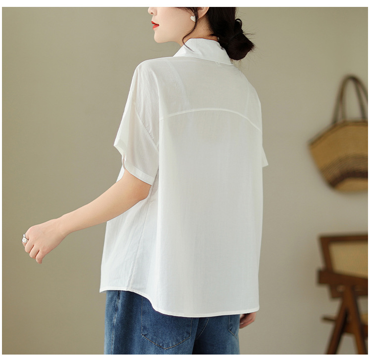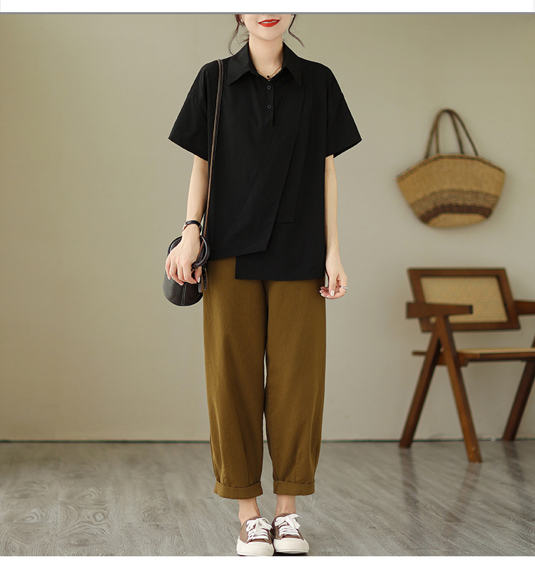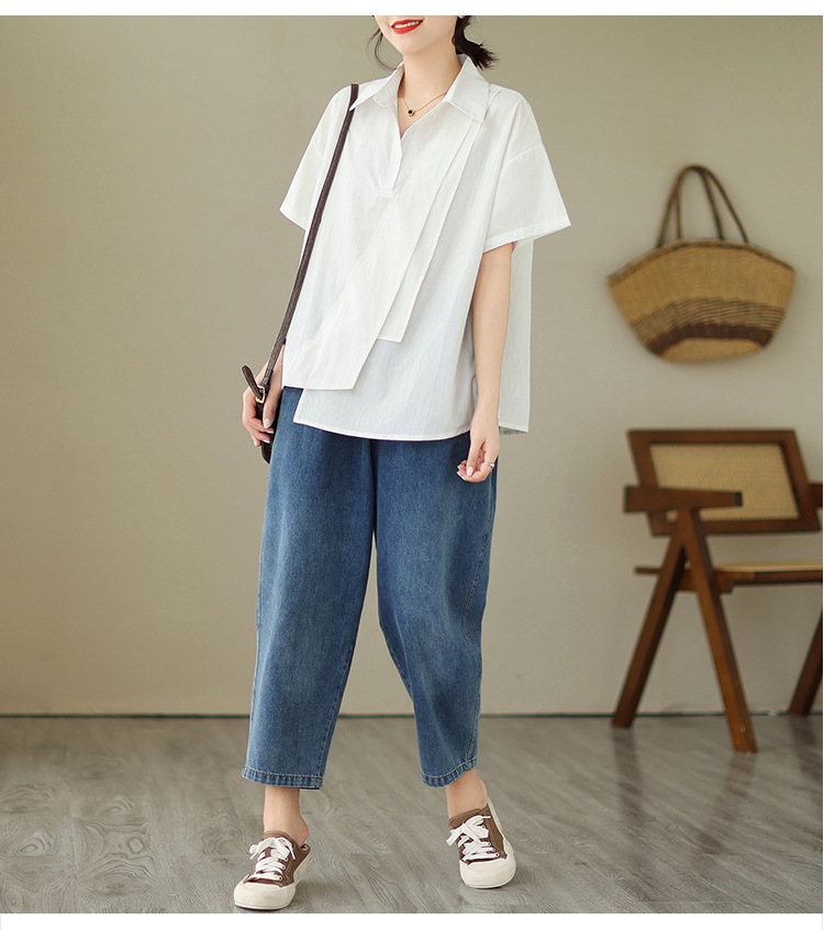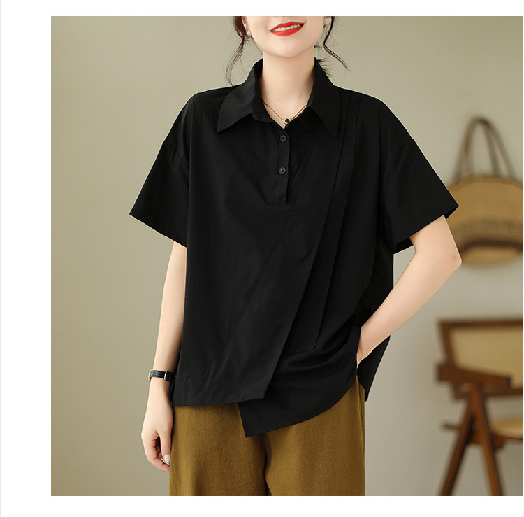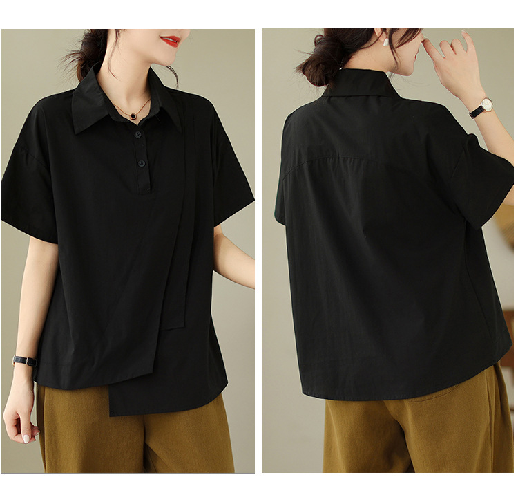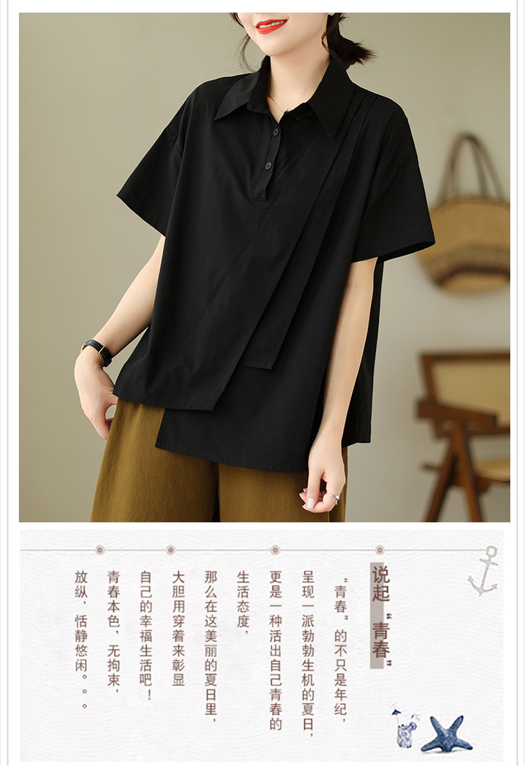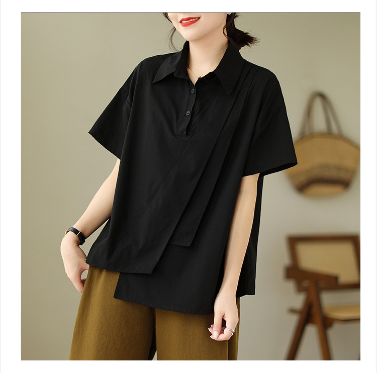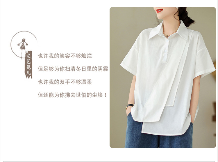 9071 # 원래 불규칙한 바느질 머리 셔츠 여성 디자인 짧은 소매 셔츠스토어 가기