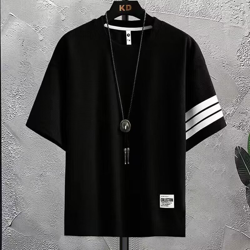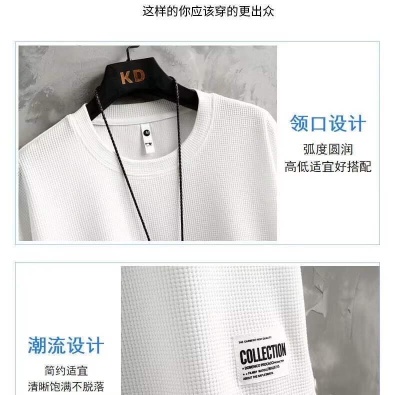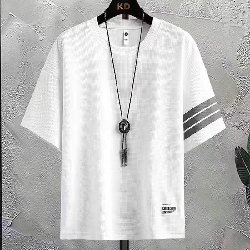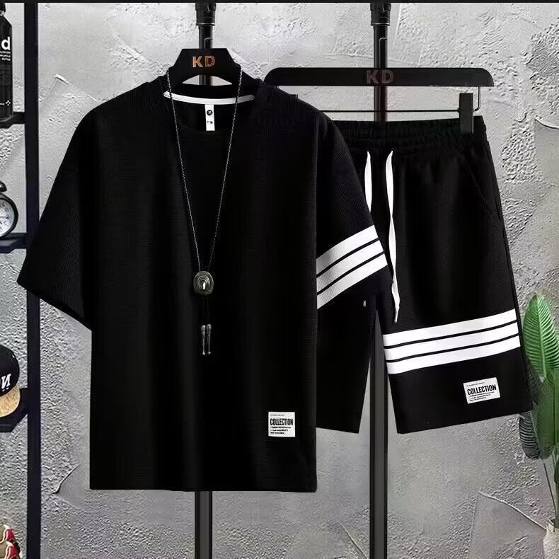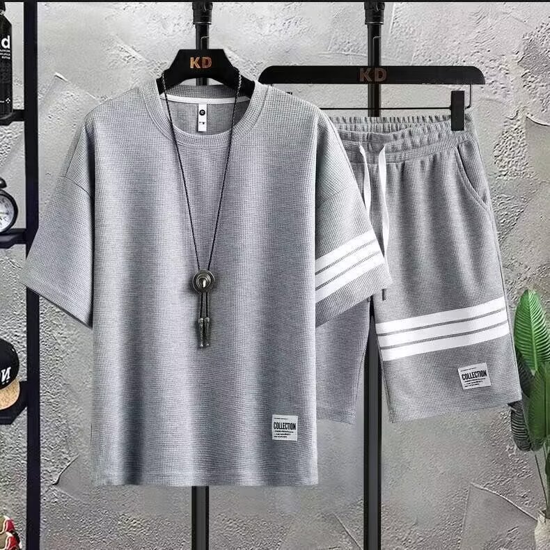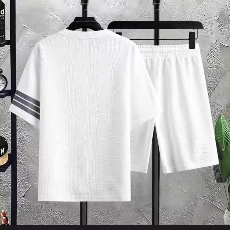 와플 세트 반팔 티셔츠 남성 반바지 3 바 스포츠 느슨한 캐주얼 땀 흡수성 통기성 패션 브랜드 투피스 세트