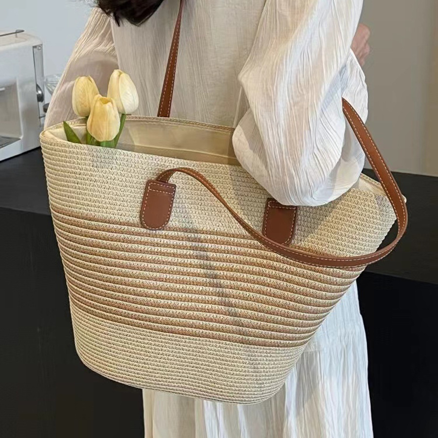 해변 휴가 대용량 밀짚 가방 여성의 작은 신선한 스타일 예술적 토트 가방 인터넷 인기있는 유행 캐주얼 속옷 가방