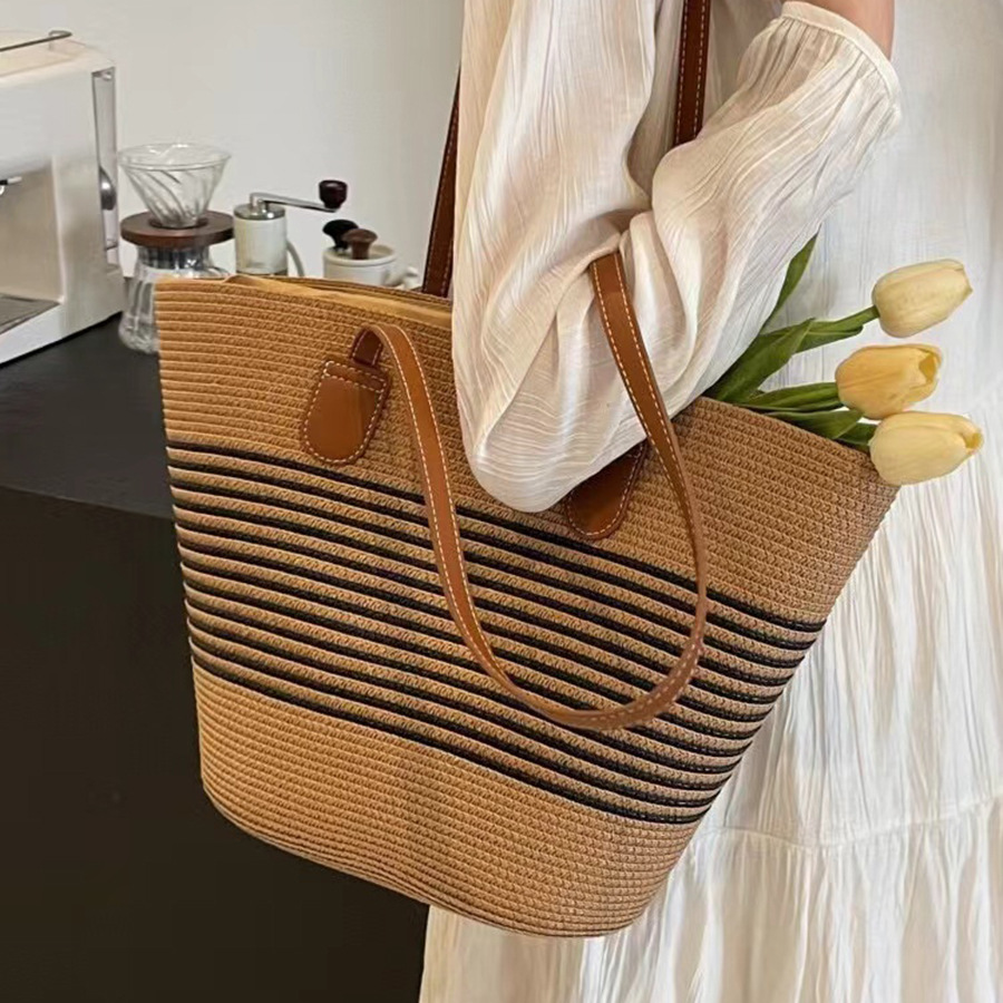 해변 휴가 대용량 밀짚 가방 여성의 작은 신선한 스타일 예술적 토트 가방 인터넷 인기있는 유행 캐주얼 속옷 가방스토어 가기