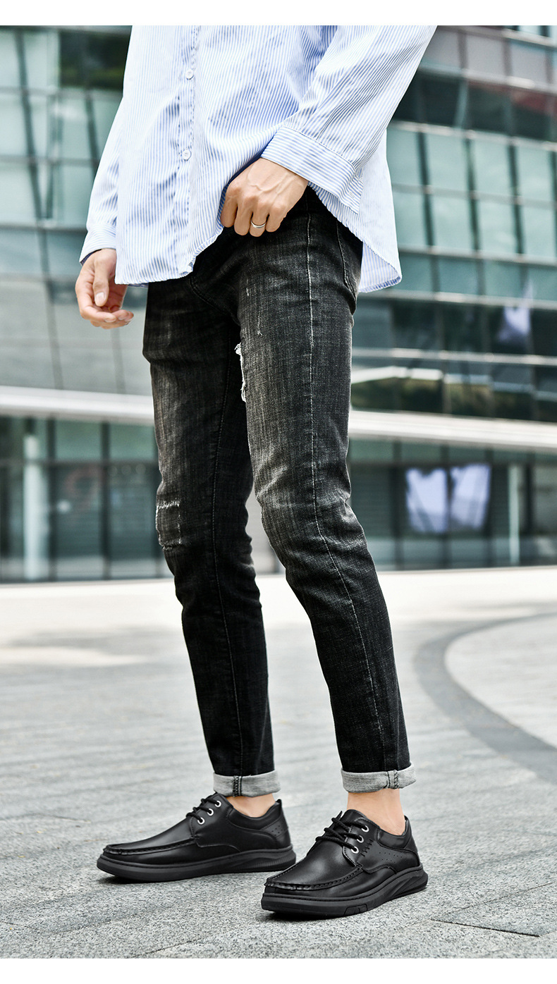 국경 간 아마존 새로운 대형 레이스 업 남성 신발 소 가죽 캐주얼 블랙 가죽 신발 남성 정품 가죽 야외 캐주얼 신발스토어 가기