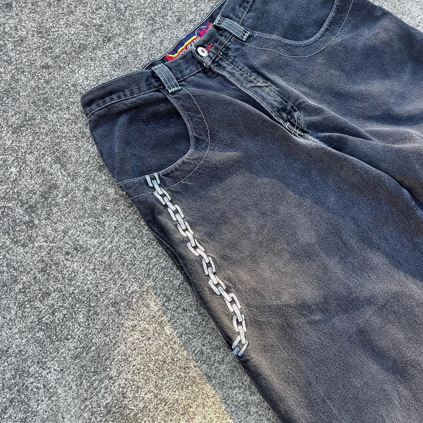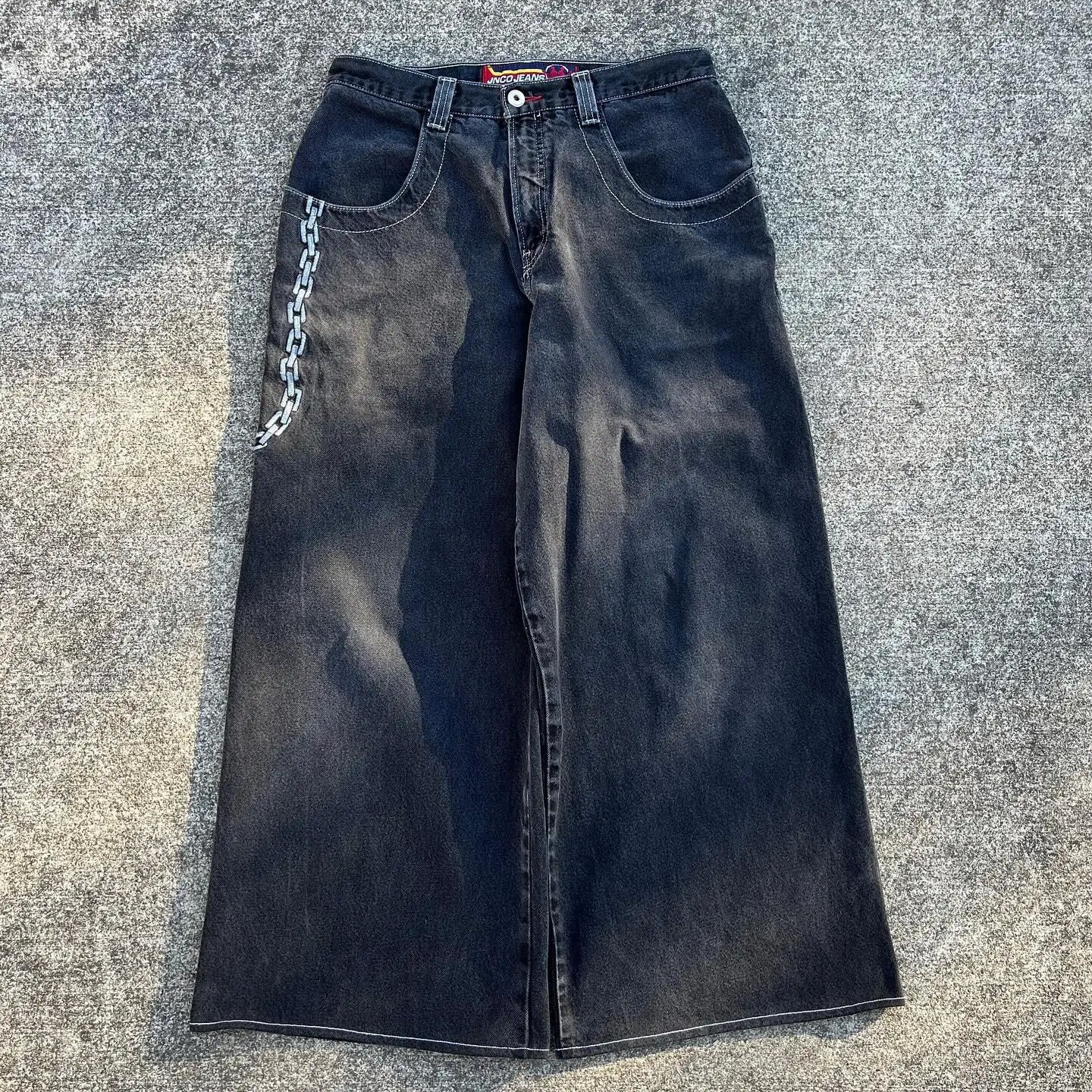 JNCO 아메리칸 레트로 스트리트 힙합 스트레이트 데님 팬츠 남성용 패션 캐주얼 다용도 워싱 프린트 데님 팬츠스토어 가기
