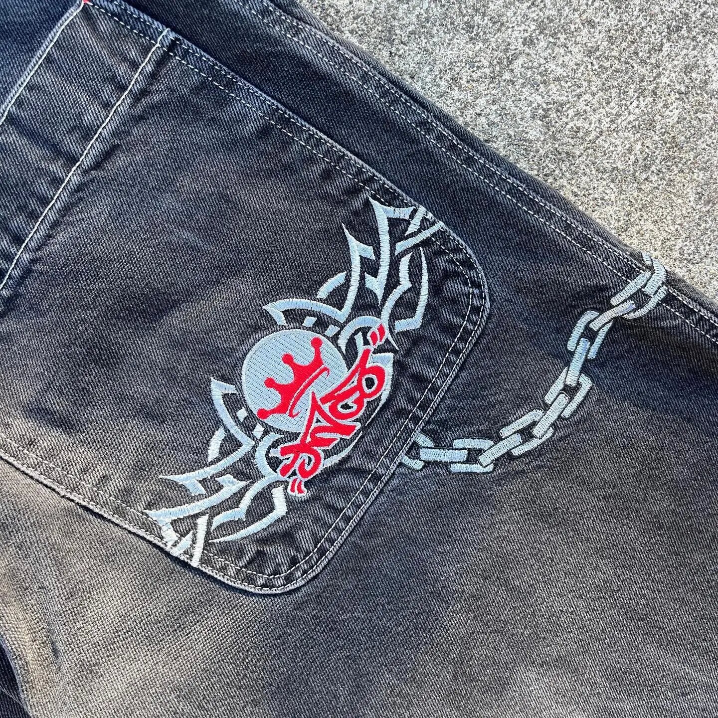 JNCO 아메리칸 레트로 스트리트 힙합 스트레이트 데님 팬츠 남성용 패션 캐주얼 다용도 워싱 프린트 데님 팬츠