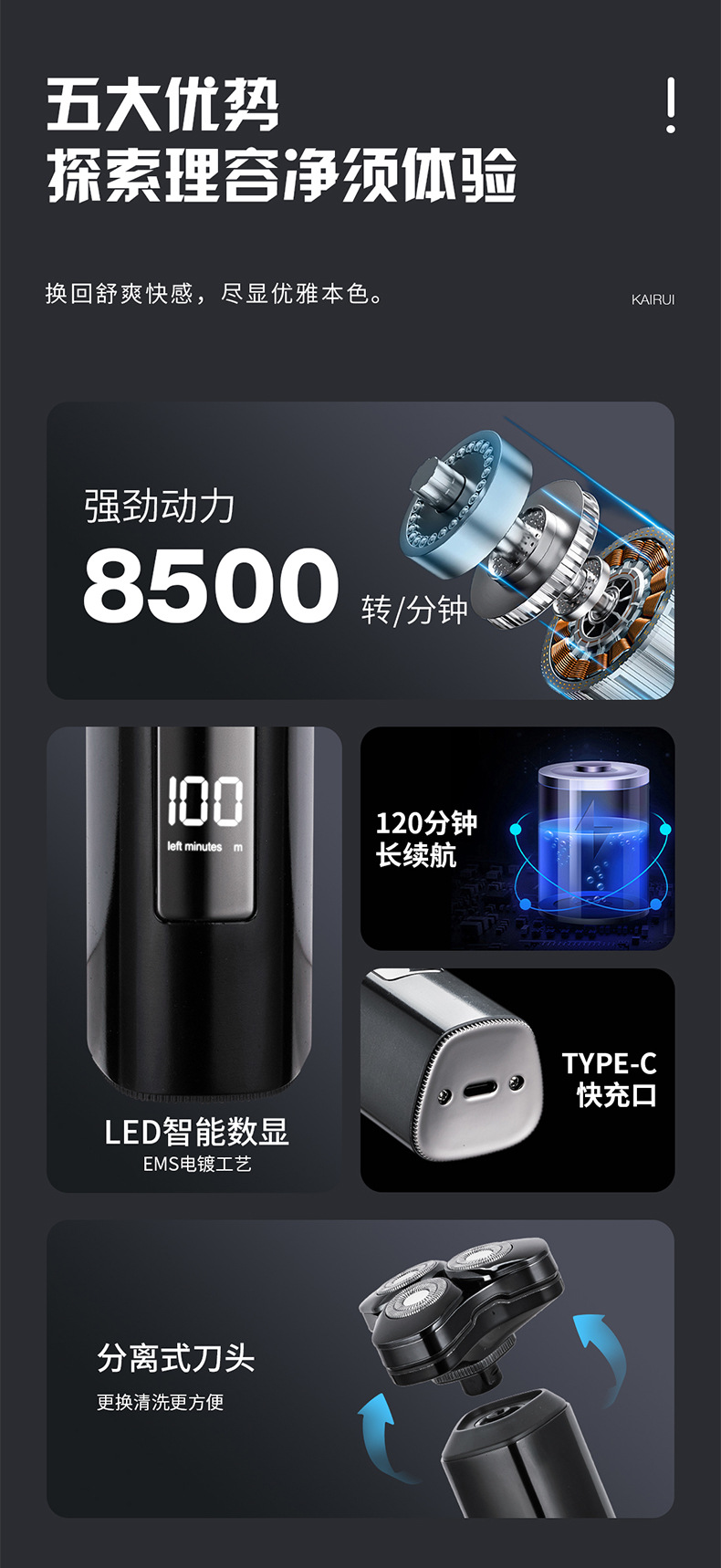 국경 간 폭발 면도기 남자의 전기 면도기 수염 면도 칼 알루미늄 합금 전신 세탁 선물 디지털 디스플레이