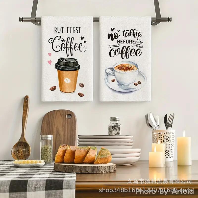 국경 핫 세일 새로운 커피 시리즈 수건 도매 커피 콩 장식 인쇄 된 행주 주방 접시 수건스토어 가기