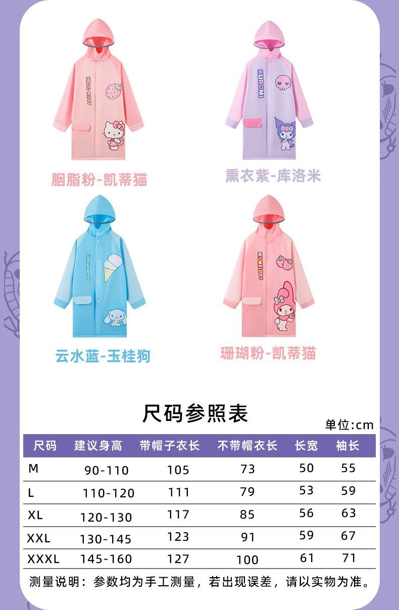 산리오 어린이 쿨로 미 비옷 여학생 두꺼운 초등학교 어린이 유치원 느슨한 후드 빠른 건조 한 부분 비옷스토어 가기
