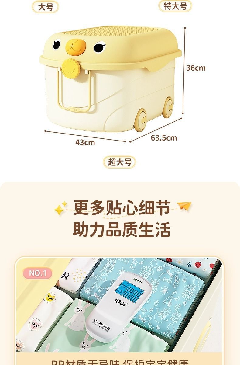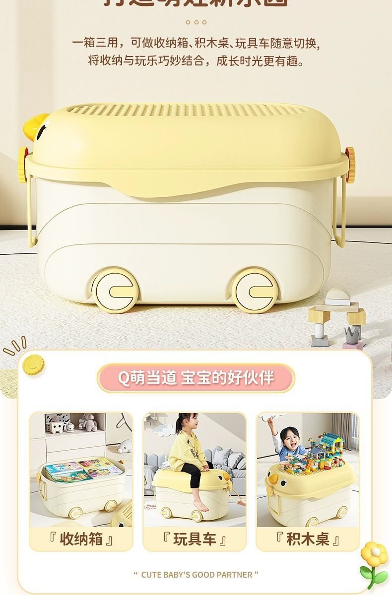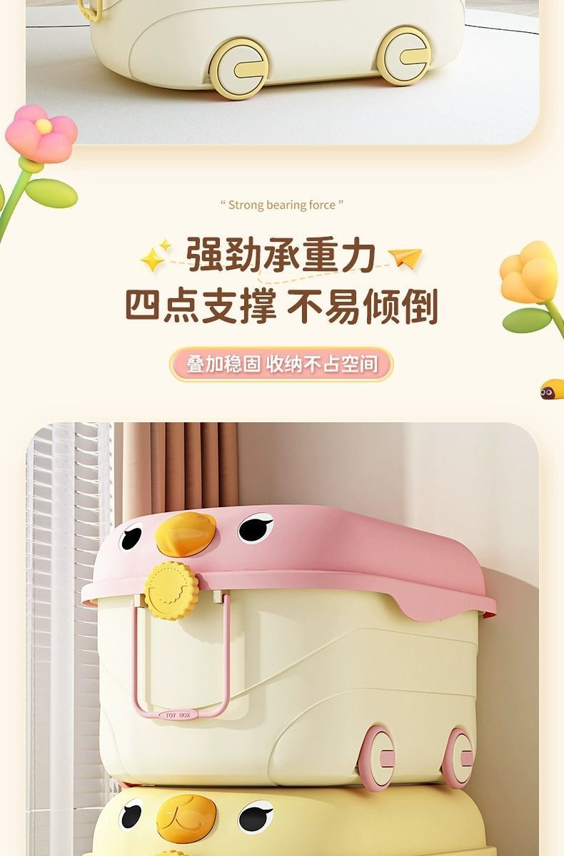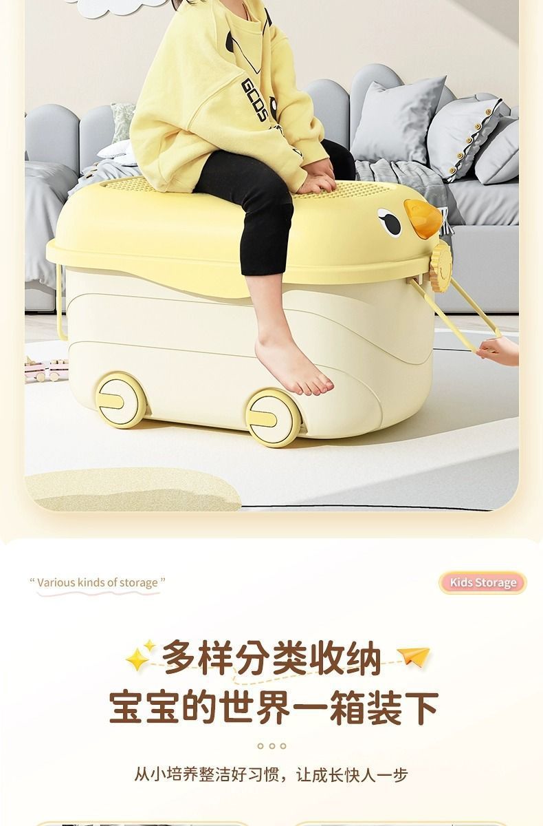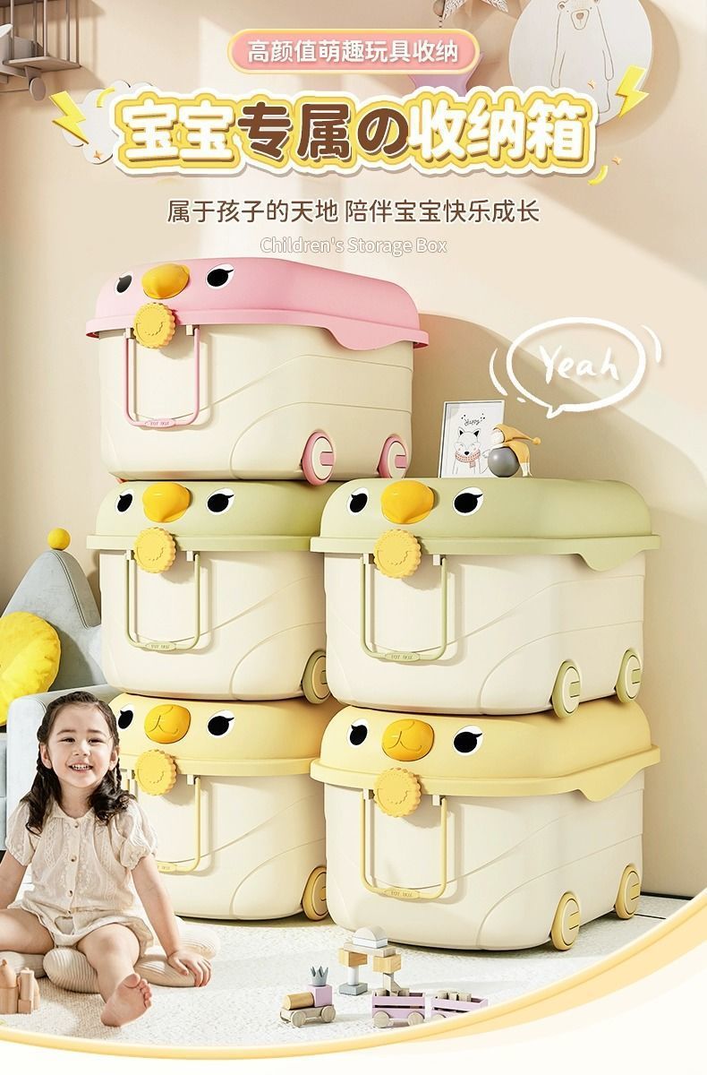 바퀴가 달린 두꺼운 대용량 정리 상자, 어린이 장난감 보관 상자, 가정용 아기 간식, 옷 및 책 보관 상자스토어 가기