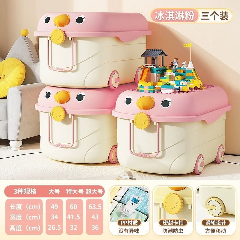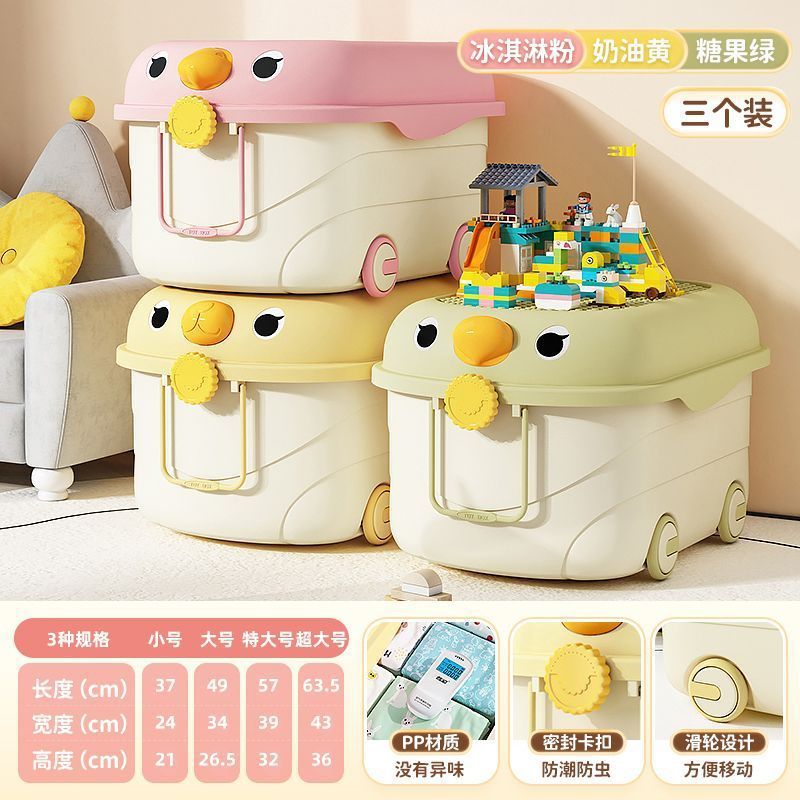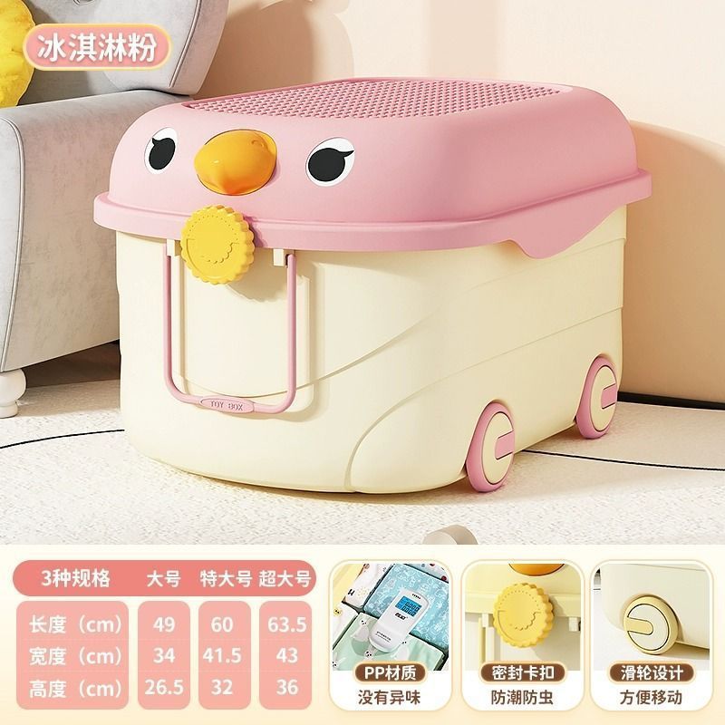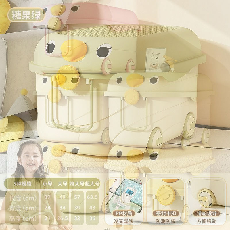 바퀴가 달린 두꺼운 대용량 정리 상자, 어린이 장난감 보관 상자, 가정용 아기 간식, 옷 및 책 보관 상자