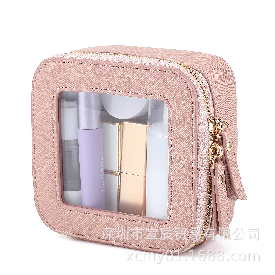 공장 재고 국경 새로운 투명 PU 화장품 가방 작은 화장품 저장 가방 통근 간단한 화장품 가방