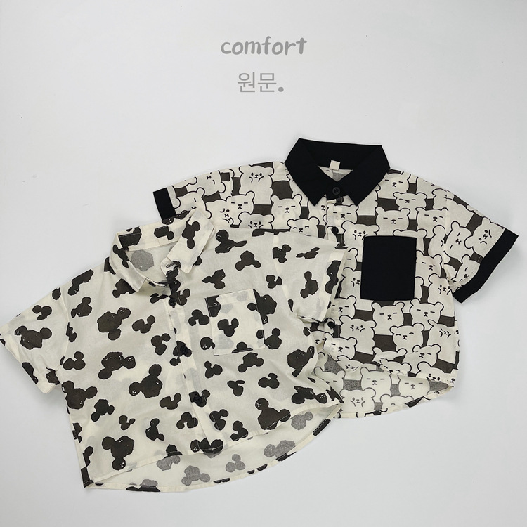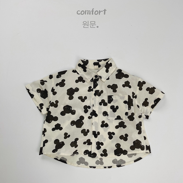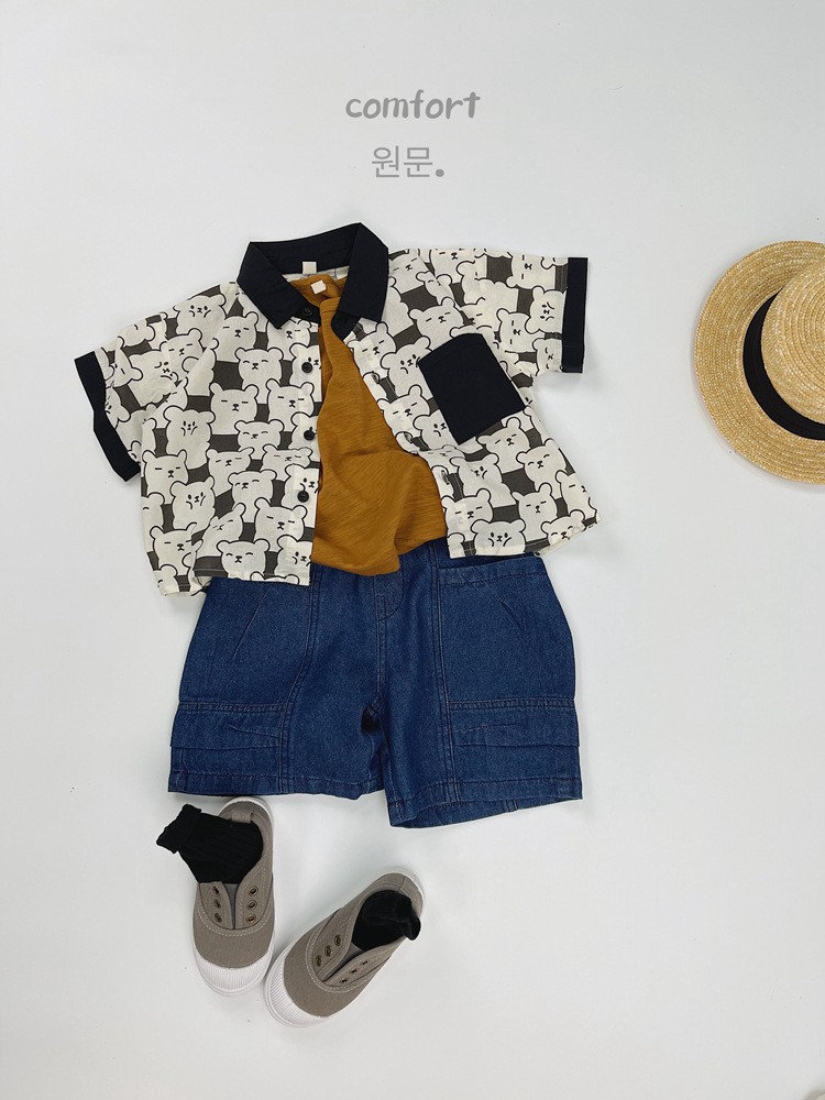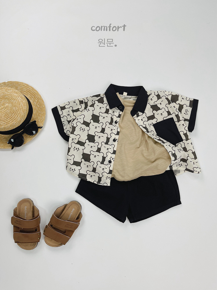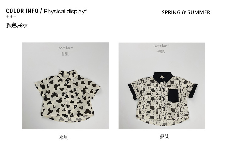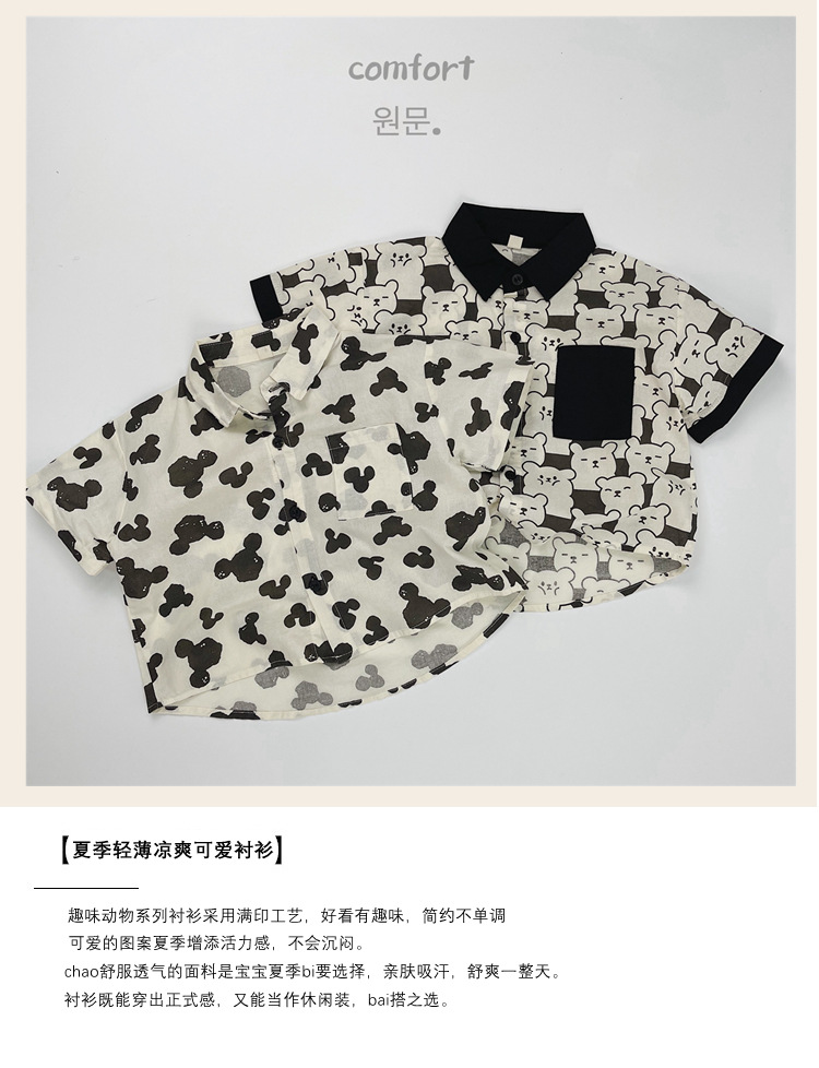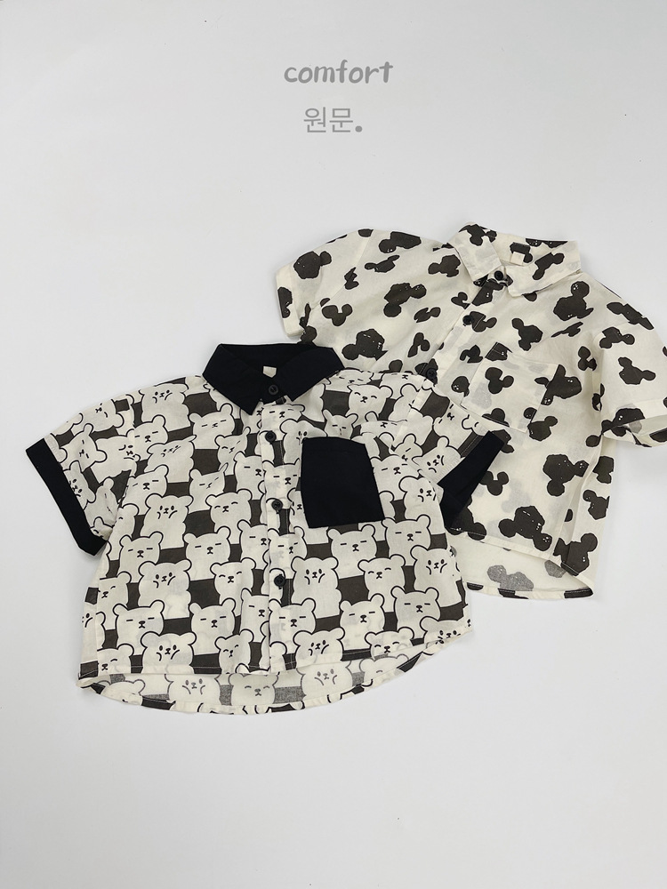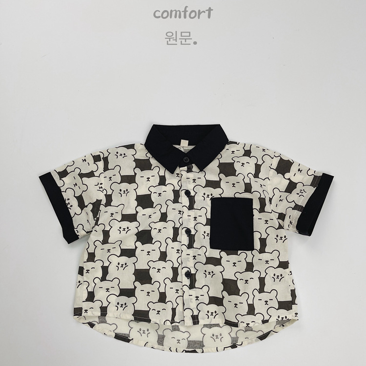 어린이 반팔 셔츠 여름 소년 한국 스타일 셔츠 어린이 만화 풀 프린트 옷깃 얇은 캐주얼 카디건 탑