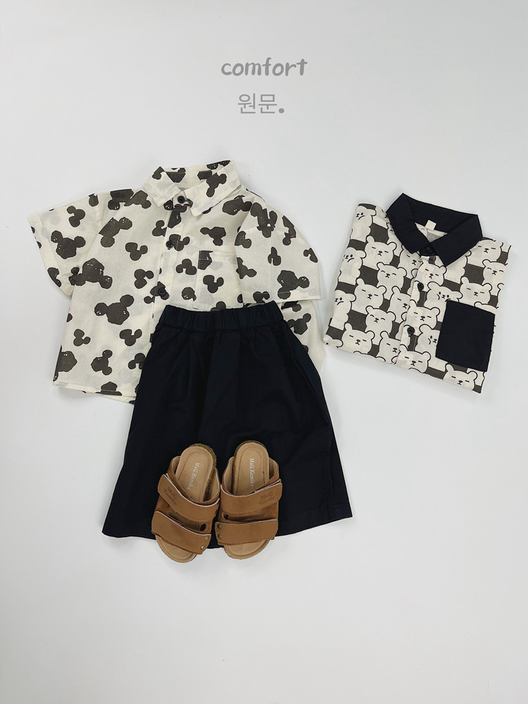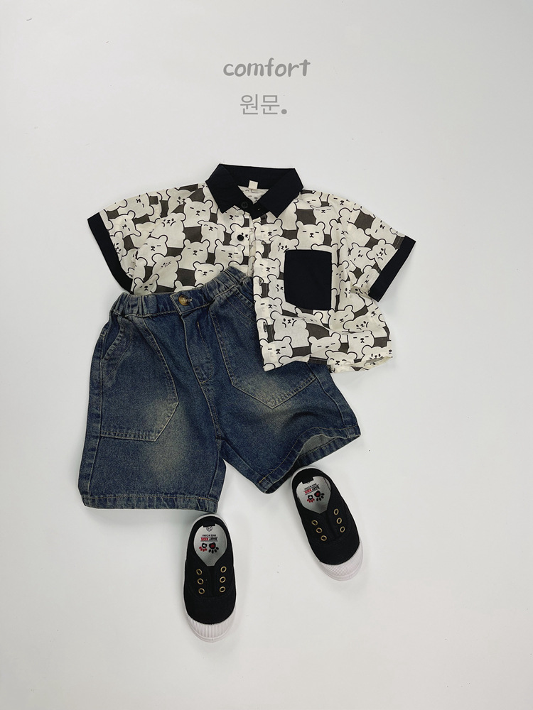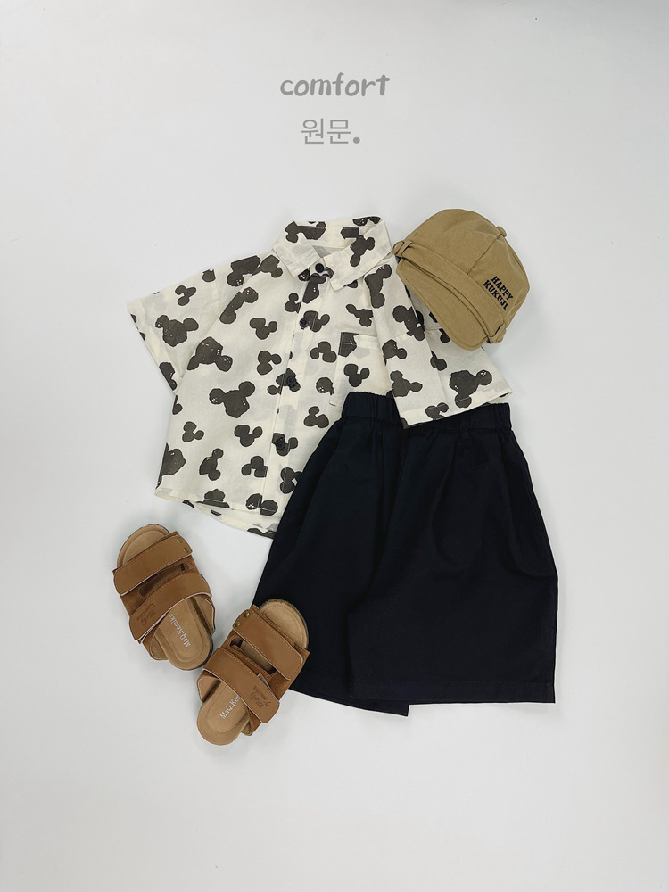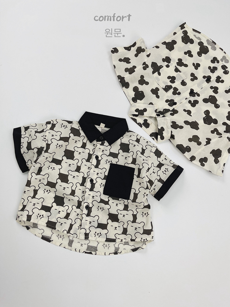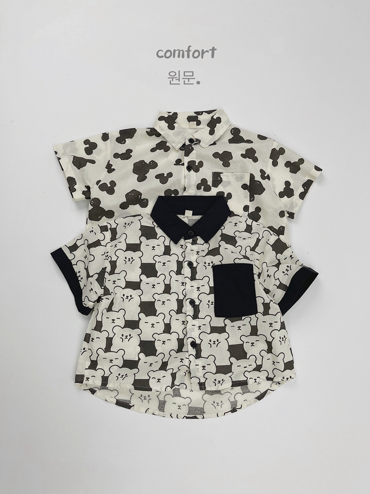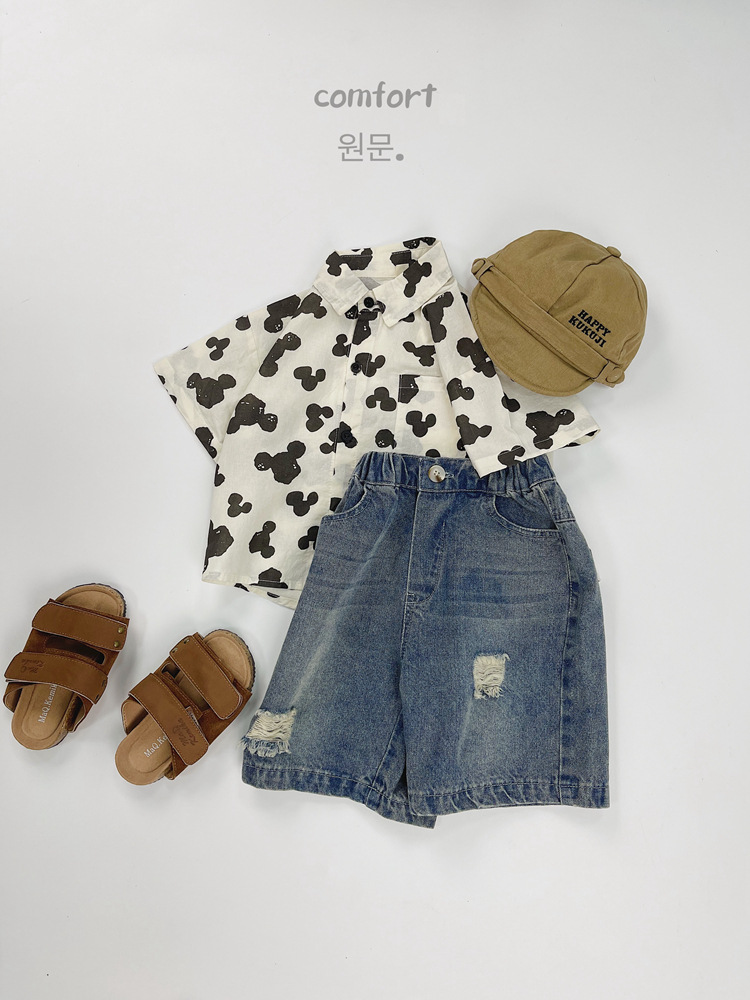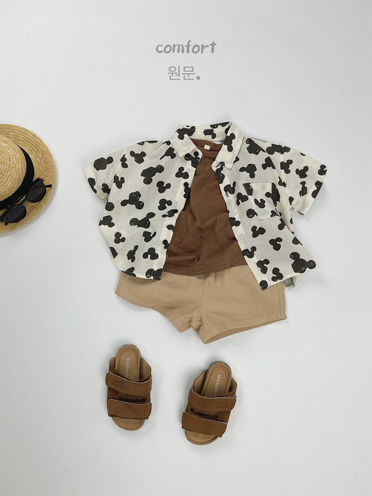 어린이 반팔 셔츠 여름 소년 한국 스타일 셔츠 어린이 만화 풀 프린트 옷깃 얇은 캐주얼 카디건 탑