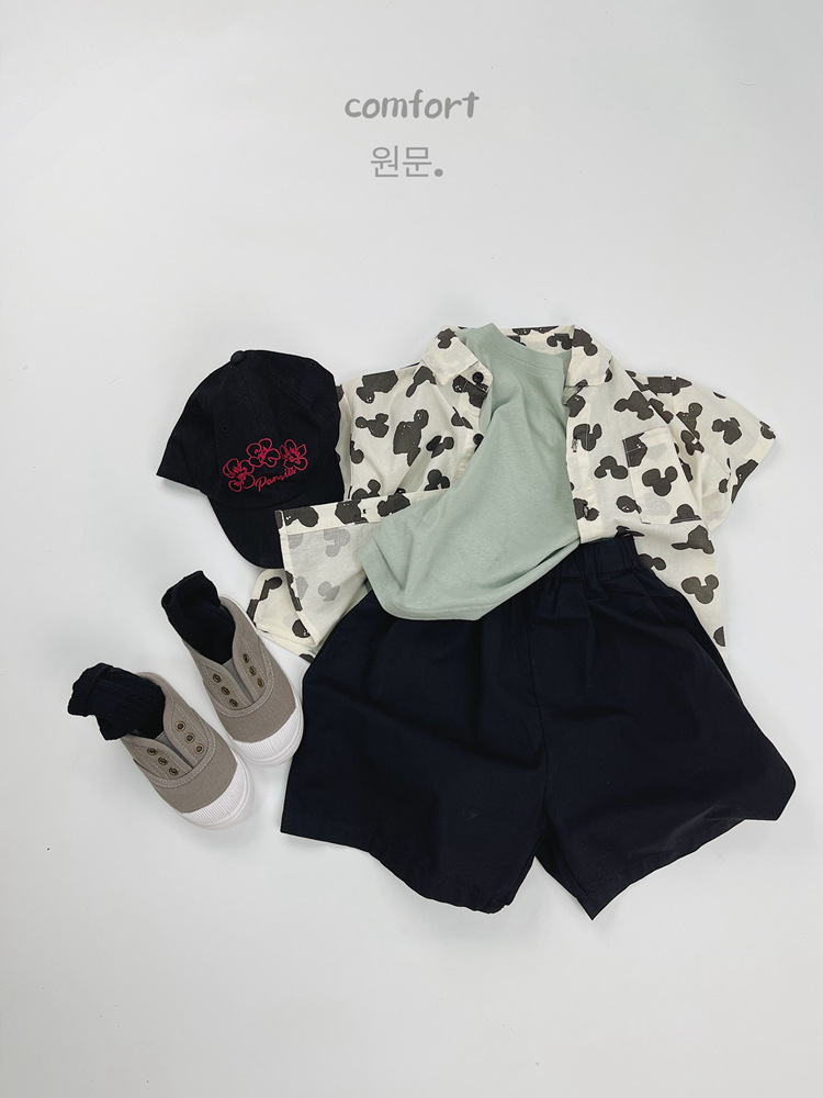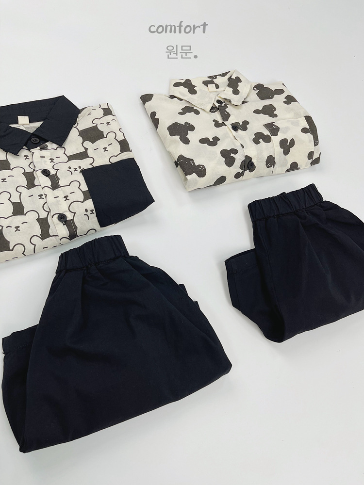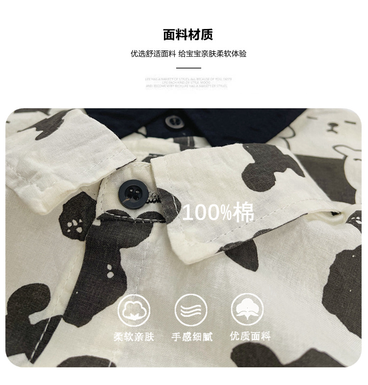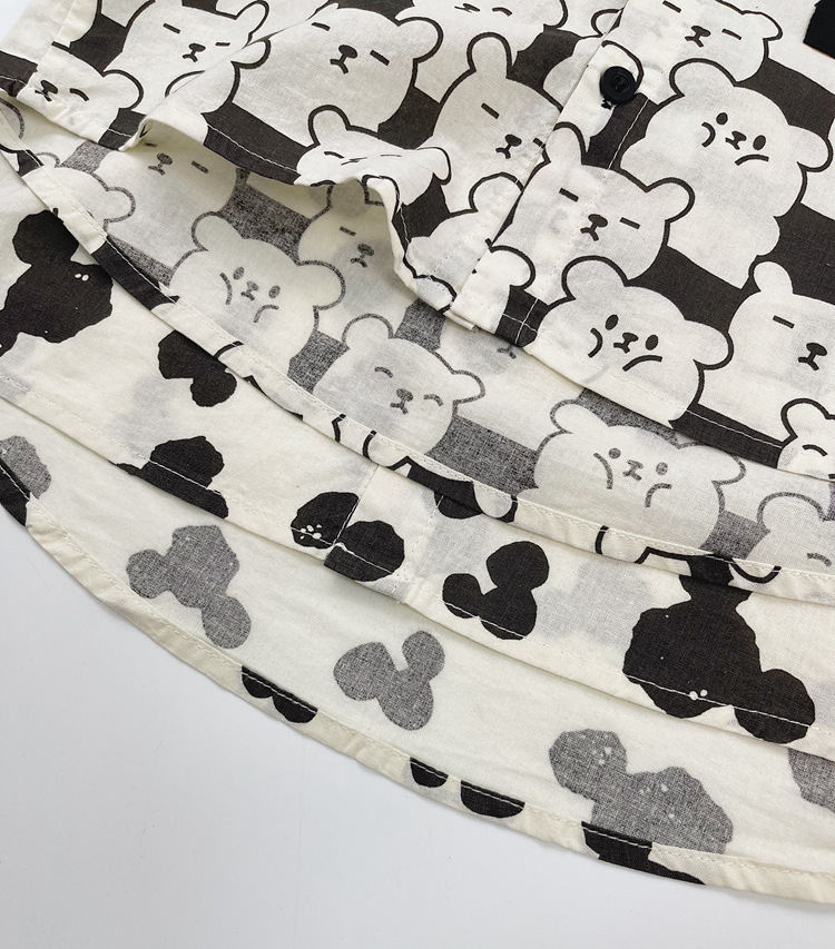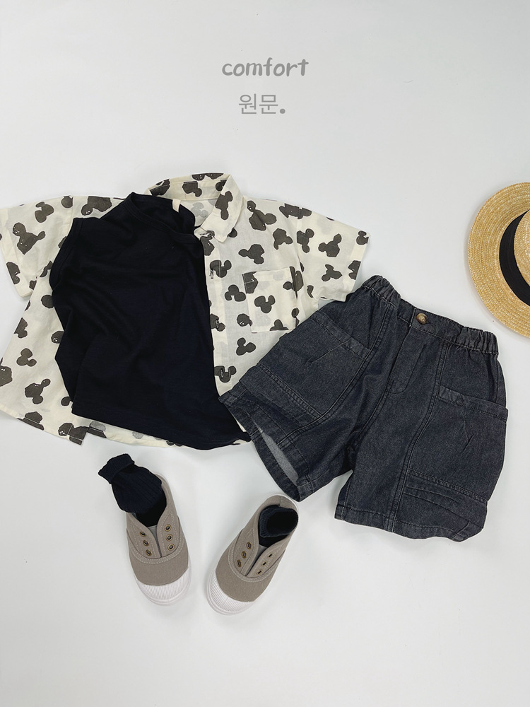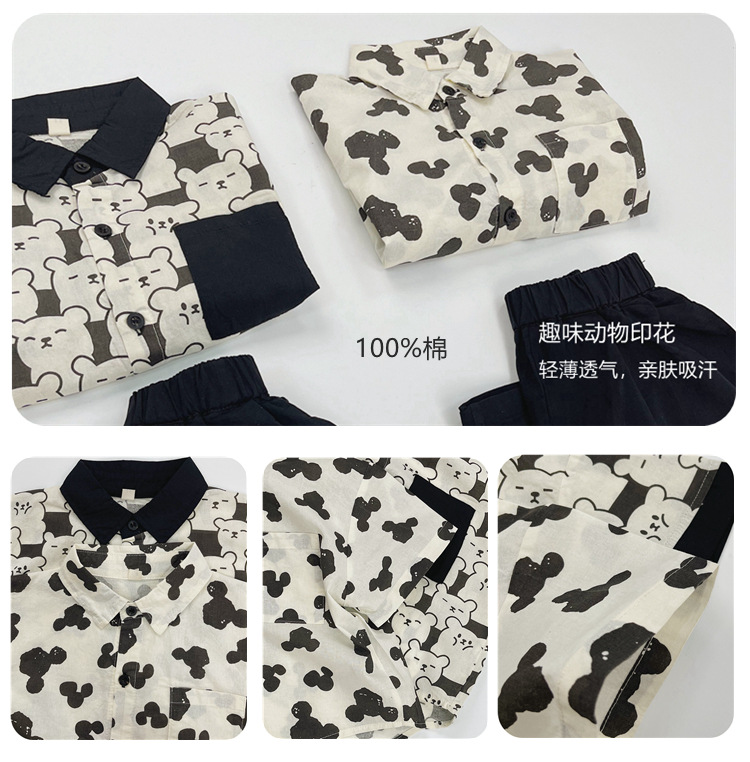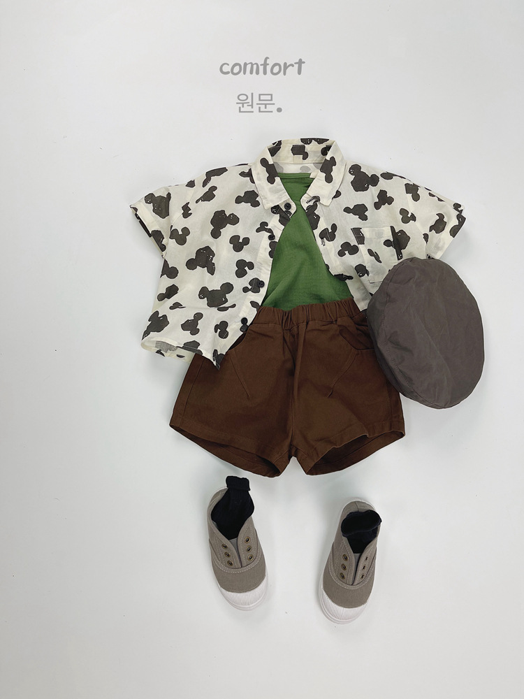 어린이 반팔 셔츠 여름 소년 한국 스타일 셔츠 어린이 만화 풀 프린트 옷깃 얇은 캐주얼 카디건 탑