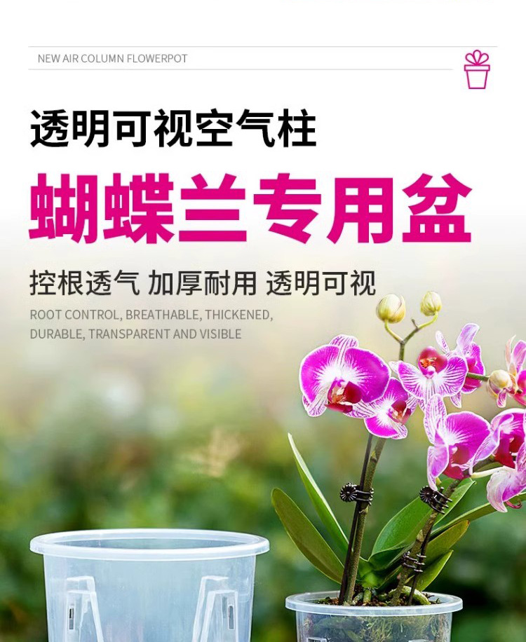 蝴蝶兰专用盆青山控根盆塑料加厚大号兰花盆柱形镂空透明花盆批发