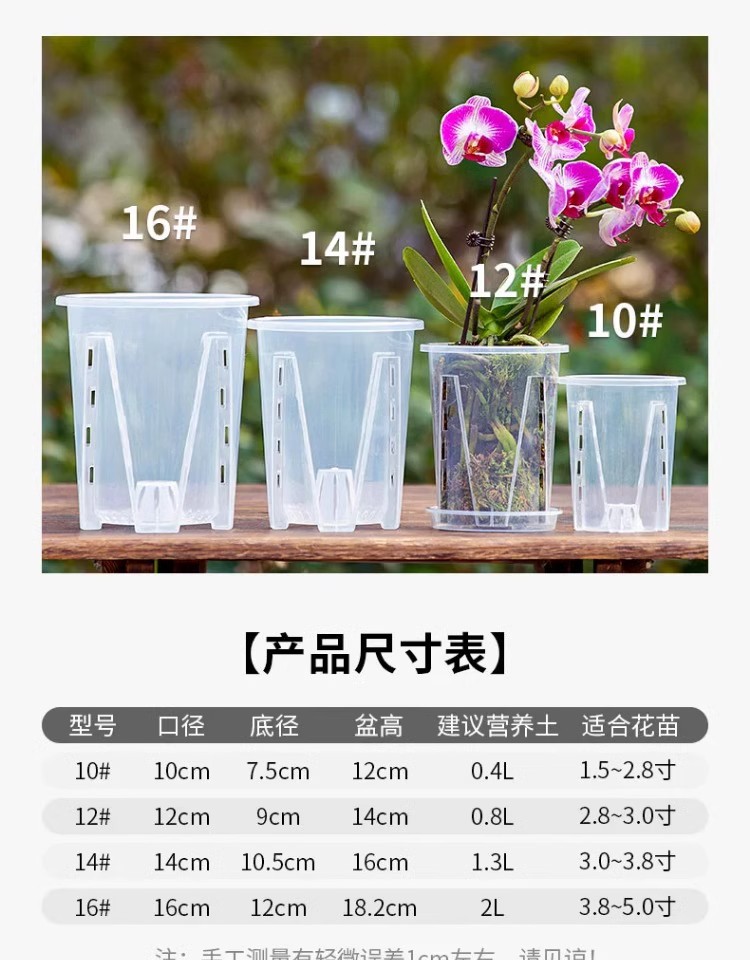 因市场需求,此款盆多套模具,漏水孔会有不同款式,仓库随机发货,尺寸手工测量有误差(单位1-3cm左右)以实物为准介意勿拍哦 ~