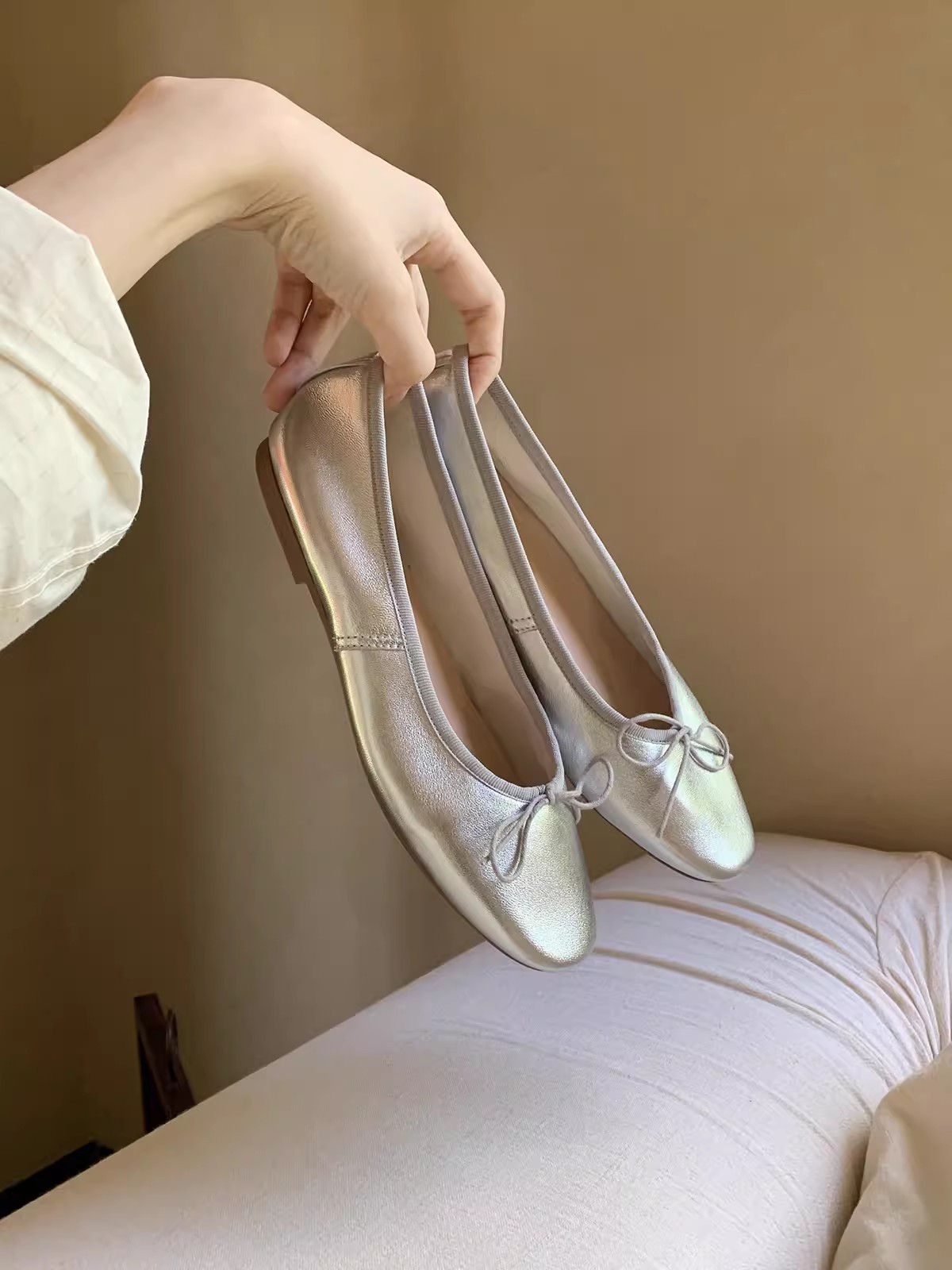양가죽 버전 ~ 클래식 프랑스 조커 둥근 입 머리 얕은 입 기질 활 플랫 슈즈와 포도 엄마 여성