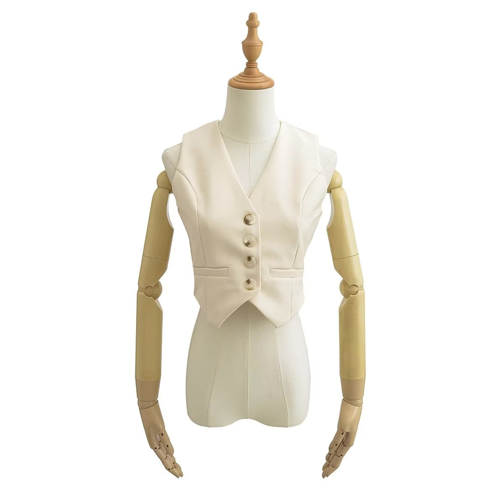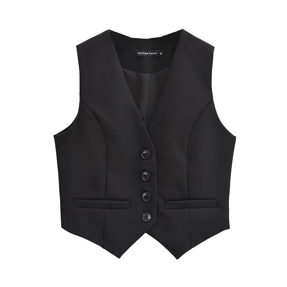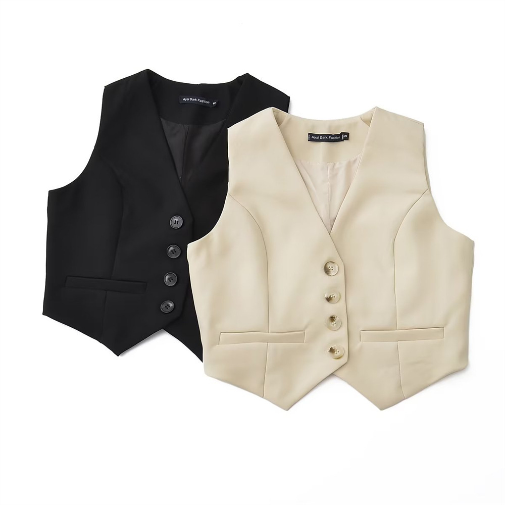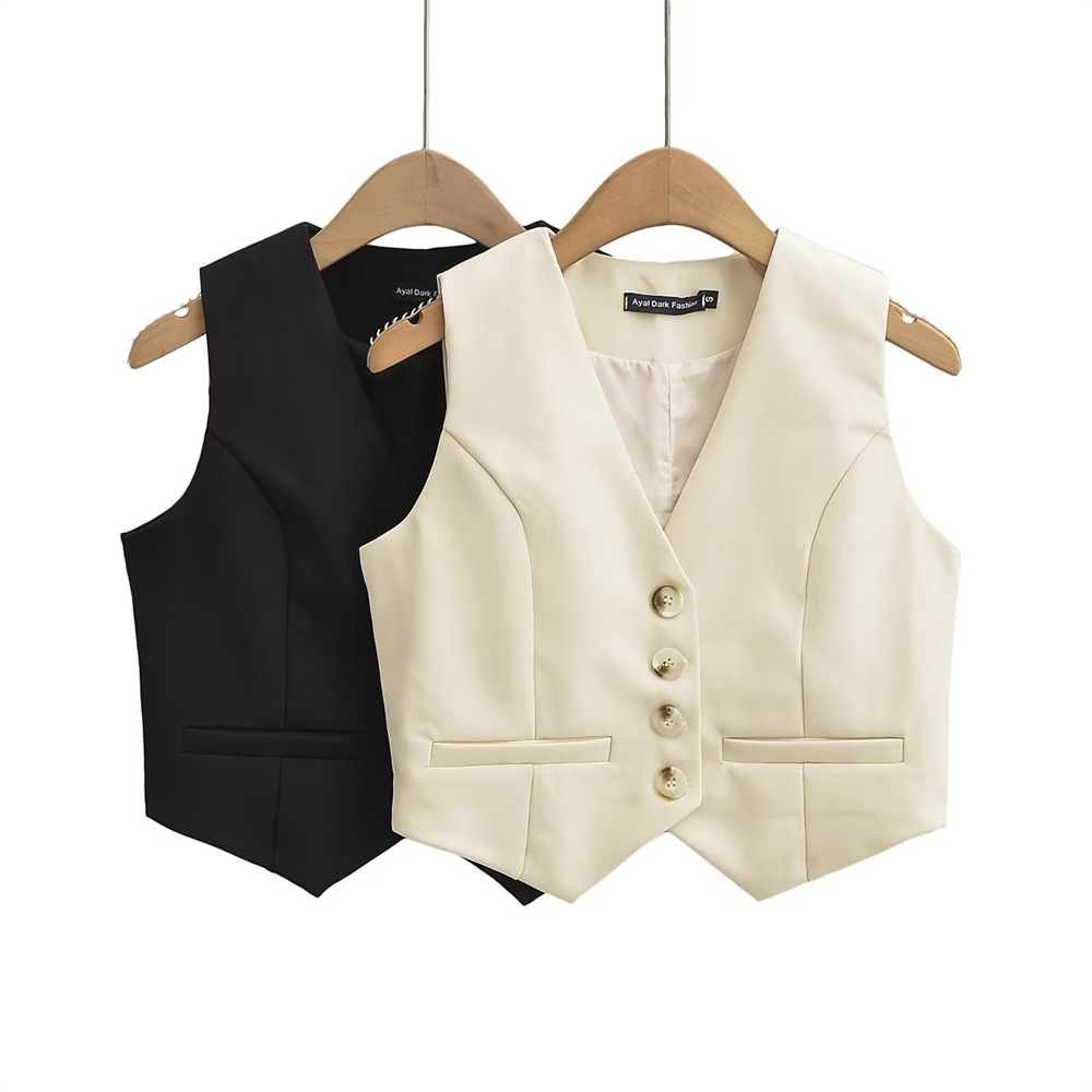 트렌디한 여성복 유럽풍 레트로 싱글버튼 수트 조끼 슬림핏 솔리드 컬러 숏 조끼 V넥 탑