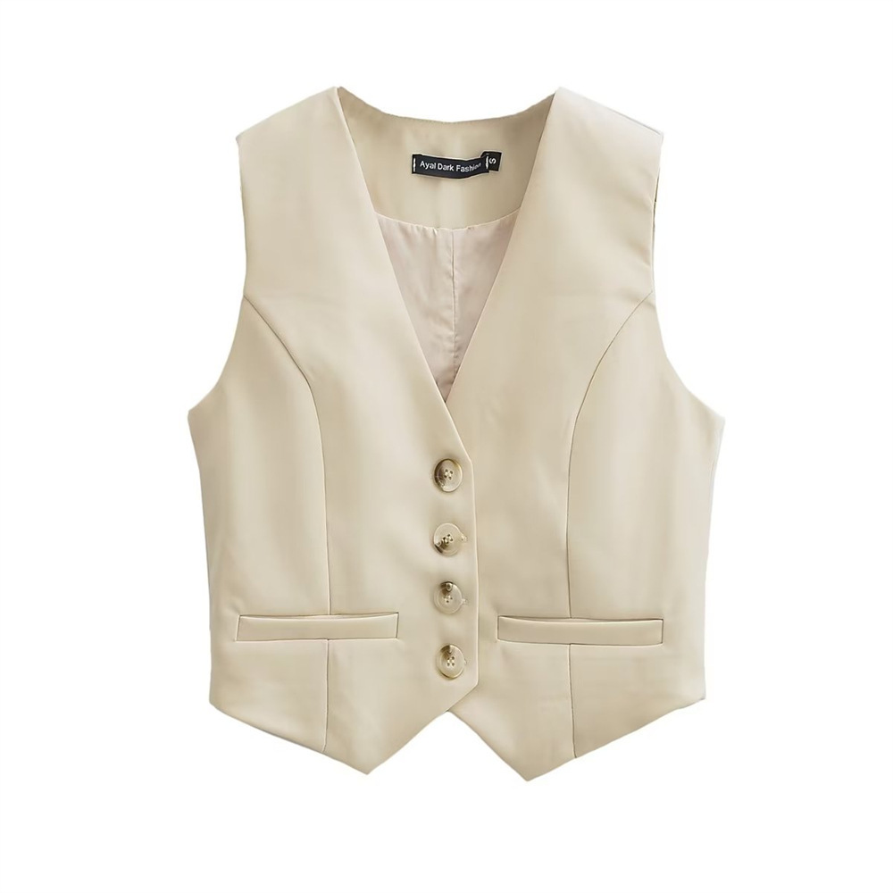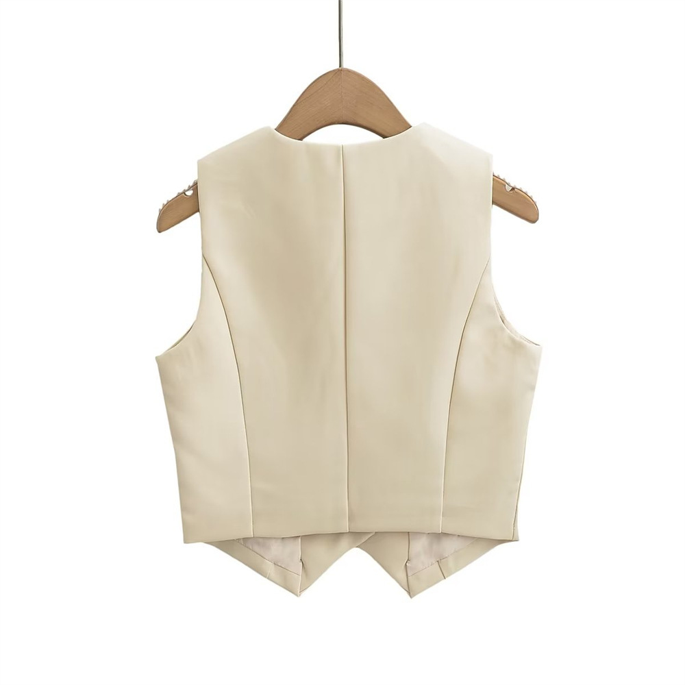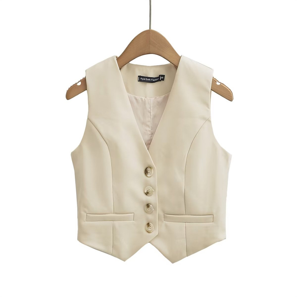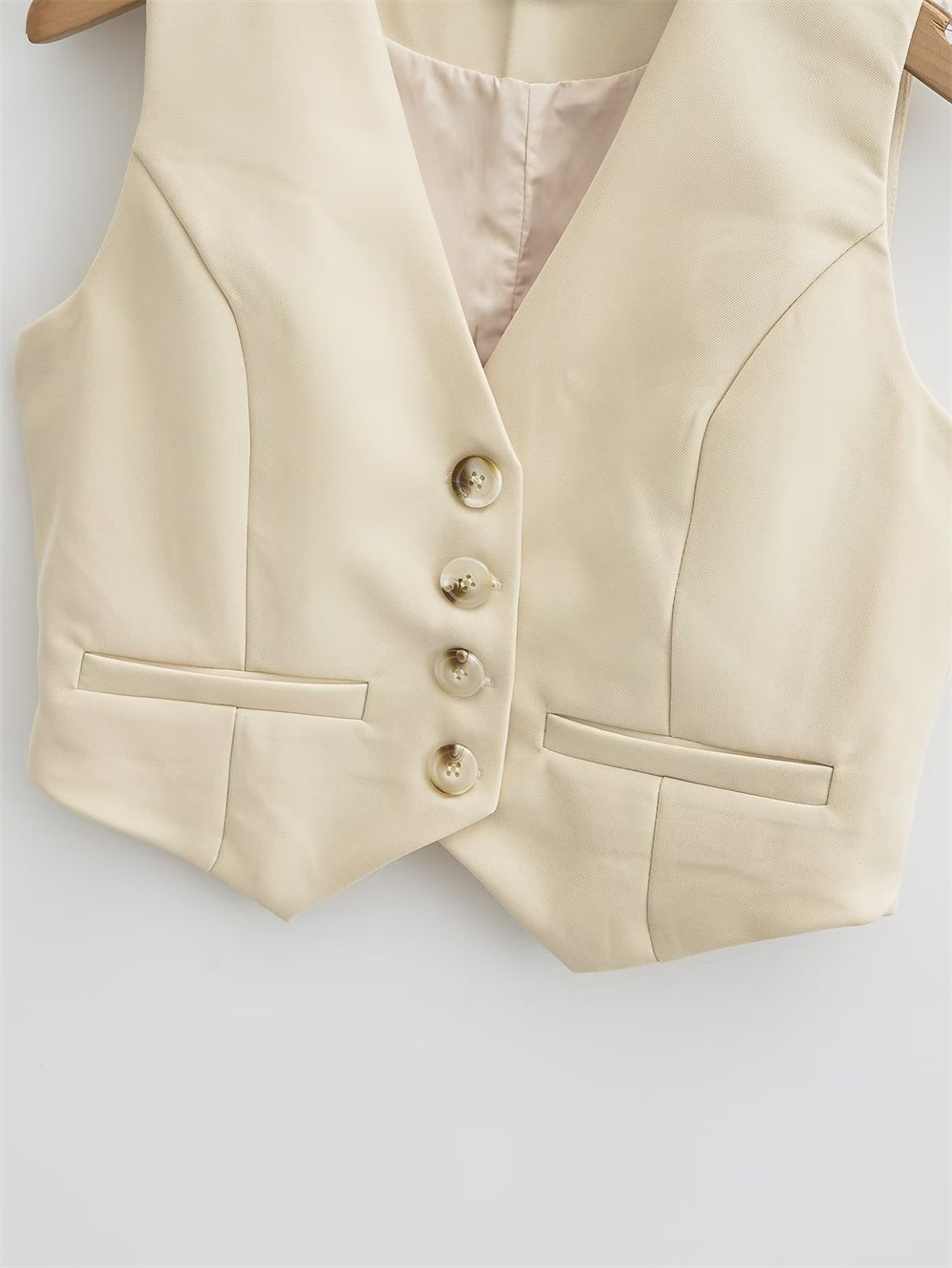 트렌디한 여성복 유럽풍 레트로 싱글버튼 수트 조끼 슬림핏 솔리드 컬러 숏 조끼 V넥 탑