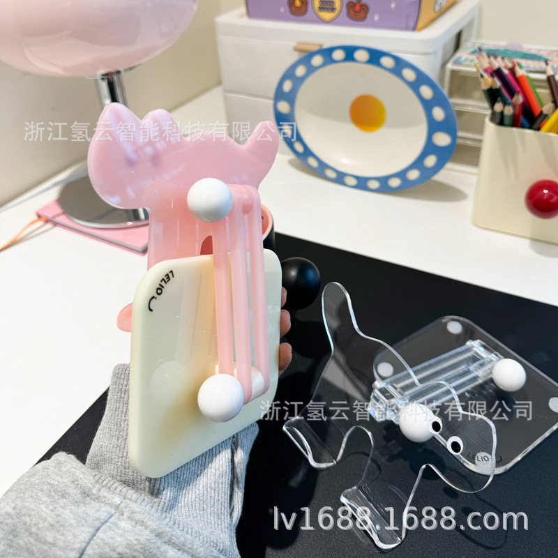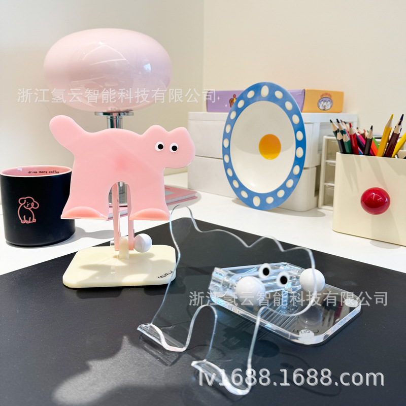 투명한 고양이 모양 아크릴 휴대폰 거치대, 데스크탑 인스타 스타일 태블릿 거치대, 창의적인 접이식 높이 조절 아이패드 거치대스토어 가기