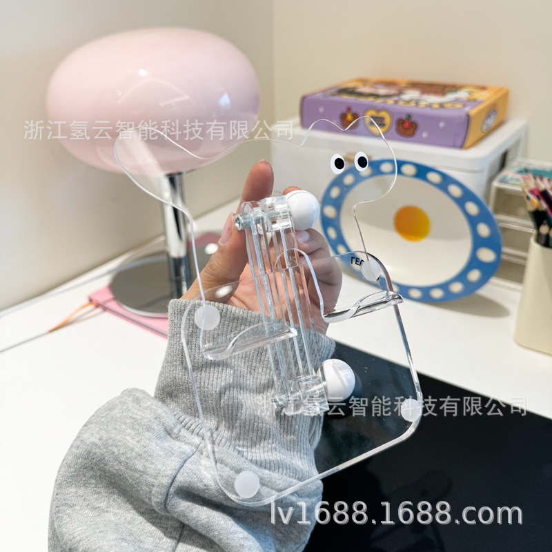 투명한 고양이 모양 아크릴 휴대폰 거치대, 데스크탑 인스타 스타일 태블릿 거치대, 창의적인 접이식 높이 조절 아이패드 거치대