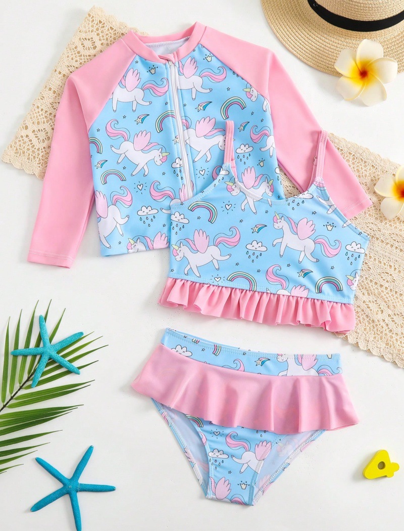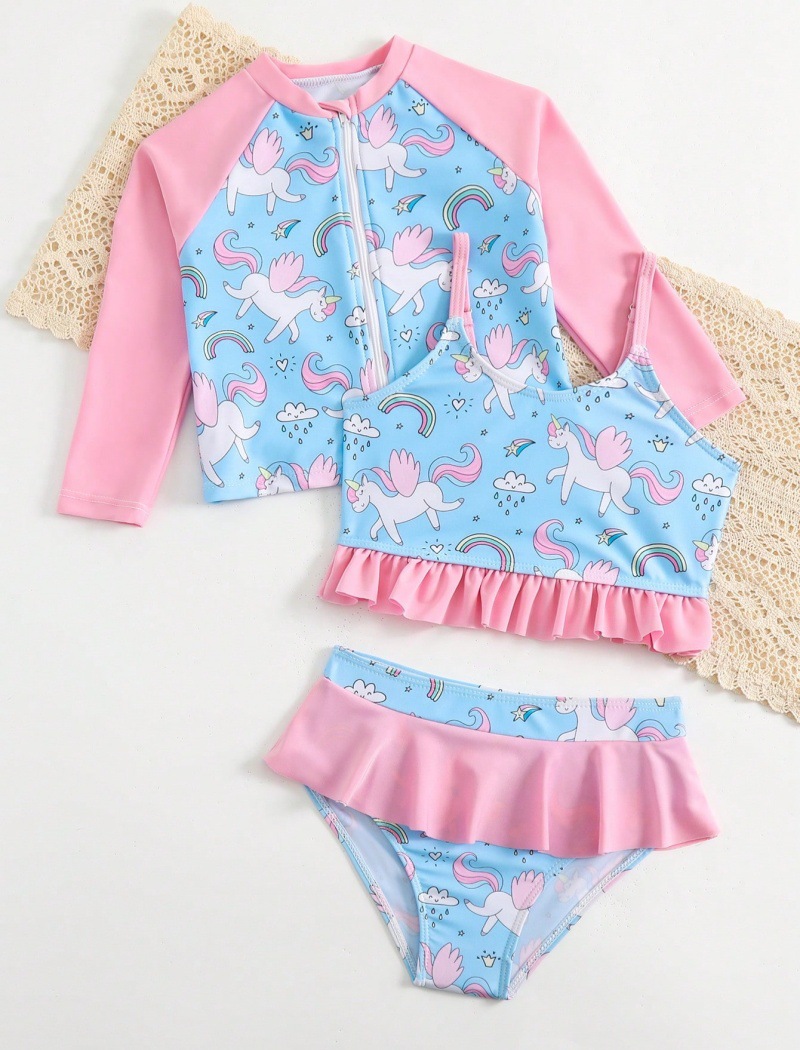 새로운 어린이 3 피스 수영복 AliExpress 유럽과 미국의 대외 무역 인쇄 선 스크린 어린이 수영복 여자 수영복스토어 가기
