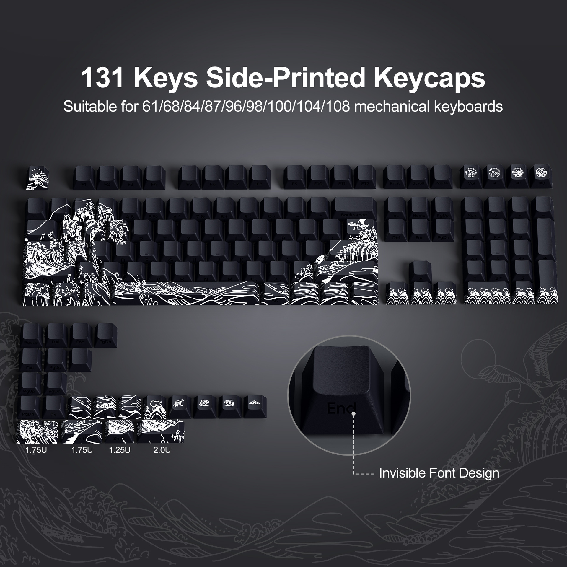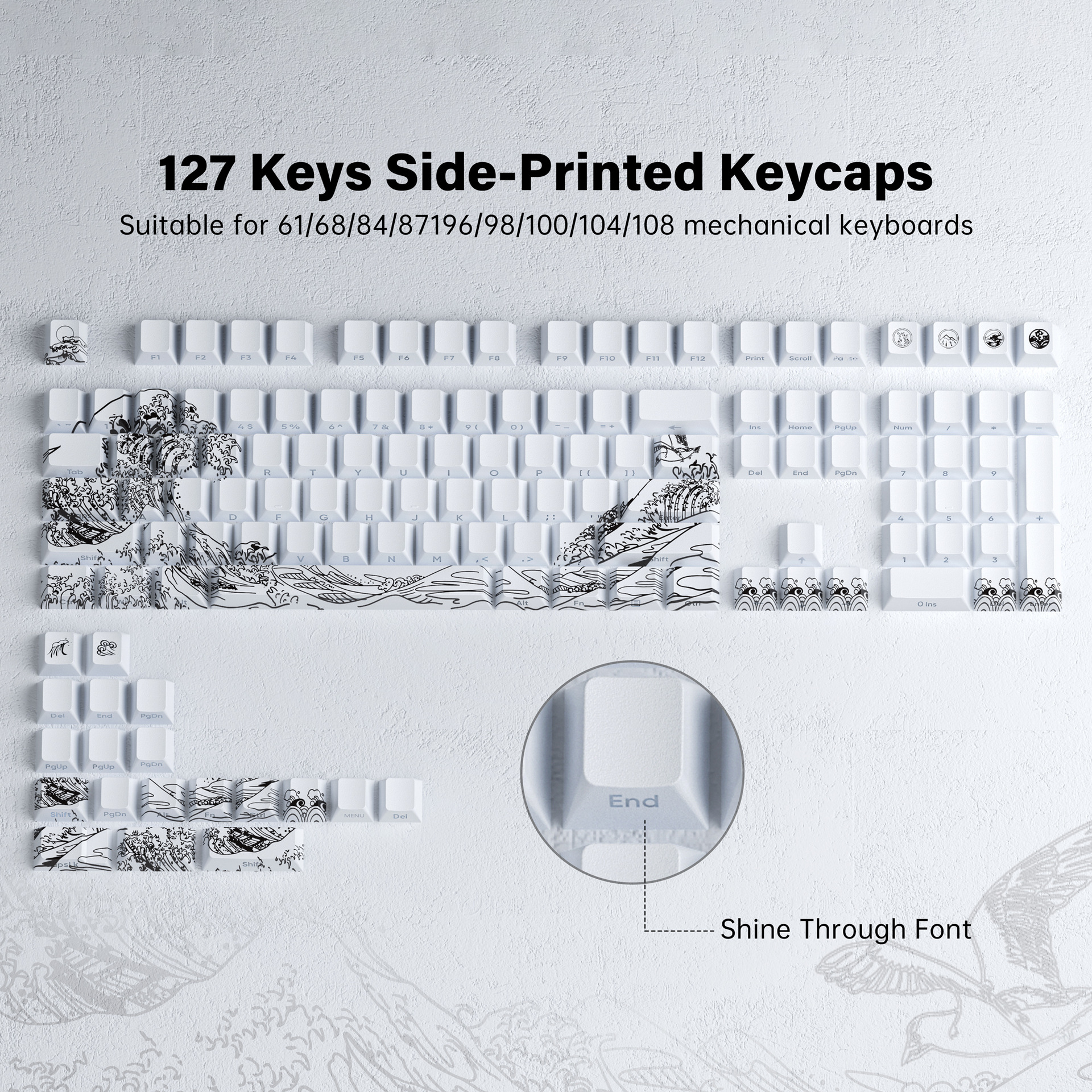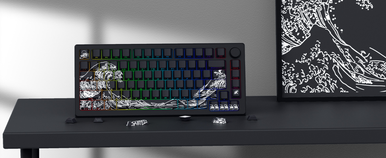 XVX 우키요에 원래 측면 새겨진 반투명 PBT 창조적 인 성격 승화 맞춤형 자기 축 기계식 키보드 키캡스토어 가기