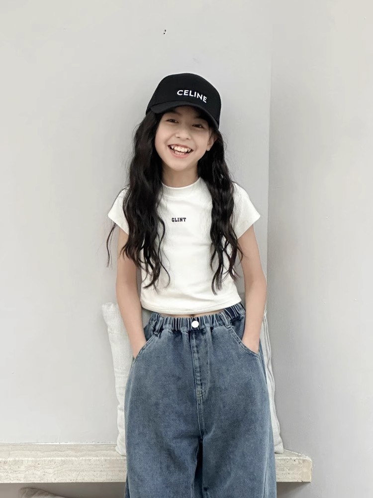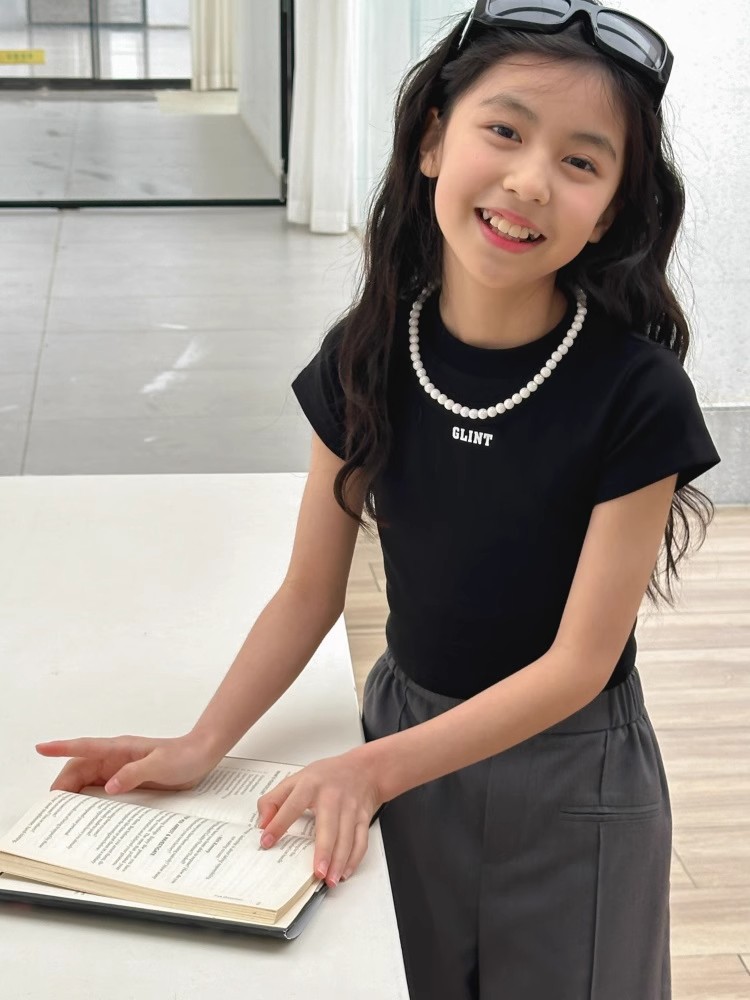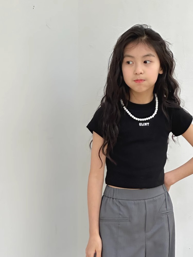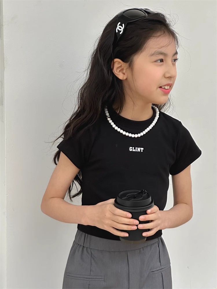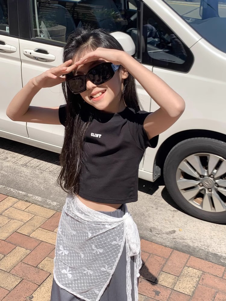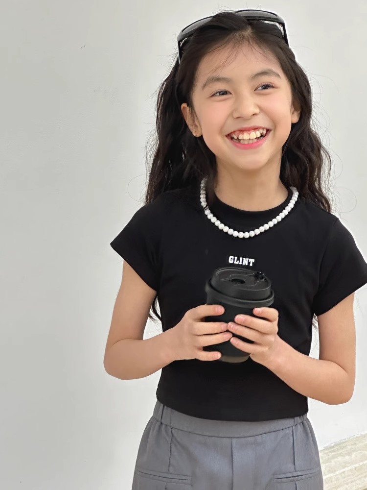 여자 반팔 티셔츠 2024 여름 새 어린이 크루 넥 탑 유행 짧은 티셔츠 스트리트 댄스 팀 원피스 반소매 트렌디스토어 가기
