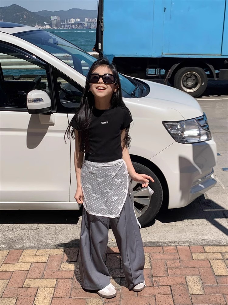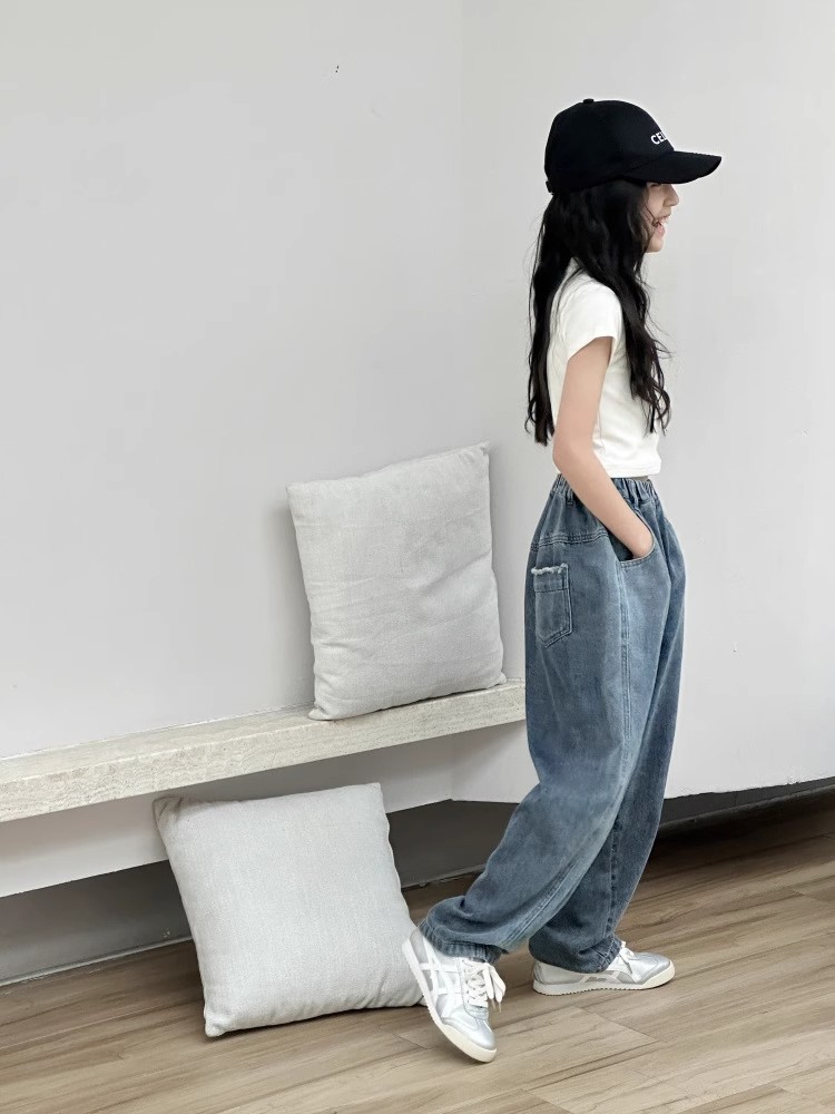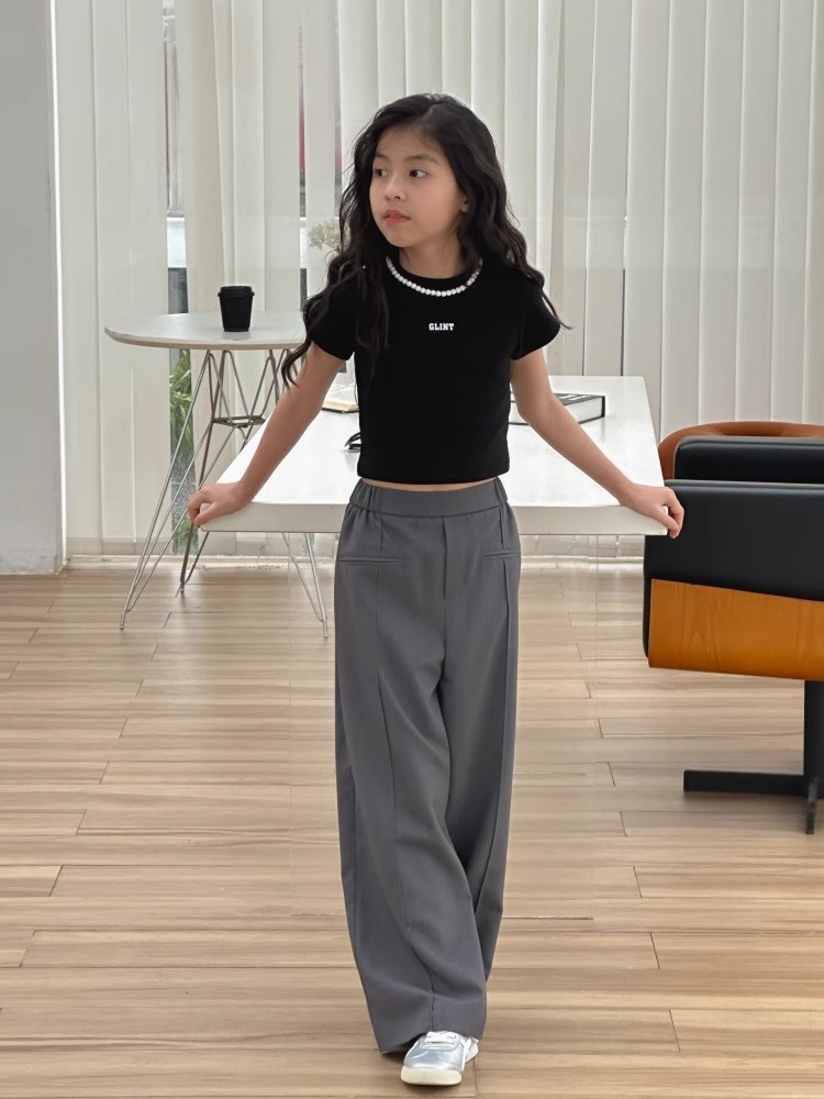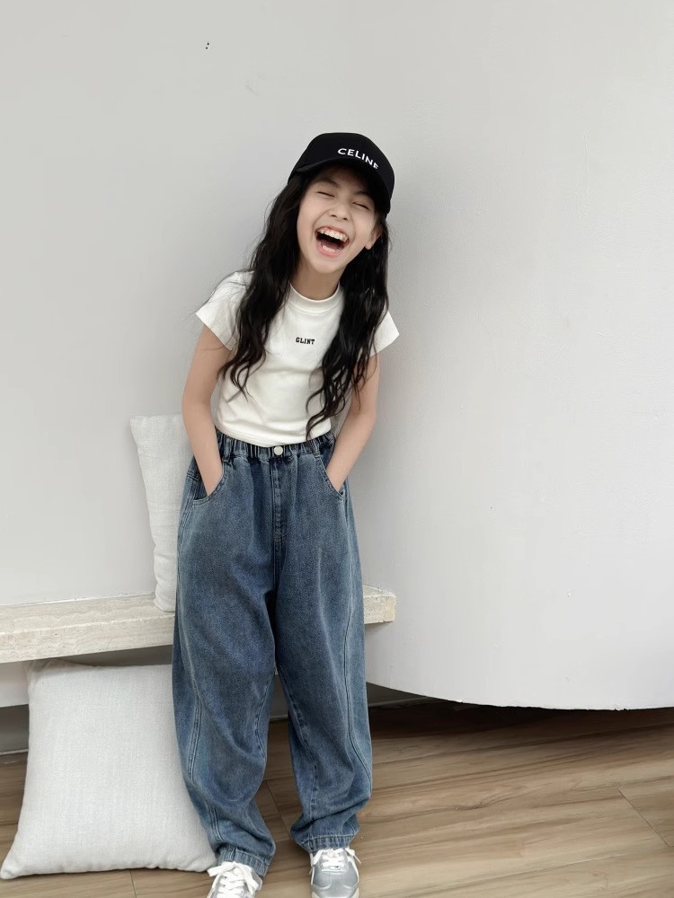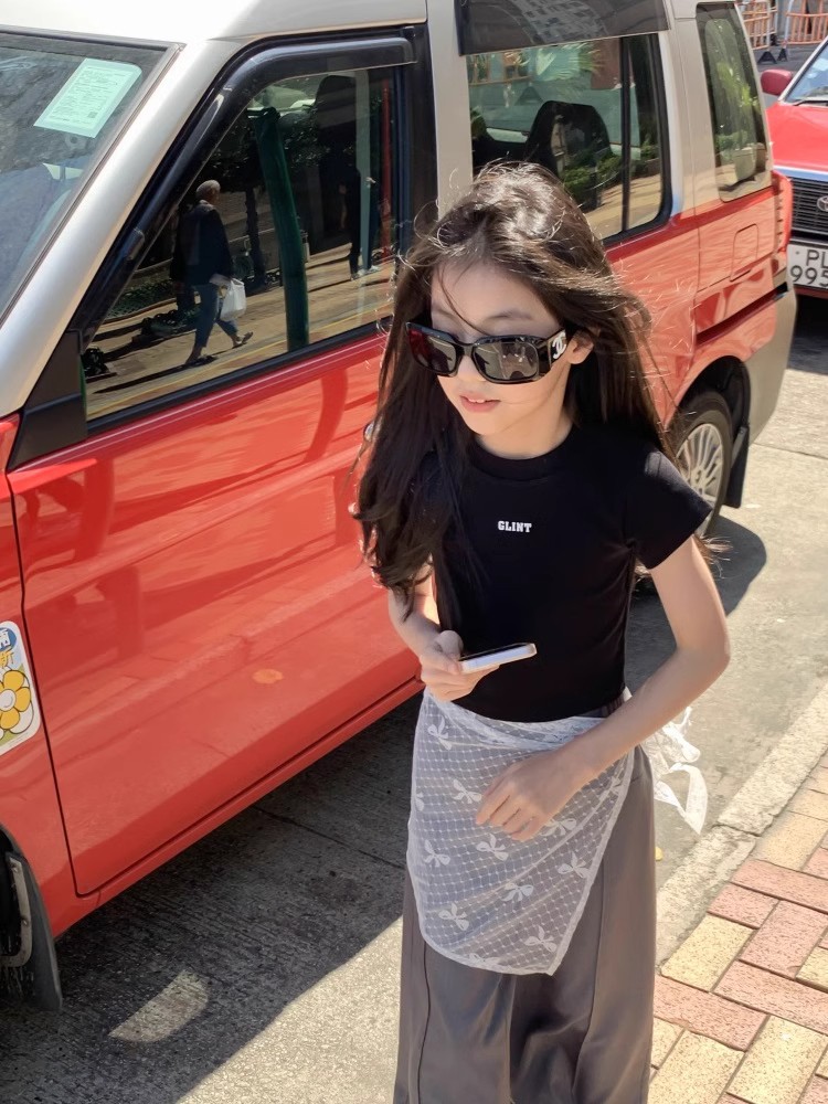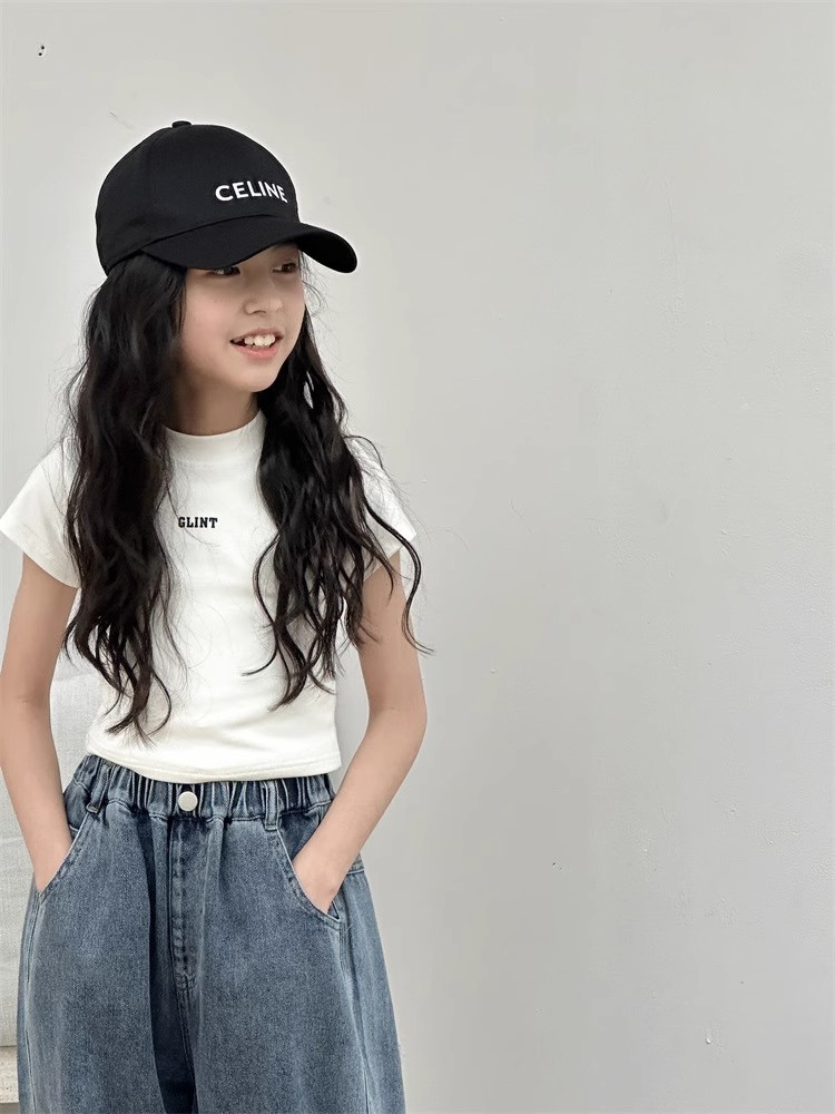 여자 반팔 티셔츠 2024 여름 새 어린이 크루 넥 탑 유행 짧은 티셔츠 스트리트 댄스 팀 원피스 반소매 트렌디스토어 가기