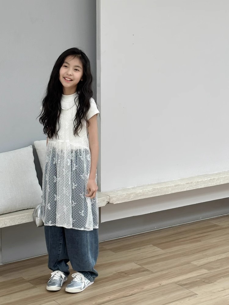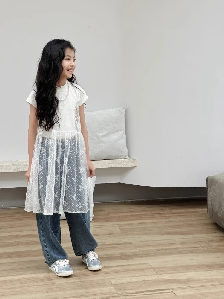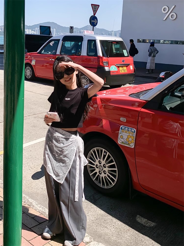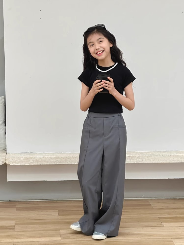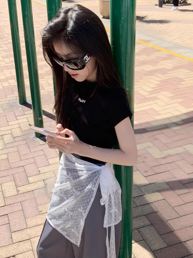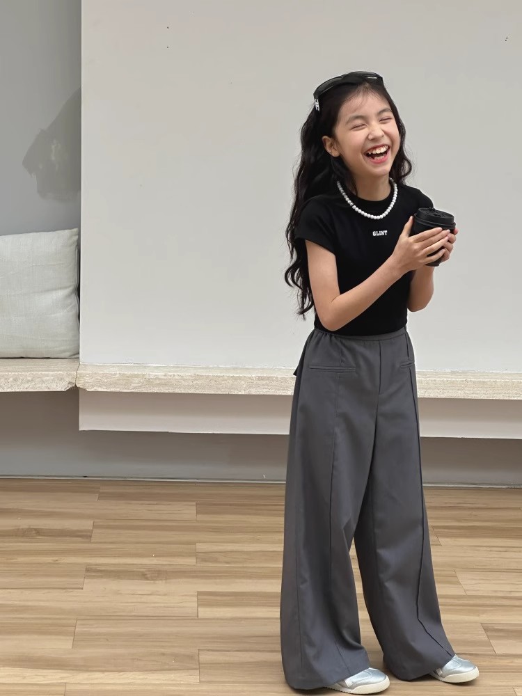 여자 반팔 티셔츠 2024 여름 새 어린이 크루 넥 탑 유행 짧은 티셔츠 스트리트 댄스 팀 원피스 반소매 트렌디스토어 가기
