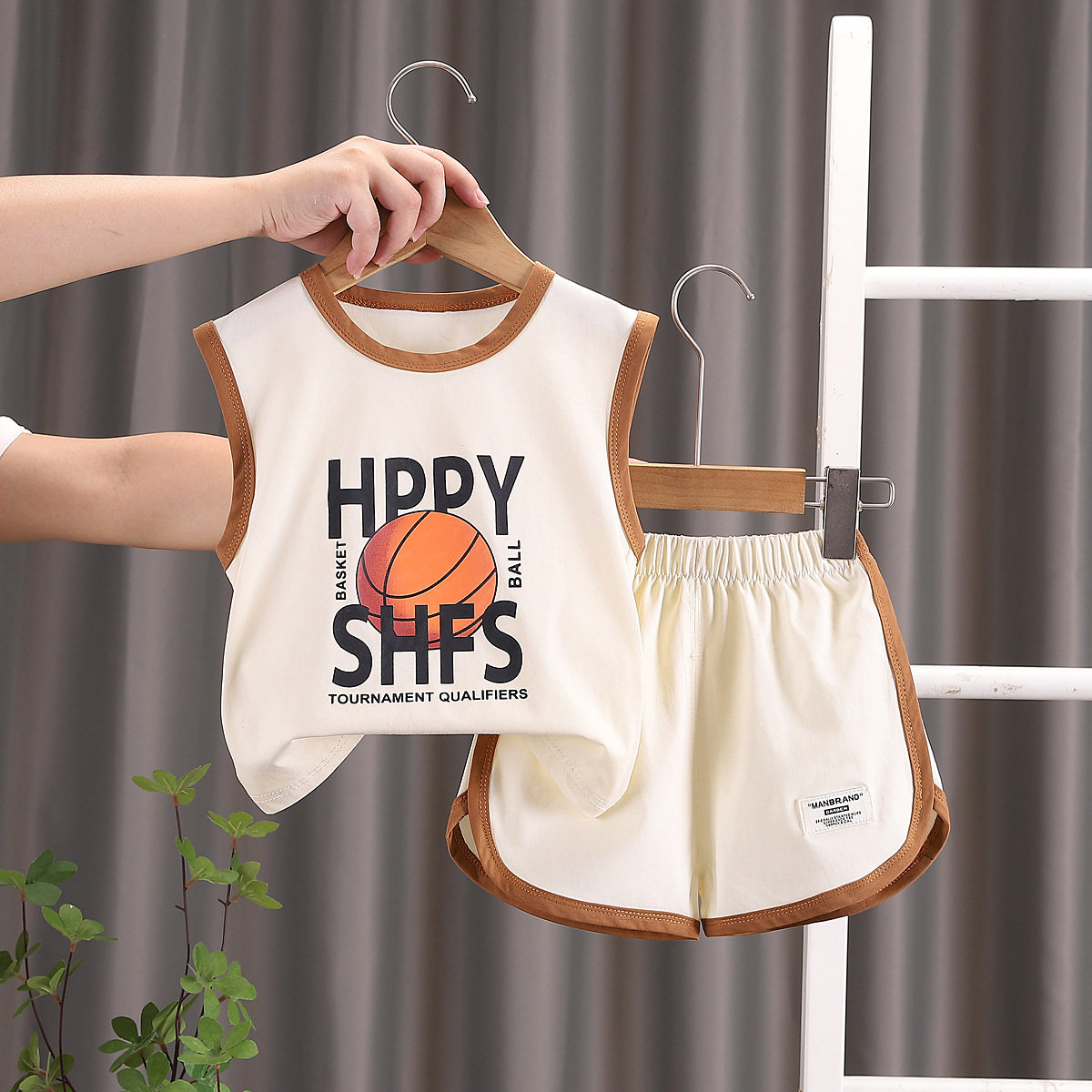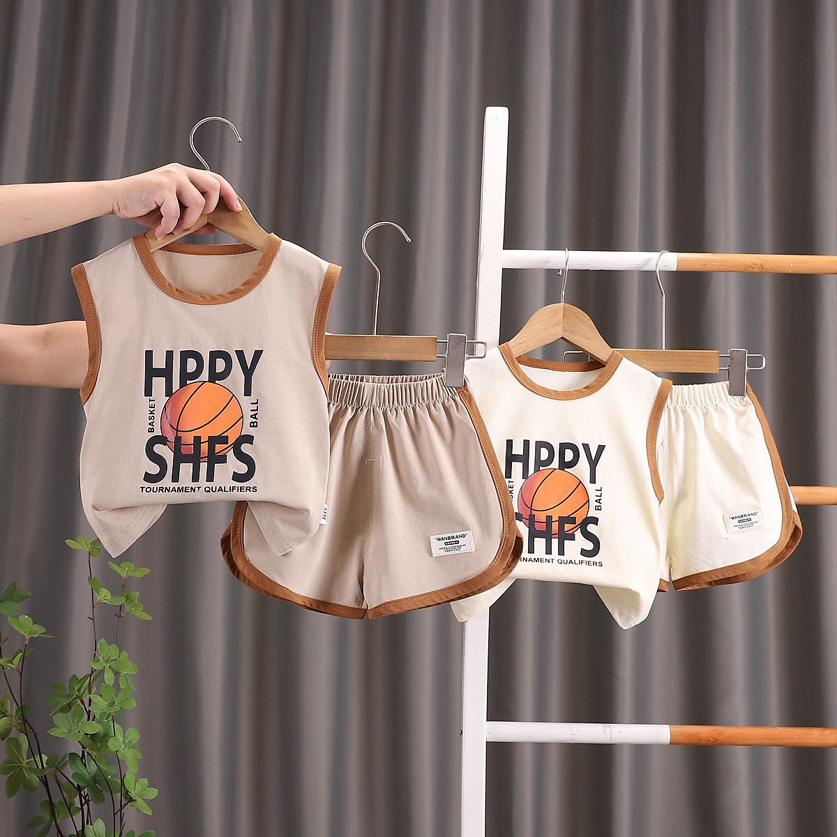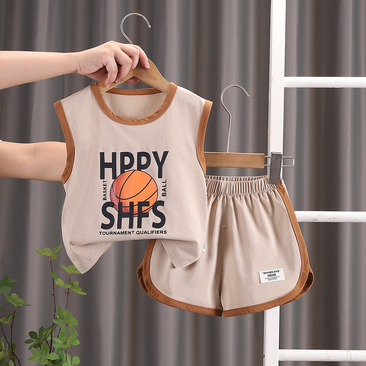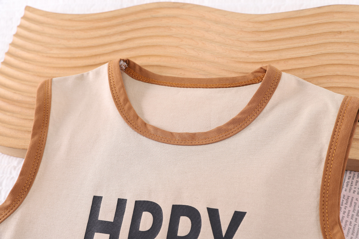 소년 여름 조끼 세트 스포츠 민소매 아동복 2024 새로운 아기 여름 소년 옷 머리카락