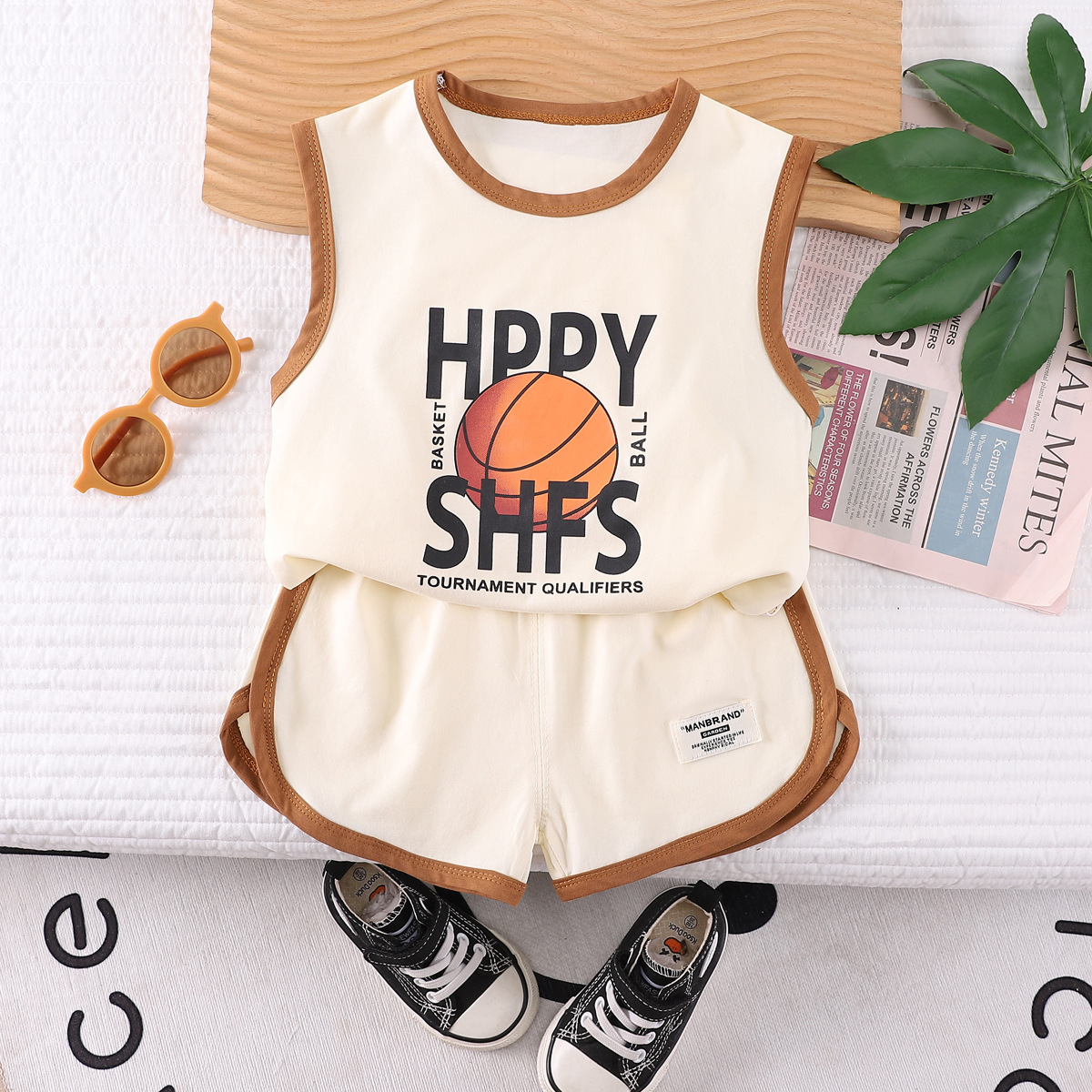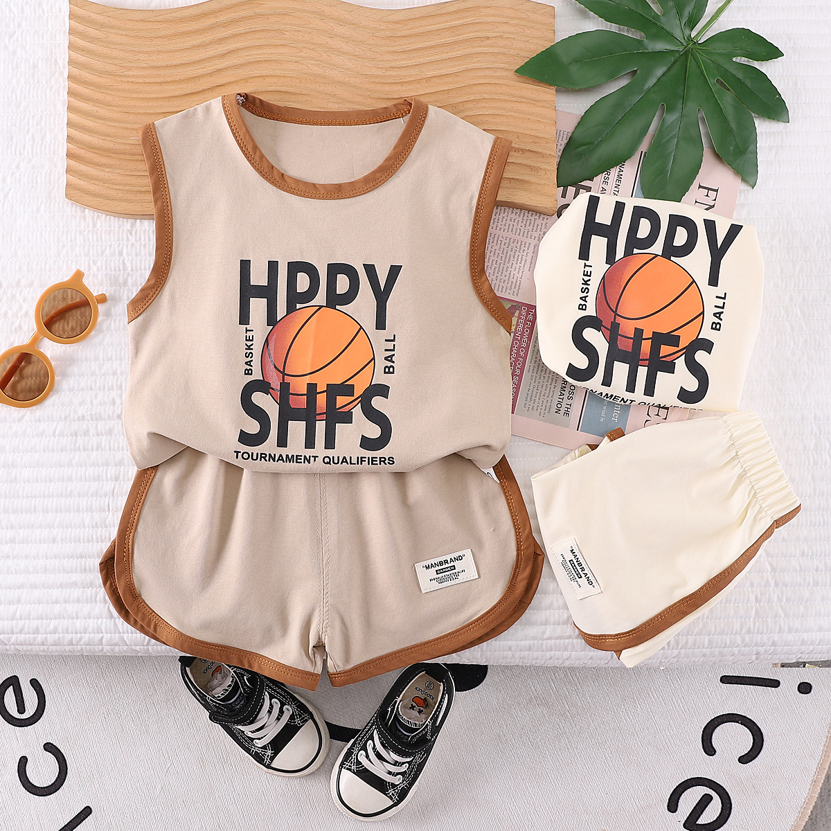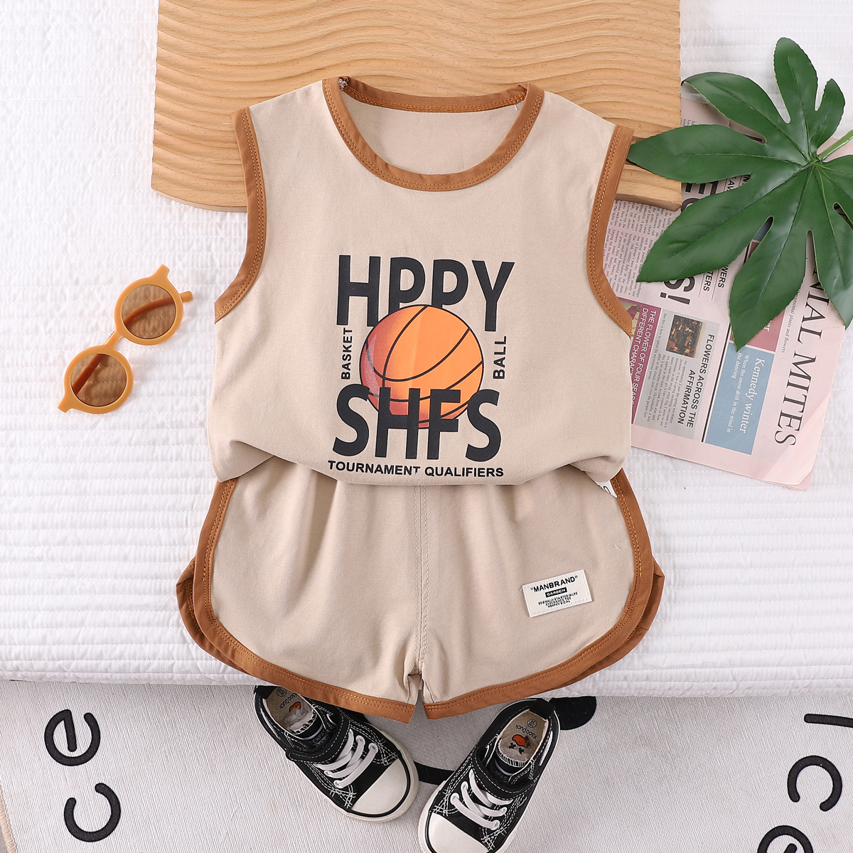 소년 여름 조끼 세트 스포츠 민소매 아동복 2024 새로운 아기 여름 소년 옷 머리카락스토어 가기