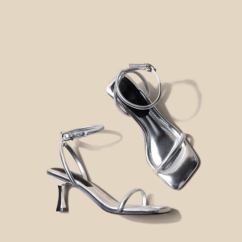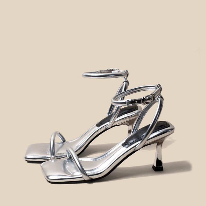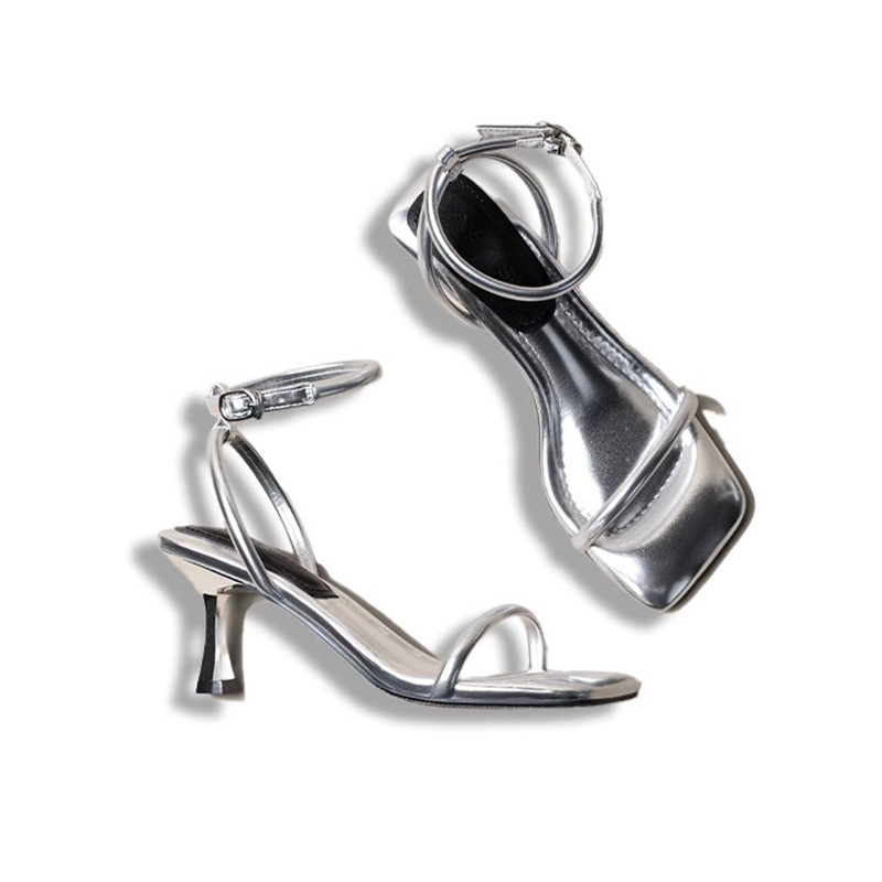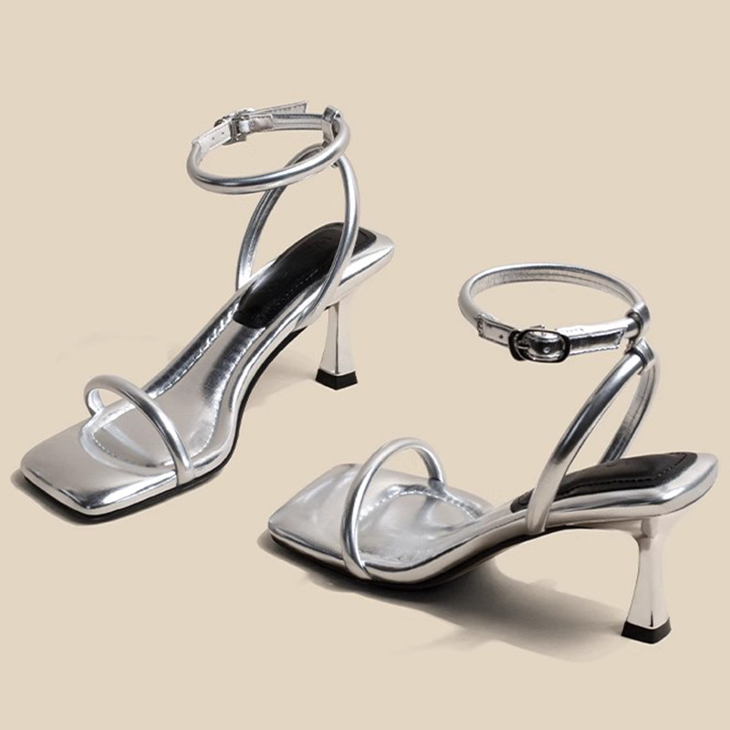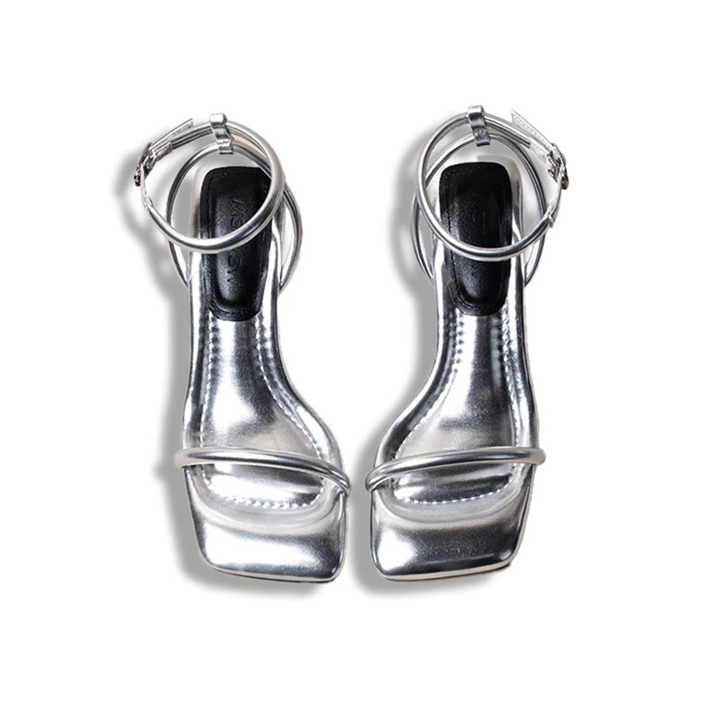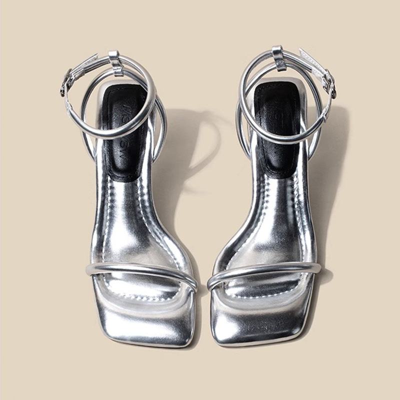 너무 부드럽습니다 ~ 여성 여름 화이트 하이힐 로마 신발을위한 배설 스퀘어 헤드 오픈 토 원 캐릭터 패션 얇은 힐 샌들