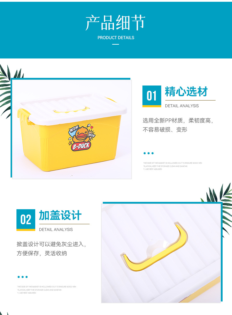 뚜껑이 있는 작은 노란 오리 수납함, 차량용 다용도 수납 정리함, 어린이 장난감 보관함, 40cm 박스, 트렁크용스토어 가기