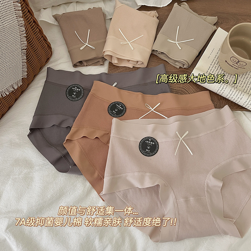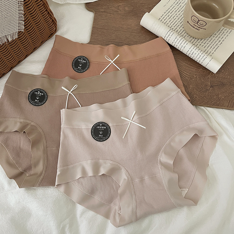 클래스 A 팬티 여성의 위폭 된 힙 트리스 여성 브리프 링 코튼 7A 면 바닥 크로트 중간 허리 반바지