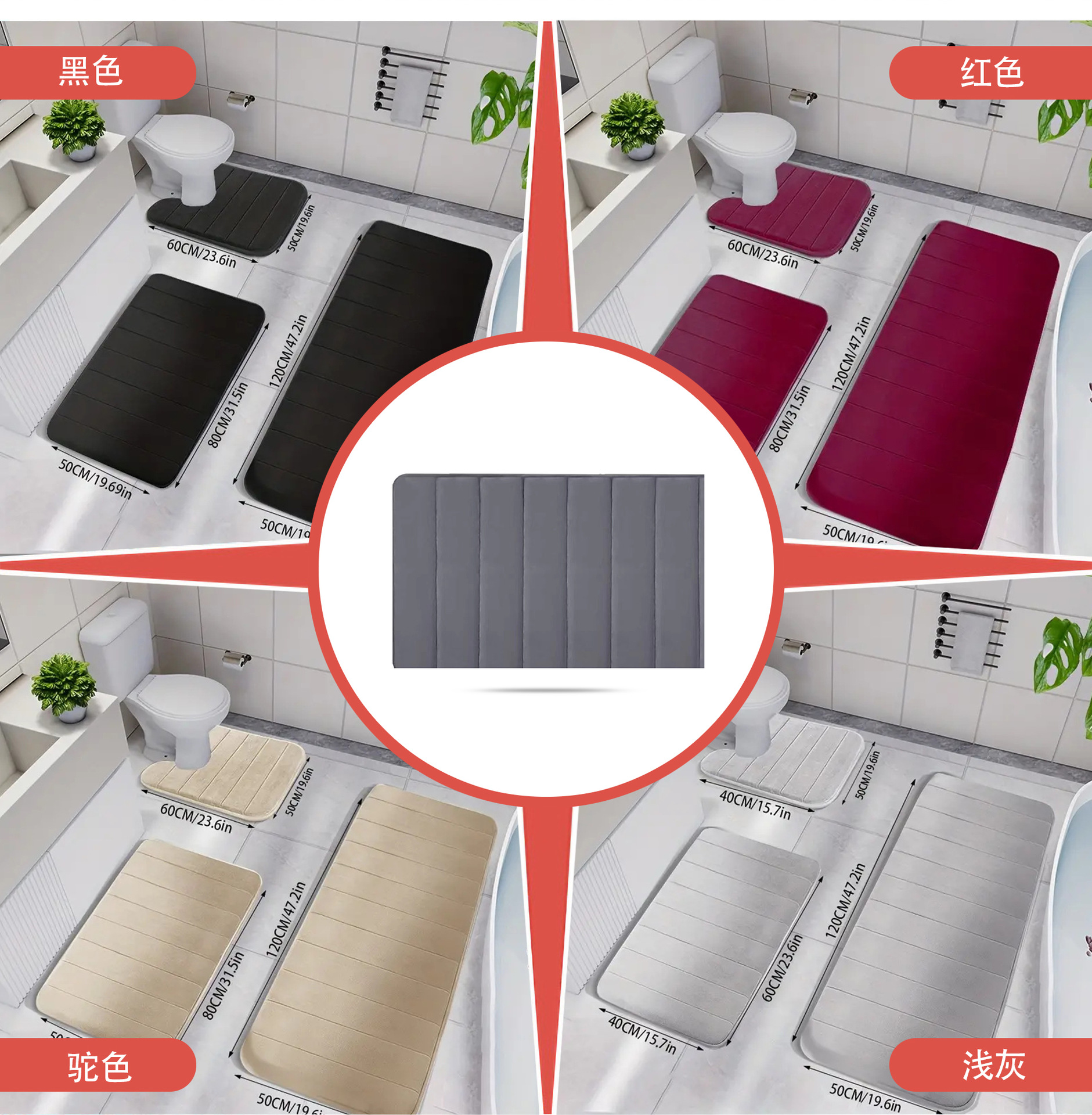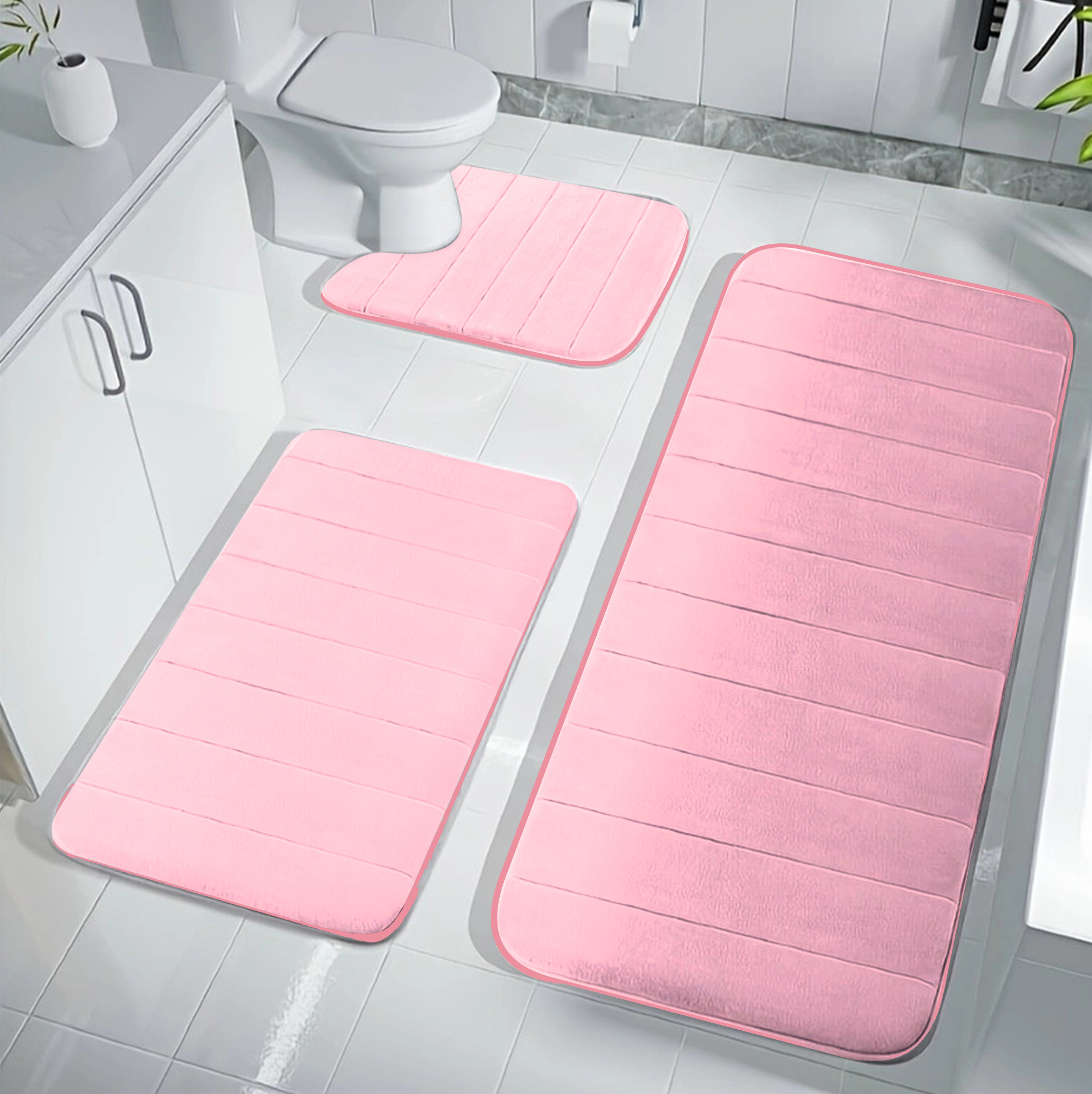 국경 간 산호 양털 퀼트 바닥 매트 아마존 화장실 3 피스 바닥 매트 가정용 미끄럼 방지 발 매트 솔리드 컬러 풋 매트스토어 가기