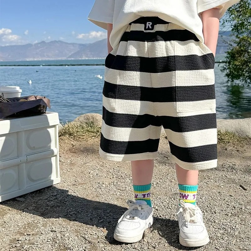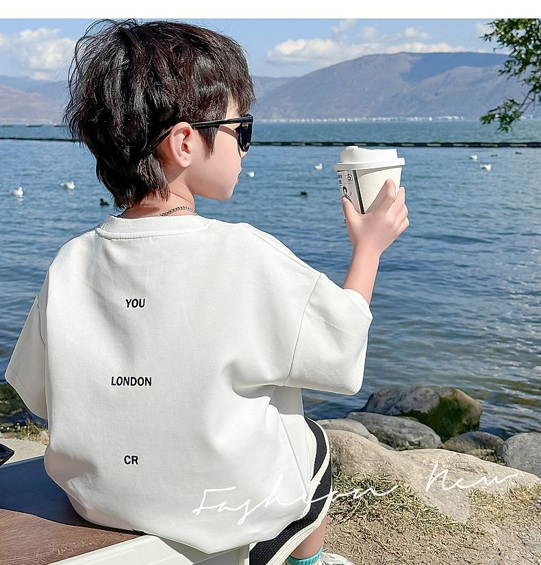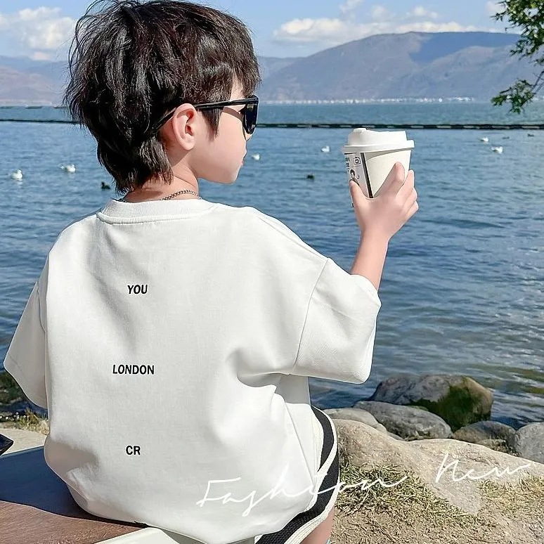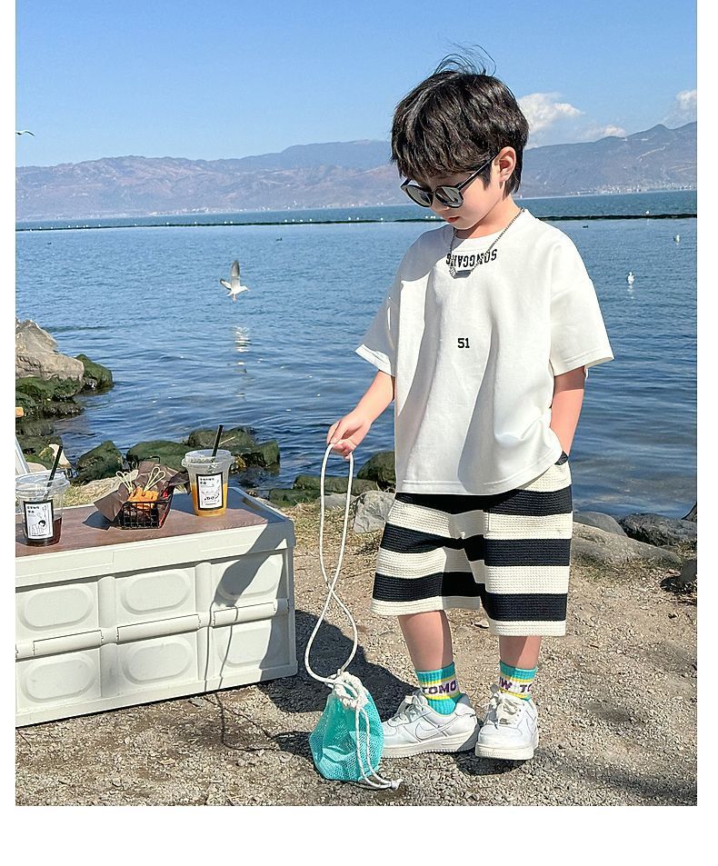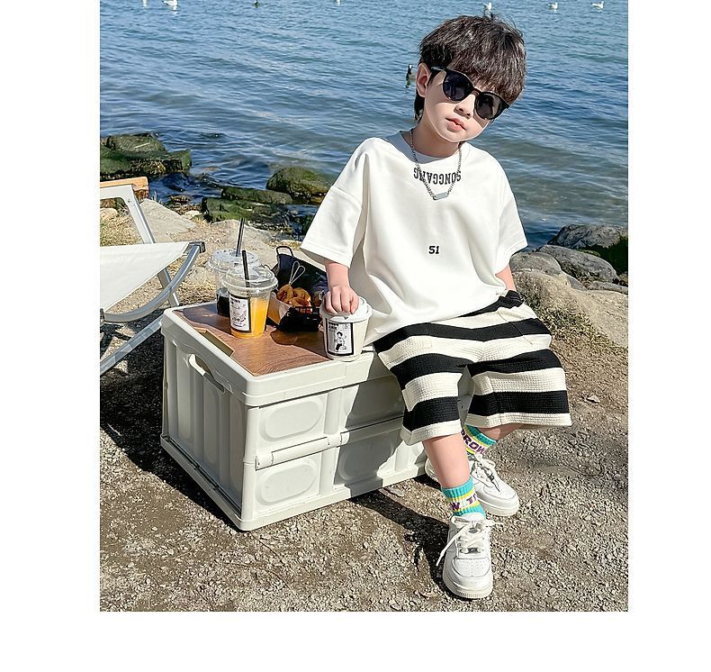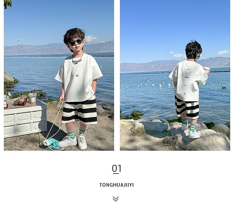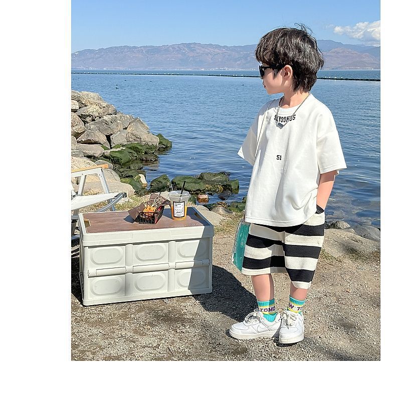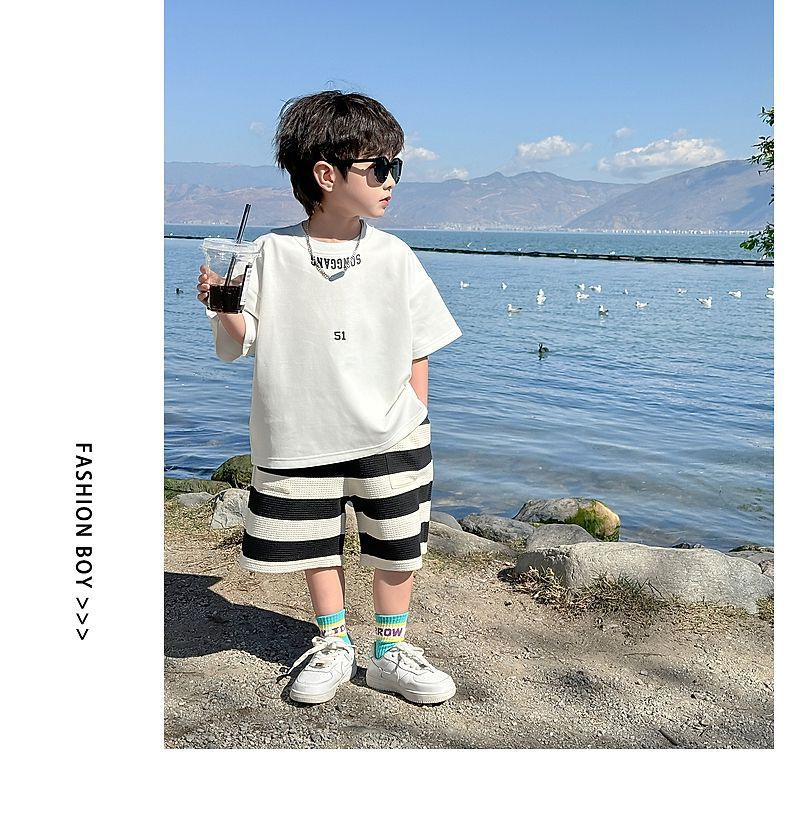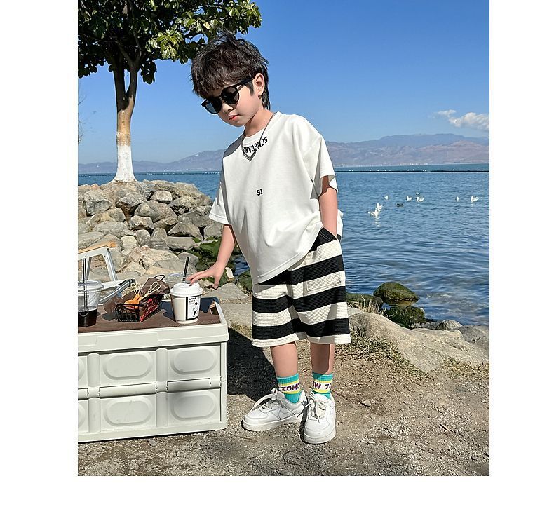 소년 여름 정장 2025 새로운 어린이 한국 스타일 여름 반팔 소년 잘 생긴 5 점 바지 캐주얼 투피스 세트스토어 가기