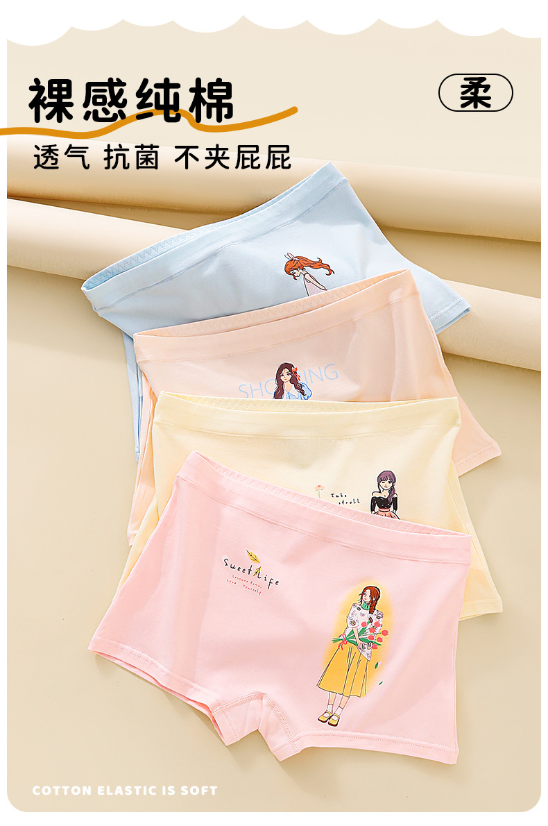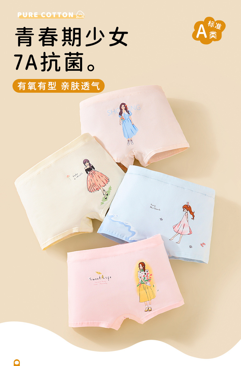 사춘기 발달기간 4 코너 반바지 순면 항균 여학생 속옷 큰아이 10 대 여학생 복서스토어 가기