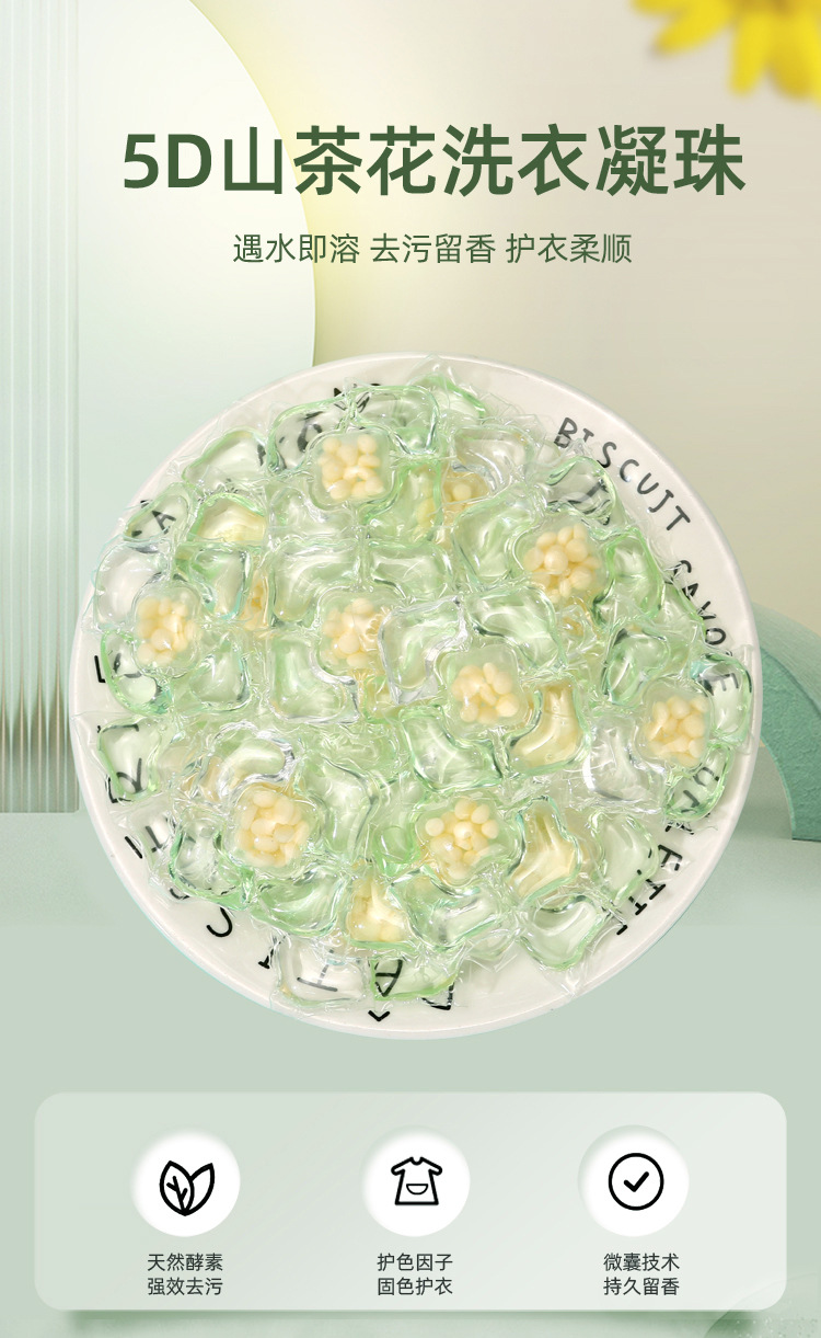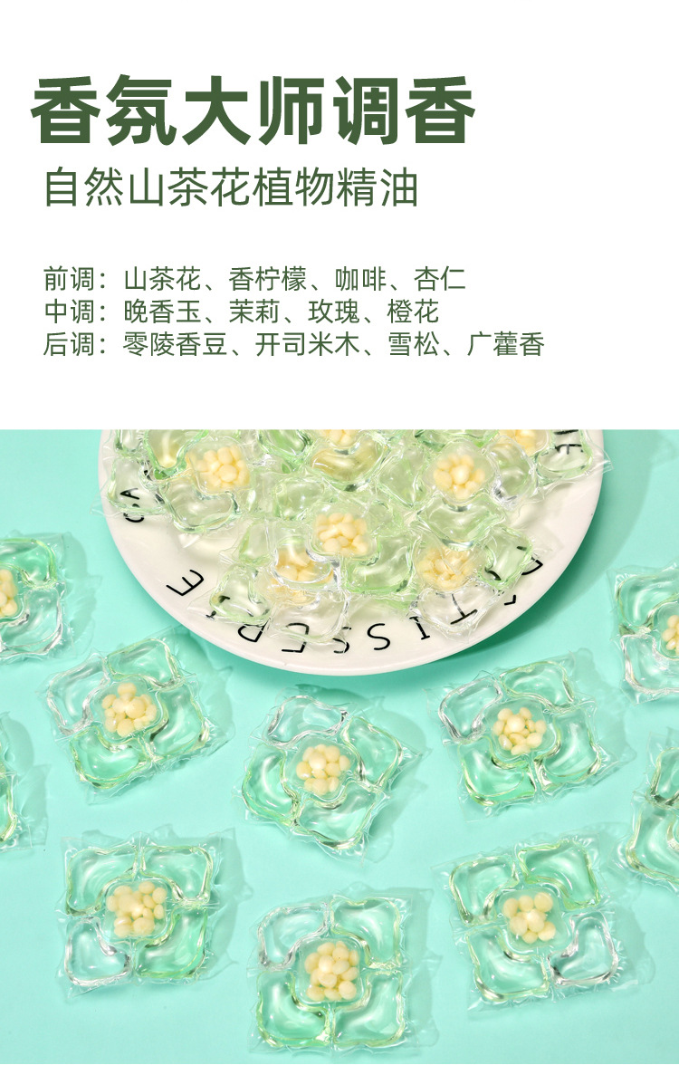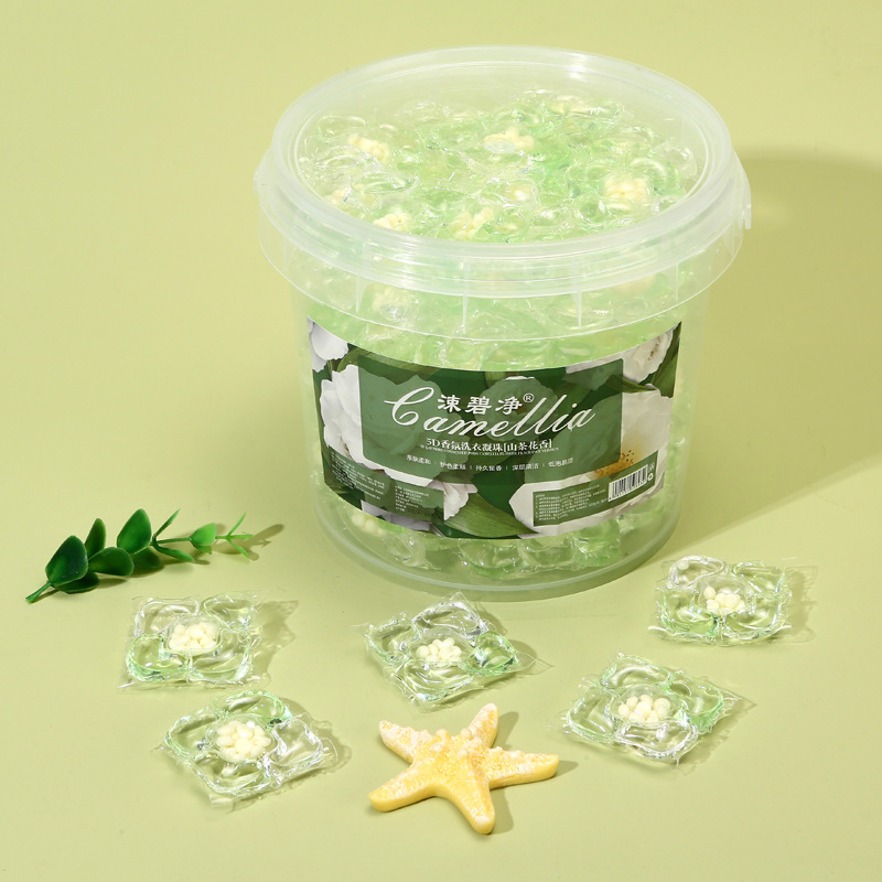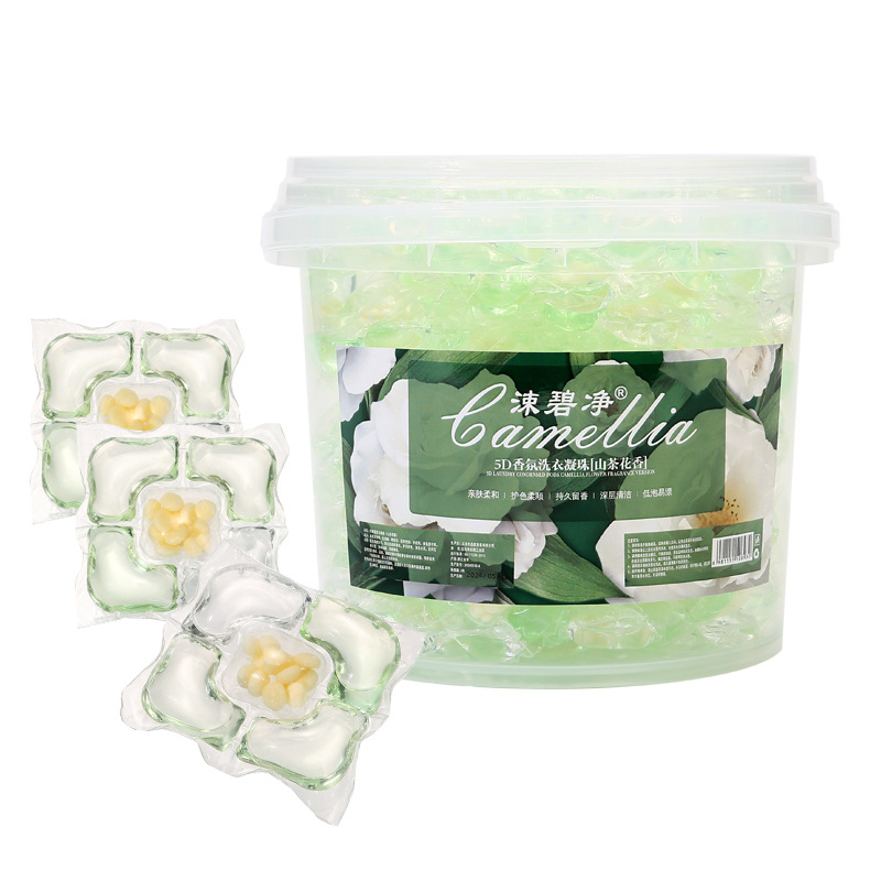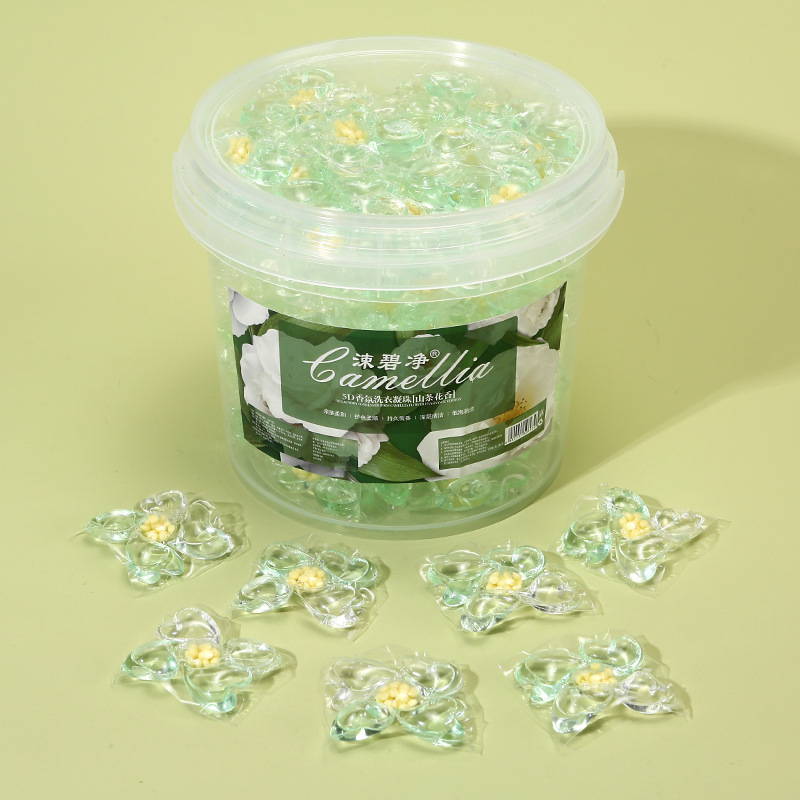 동백 꽃 세탁 구슬 배럴 5 대 1 지속 향수 부드러운 세탁 공 강한 오염 제거 농축 세탁 세제