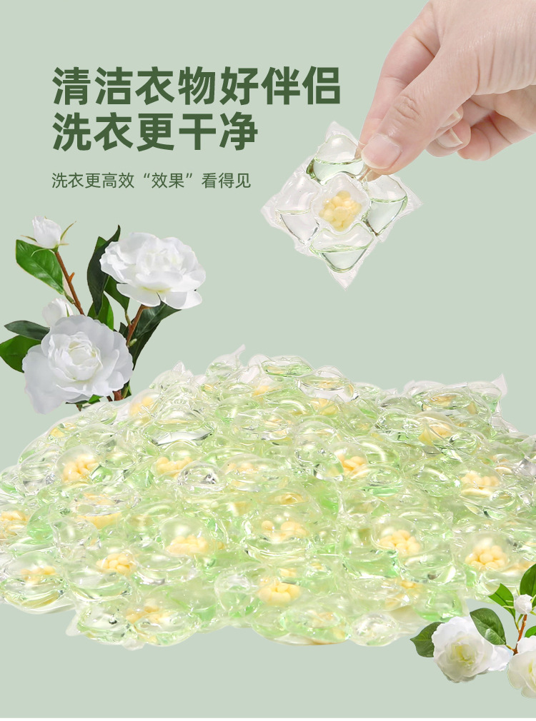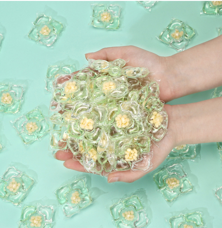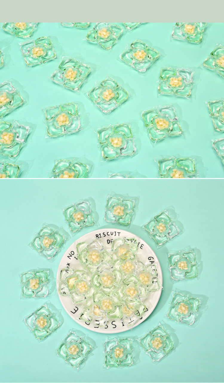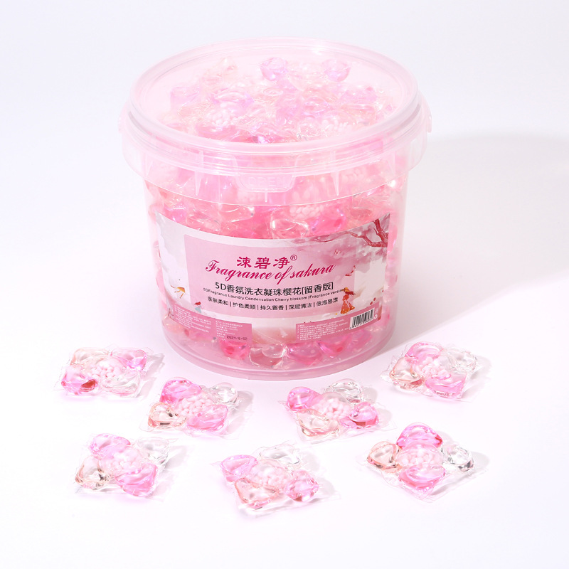 동백 꽃 세탁 구슬 배럴 5 대 1 지속 향수 부드러운 세탁 공 강한 오염 제거 농축 세탁 세제