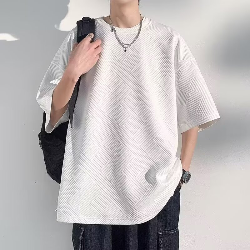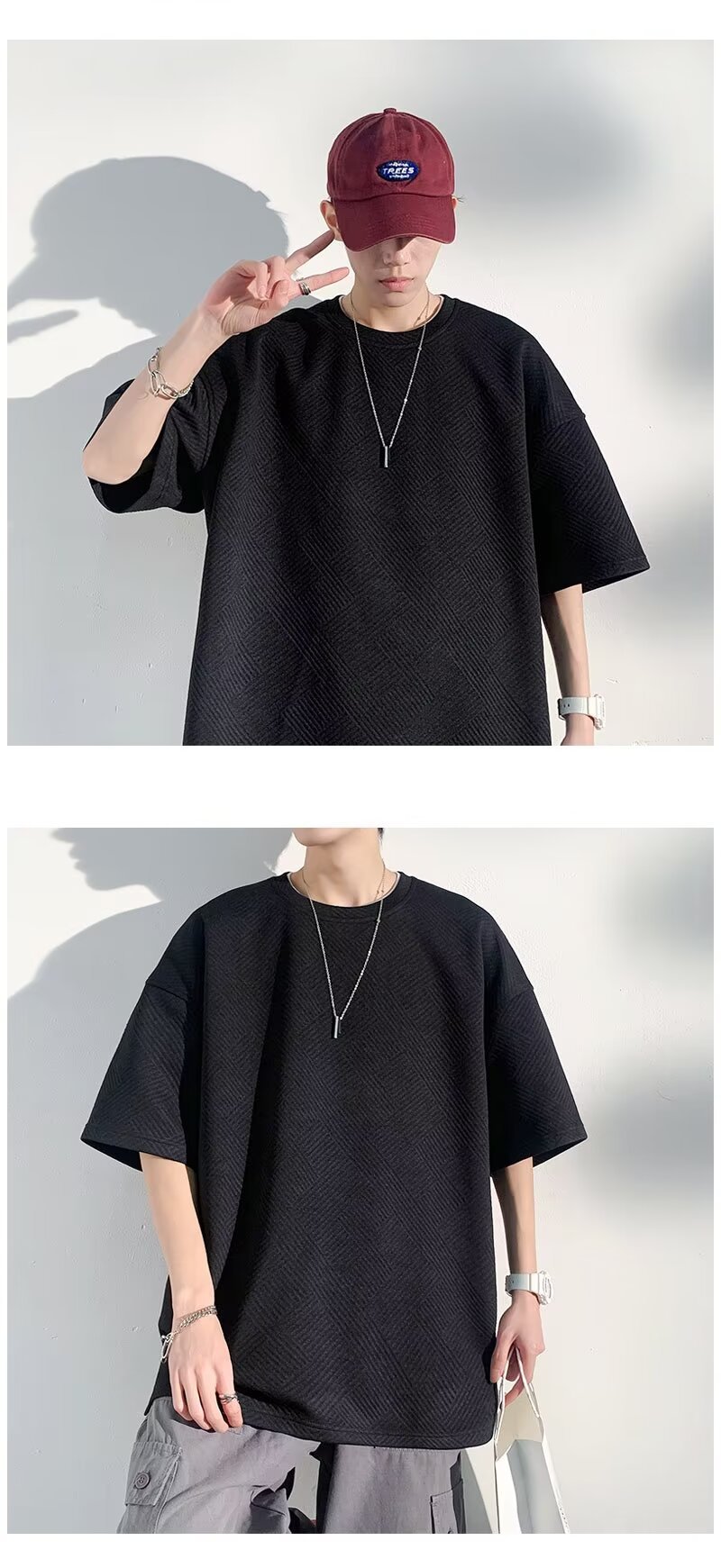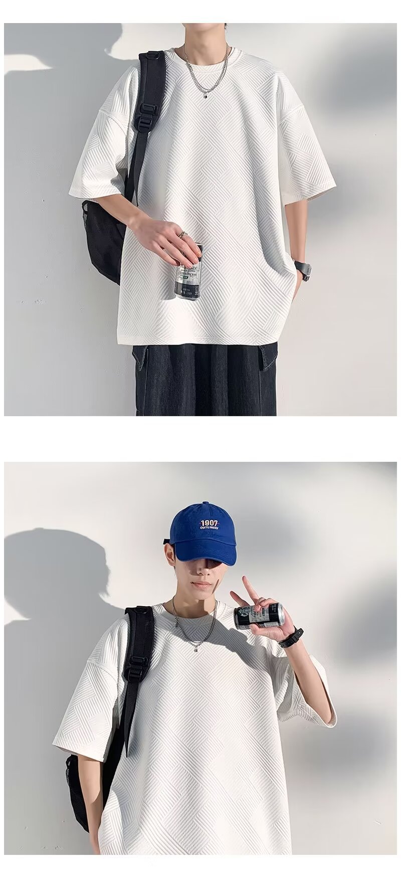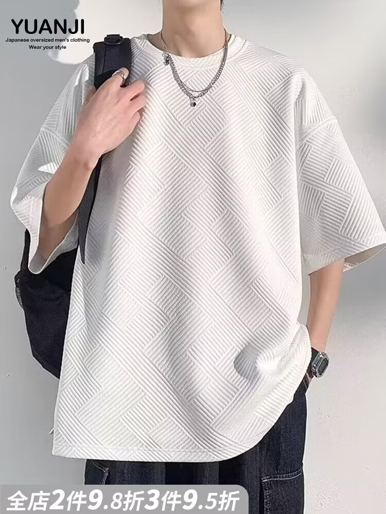 320g 헤비 와플 반팔 티셔츠 남자 여름 2024 뉴 루즈 플러스 사이즈 화이트 긴팔 티셔츠스토어 가기