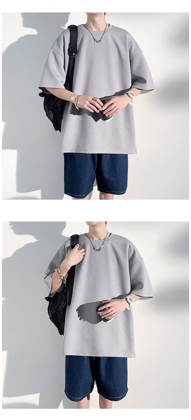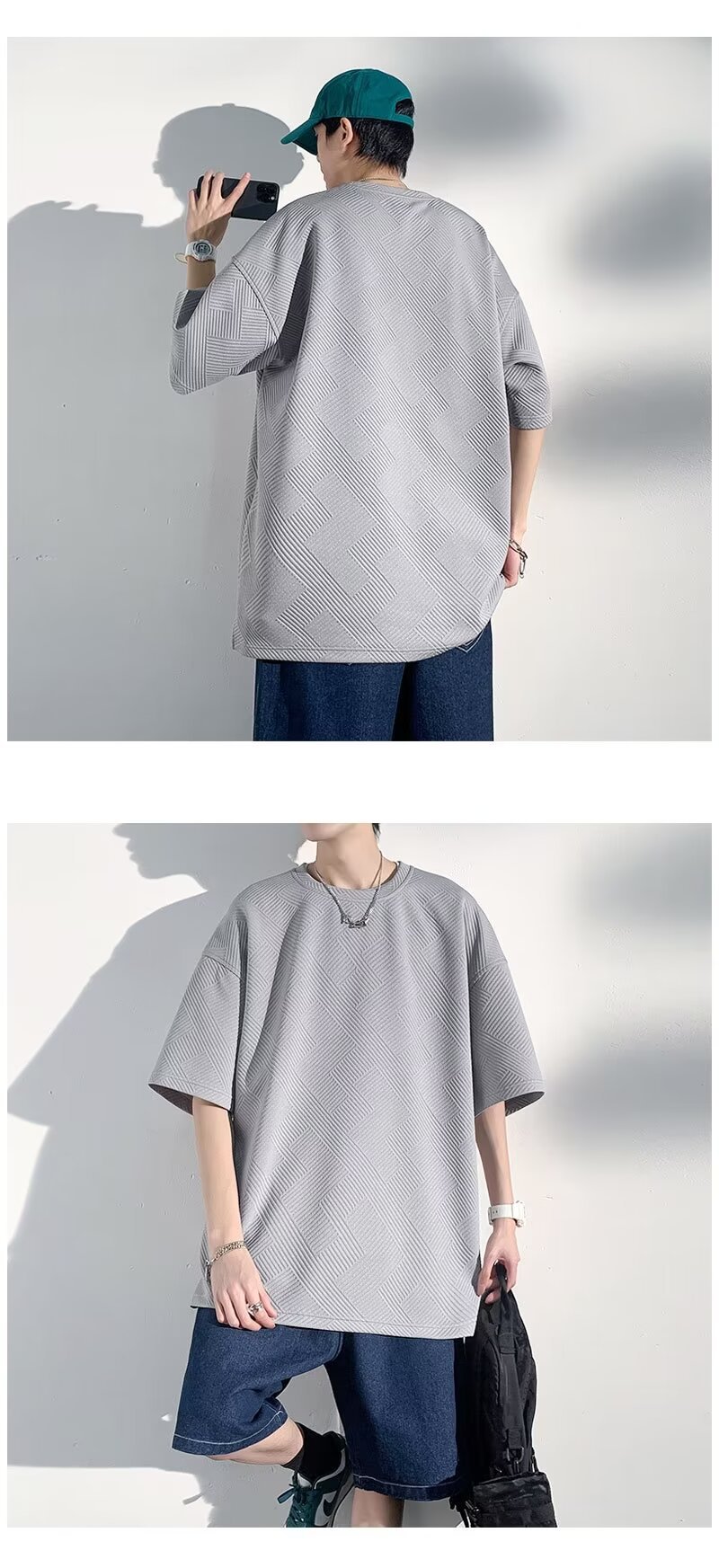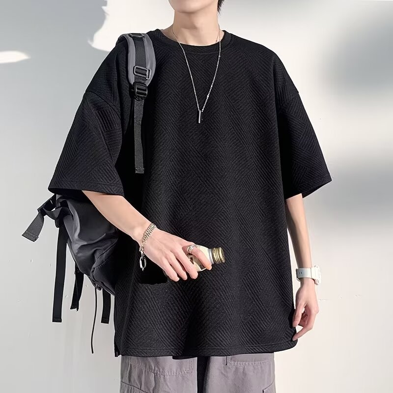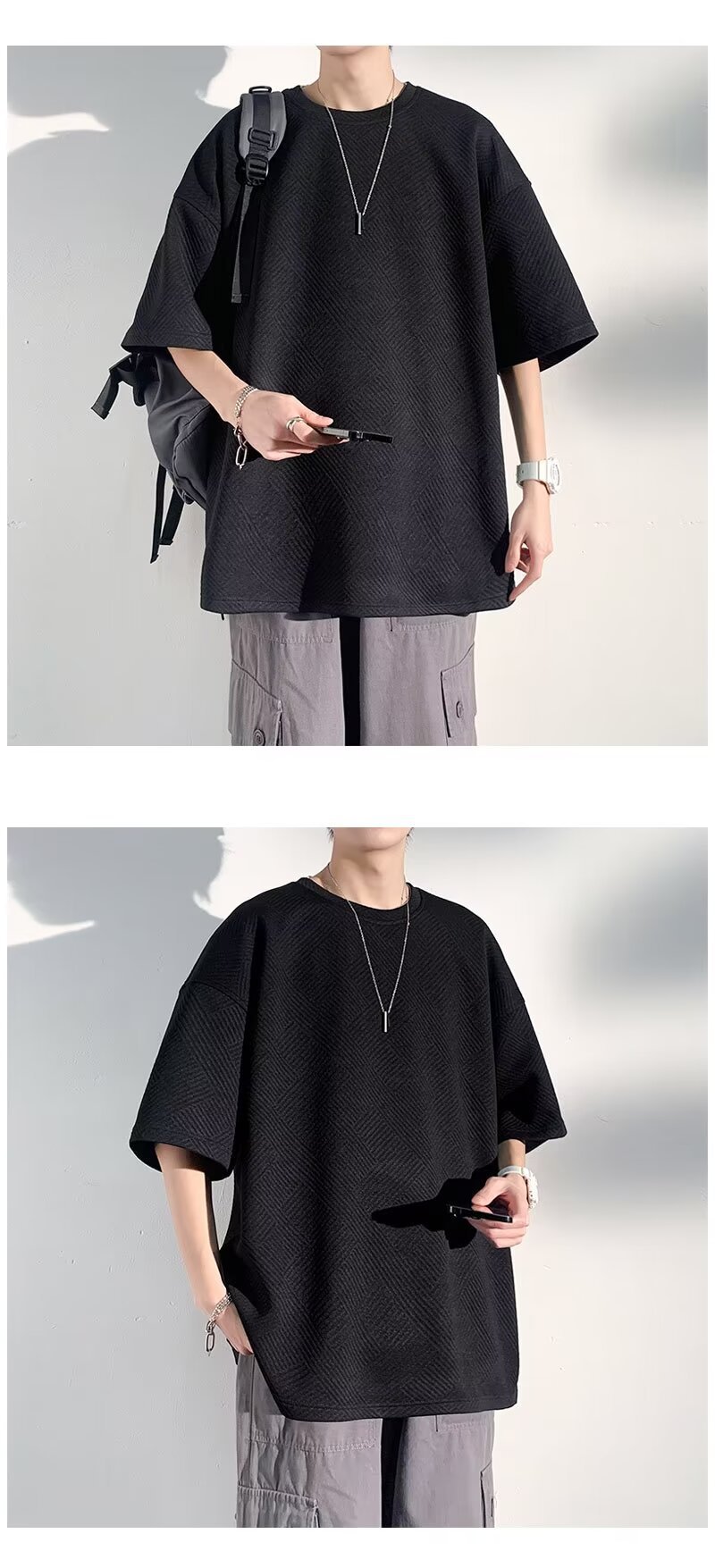 320g 헤비 와플 반팔 티셔츠 남자 여름 2024 뉴 루즈 플러스 사이즈 화이트 긴팔 티셔츠스토어 가기