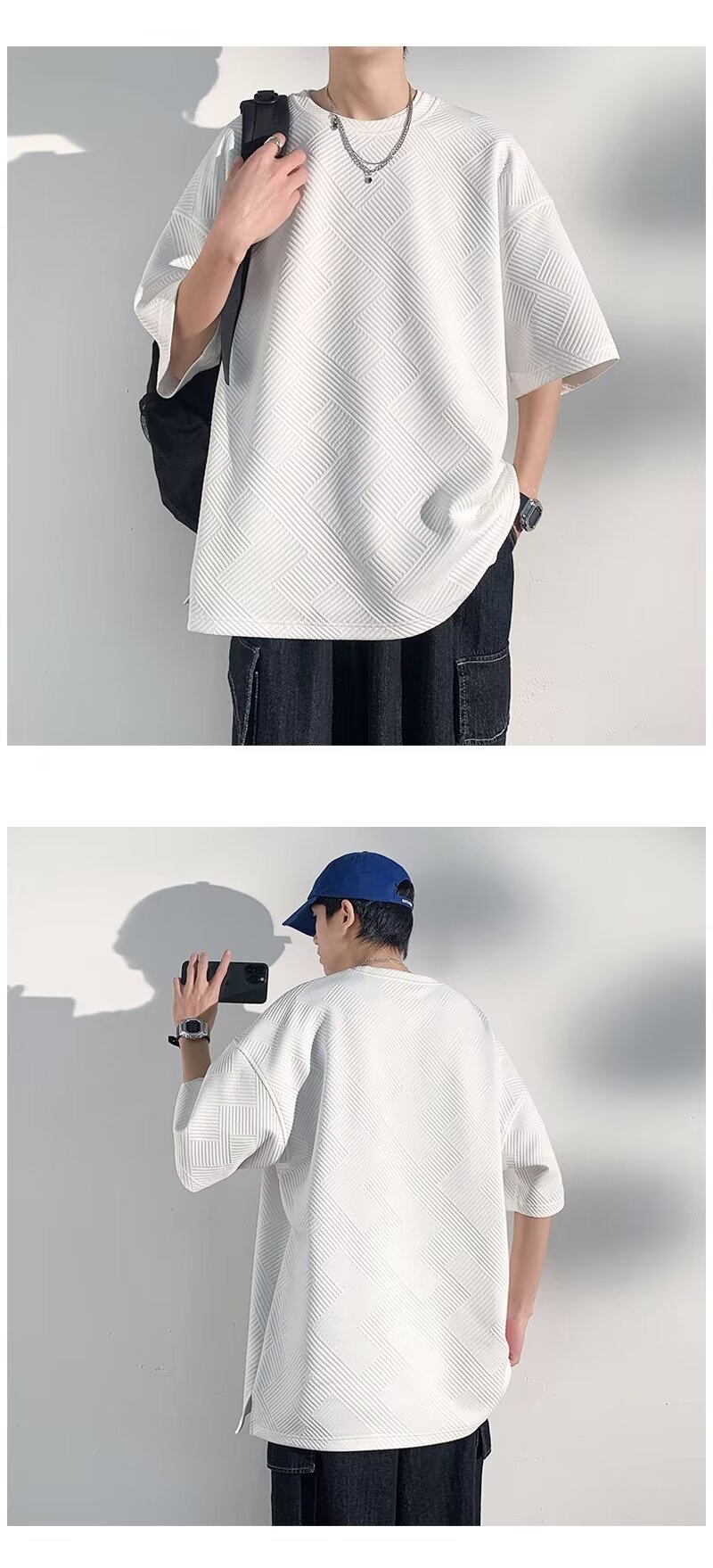 320g 헤비 와플 반팔 티셔츠 남자 여름 2024 뉴 루즈 플러스 사이즈 화이트 긴팔 티셔츠