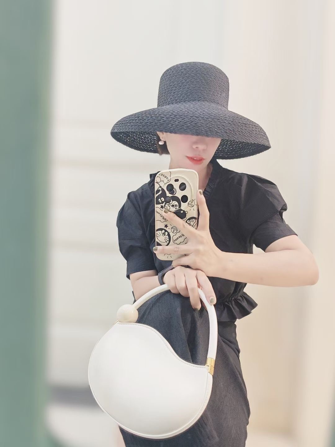 블랙 할로우 레트로 짠 여름 선 스크린 헵번 후드