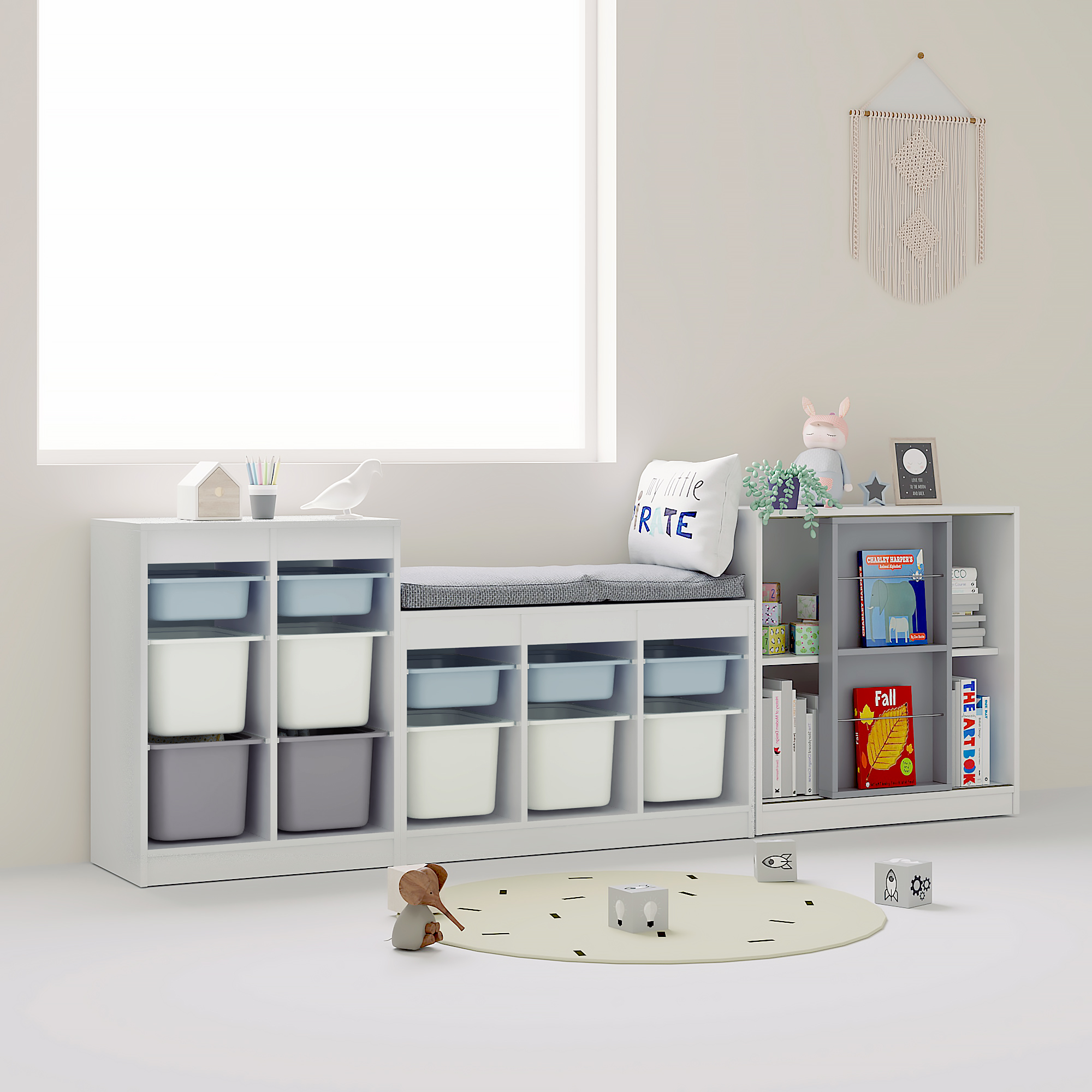 • ι∇∇∇∇ι120 화이트 + 2x5 장난감 수납장, 길이 186cmι∇∇∇∇ι