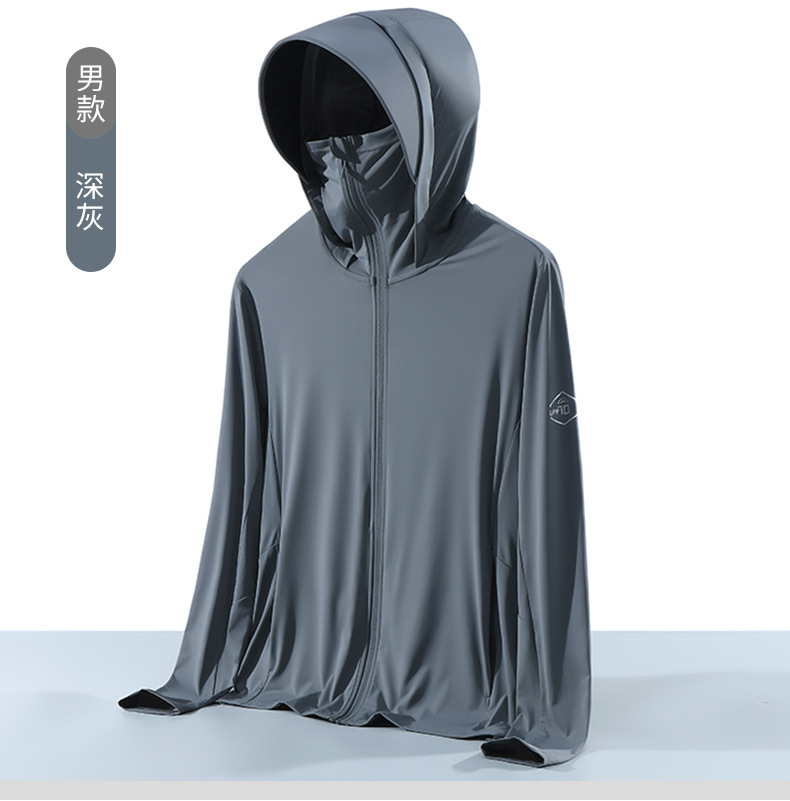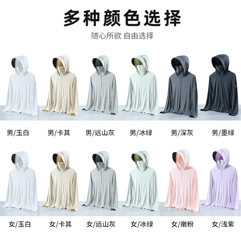 원사 태양 보호 의류 여성용 아이스 실크 태양 보호 의류 남성 이동식 블랙 고무 모자 UV 보호 UPF50 낚시 의류