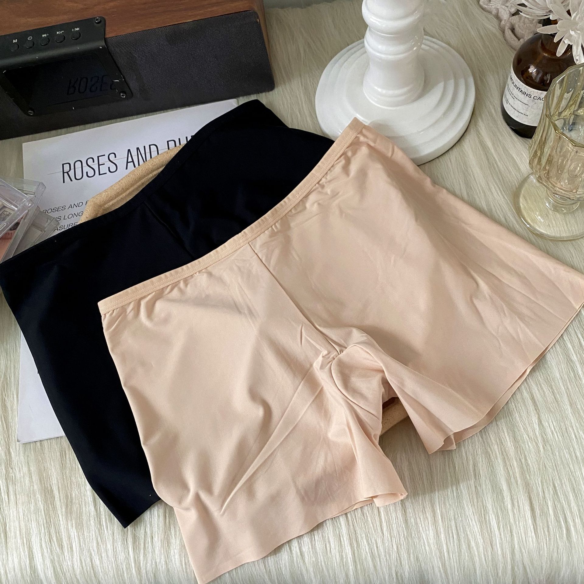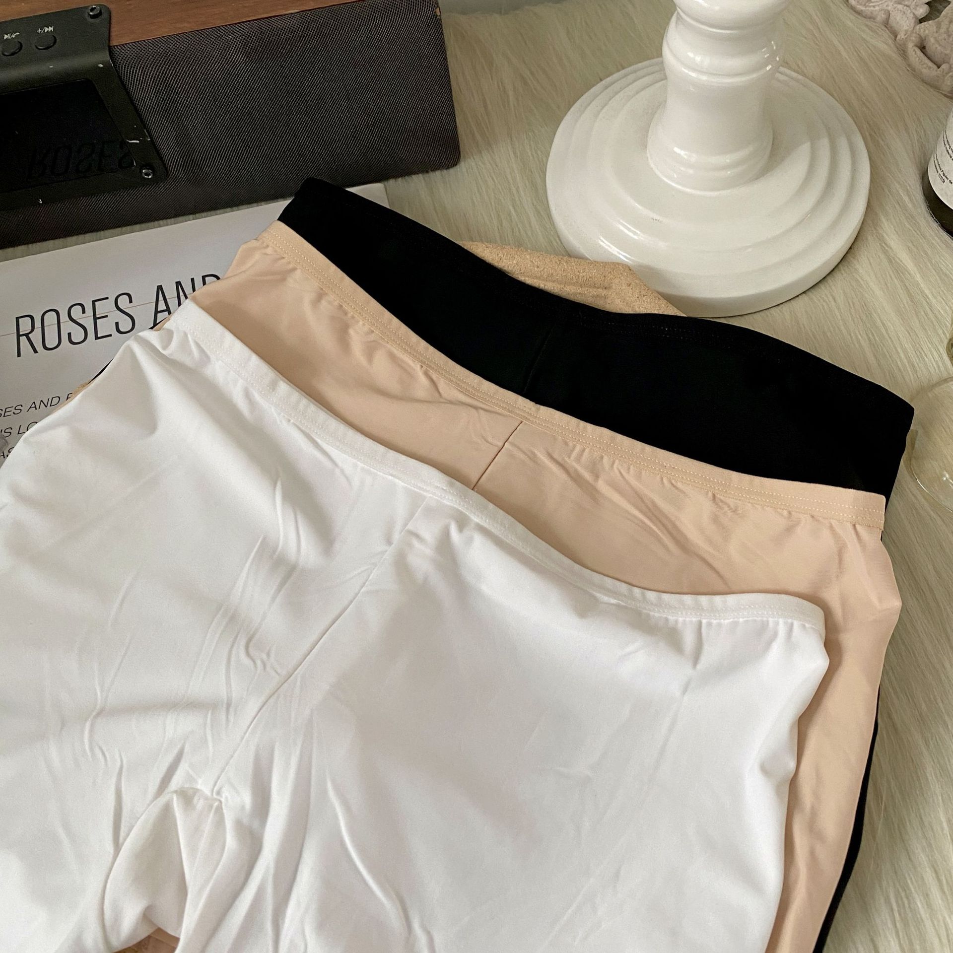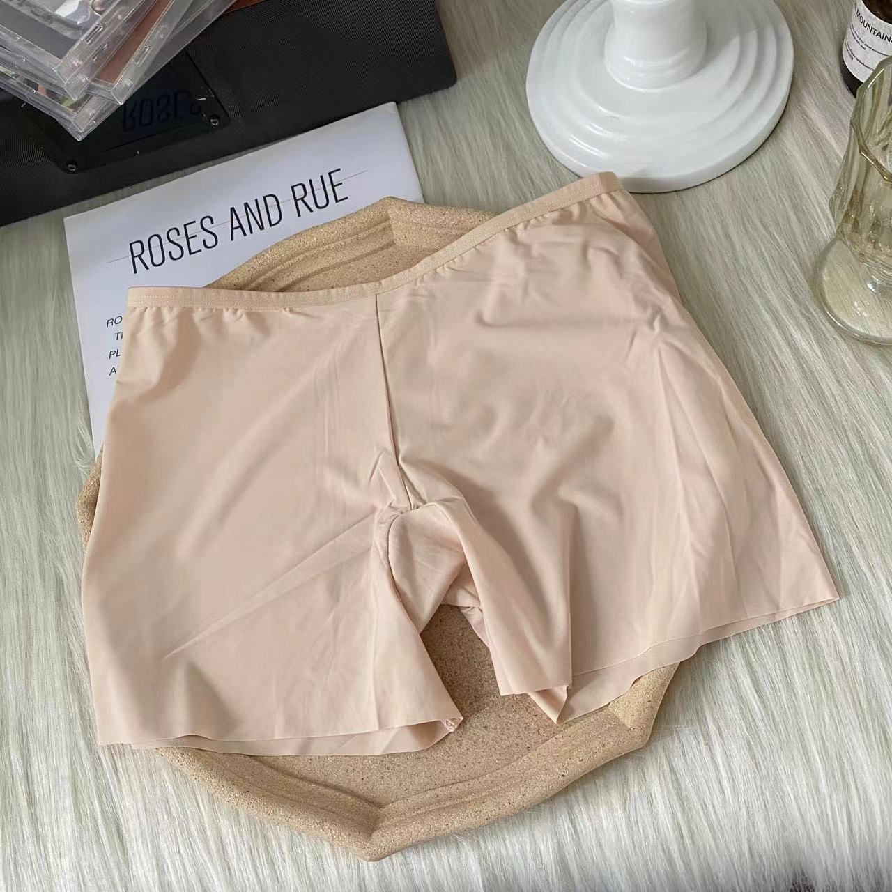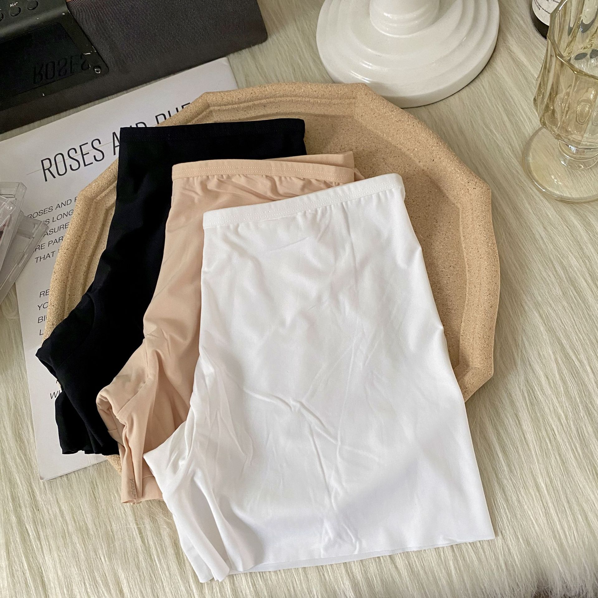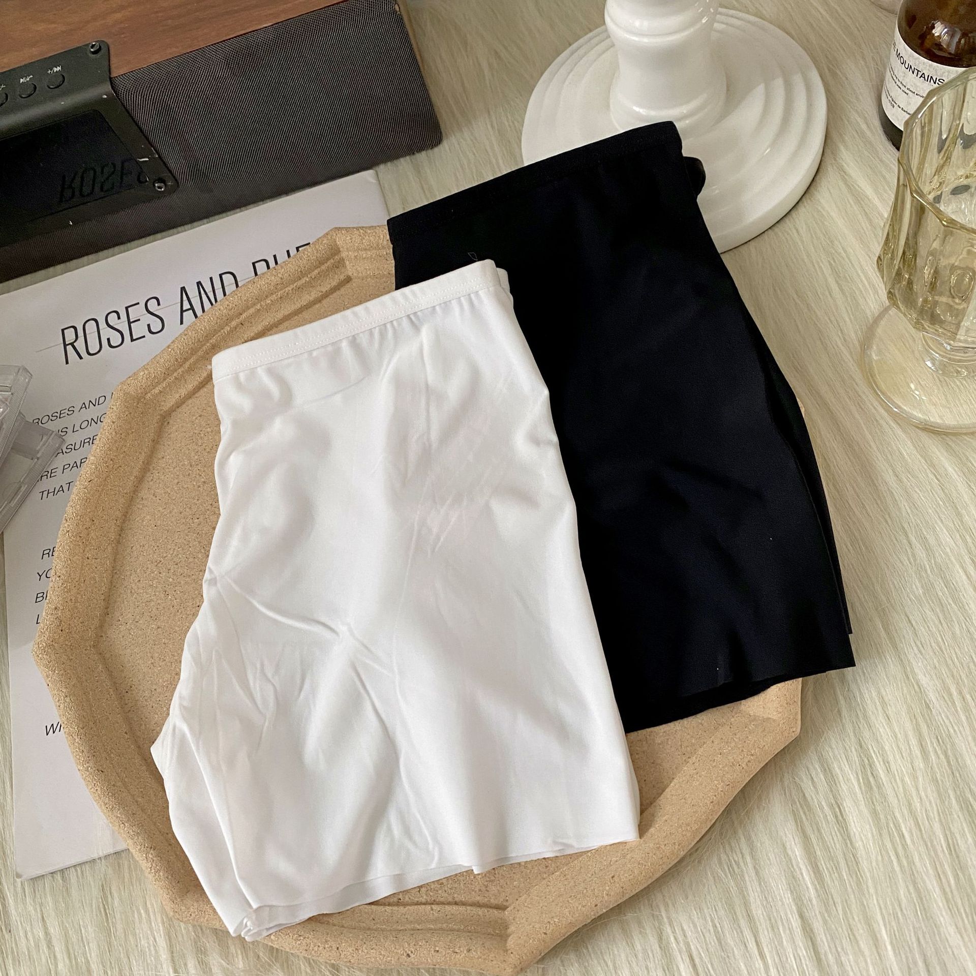 여름 새로운 솔리드 컬러 간단한 추적없는 쿨 아이스 실크 바토밍 반바지 여성의 중간 허리 통기성 안티 러닝 안전 바지