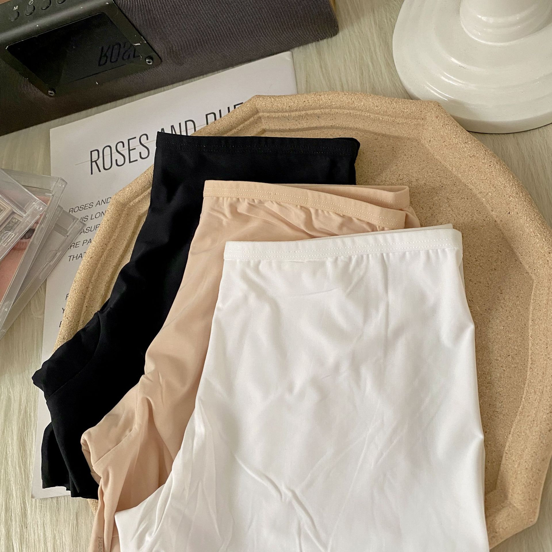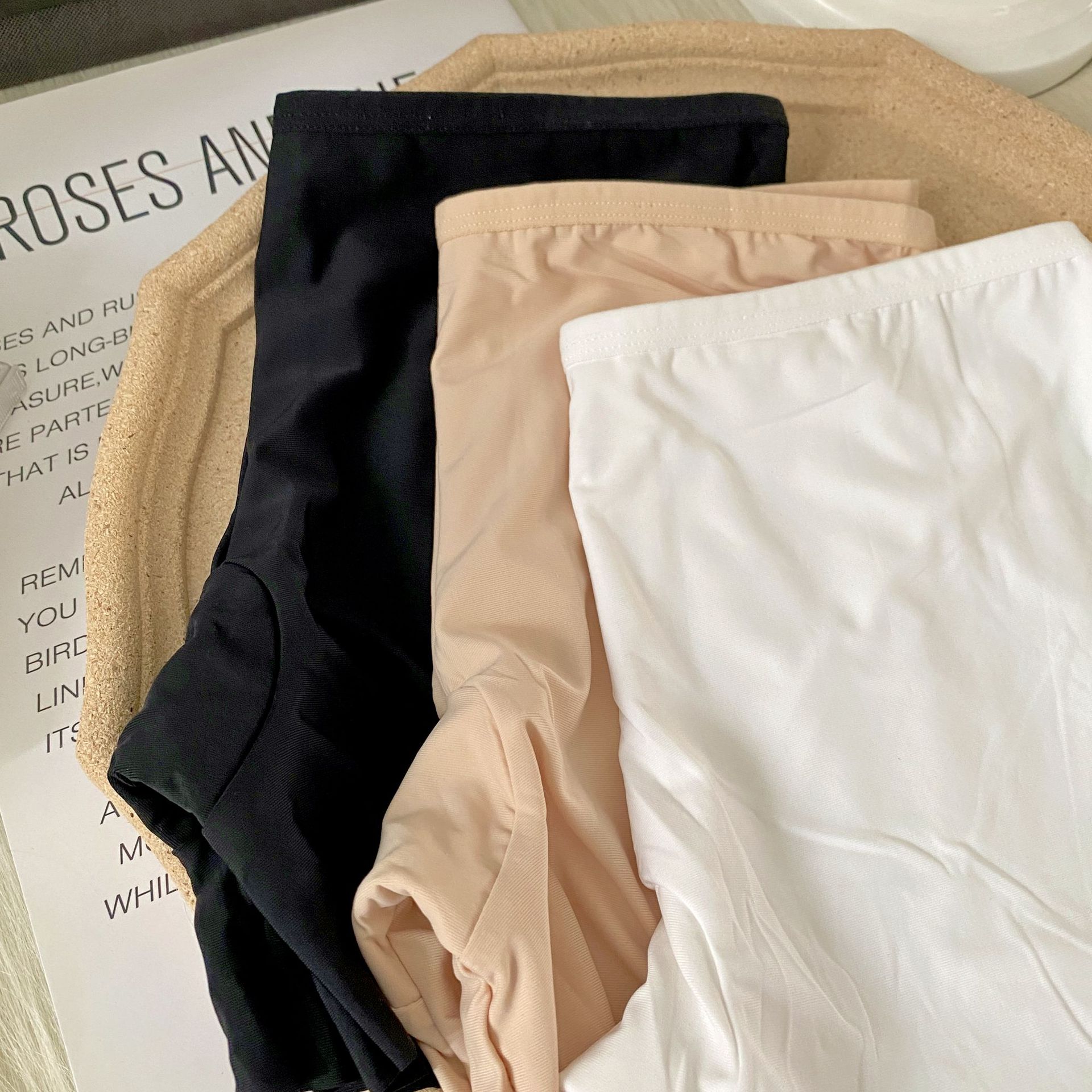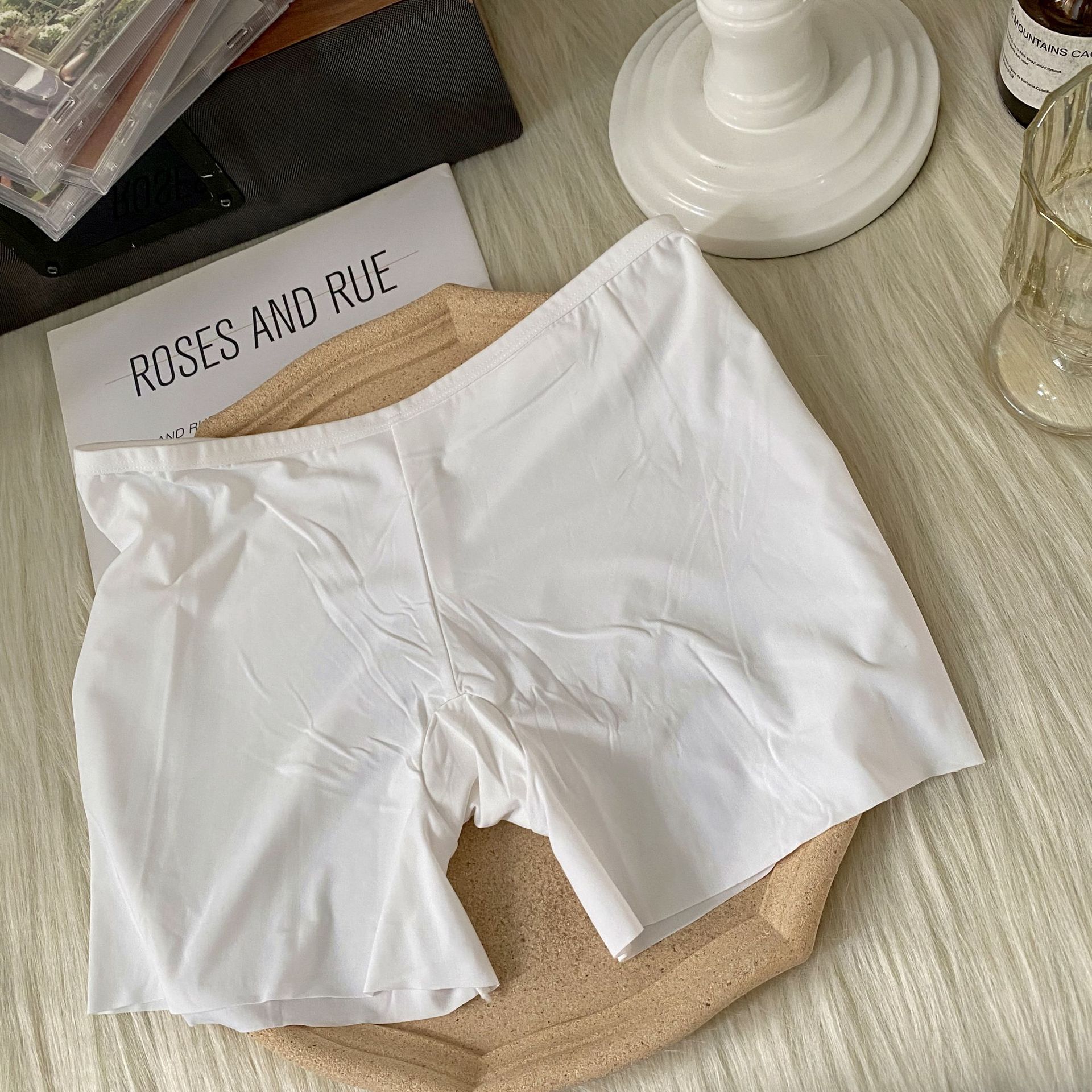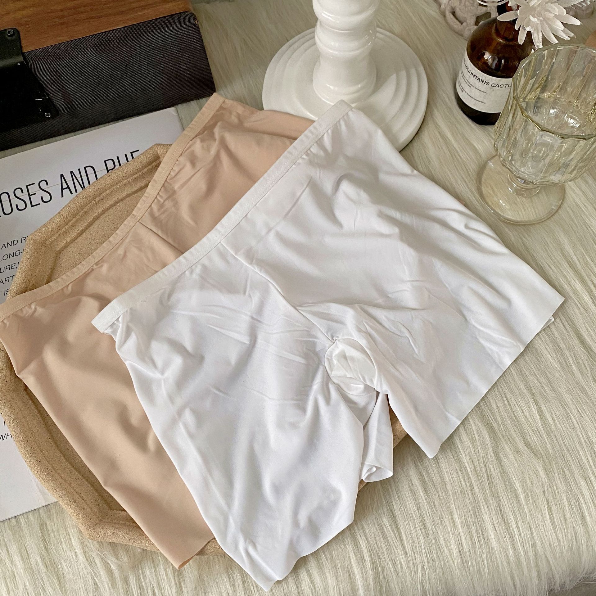 여름 새로운 솔리드 컬러 간단한 추적없는 쿨 아이스 실크 바토밍 반바지 여성의 중간 허리 통기성 안티 러닝 안전 바지
