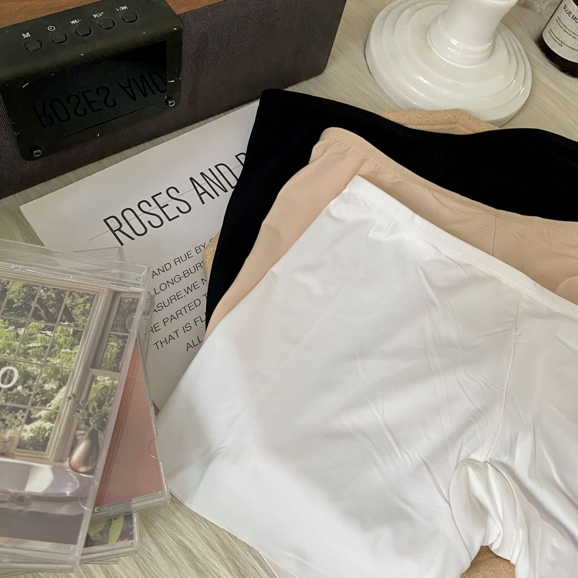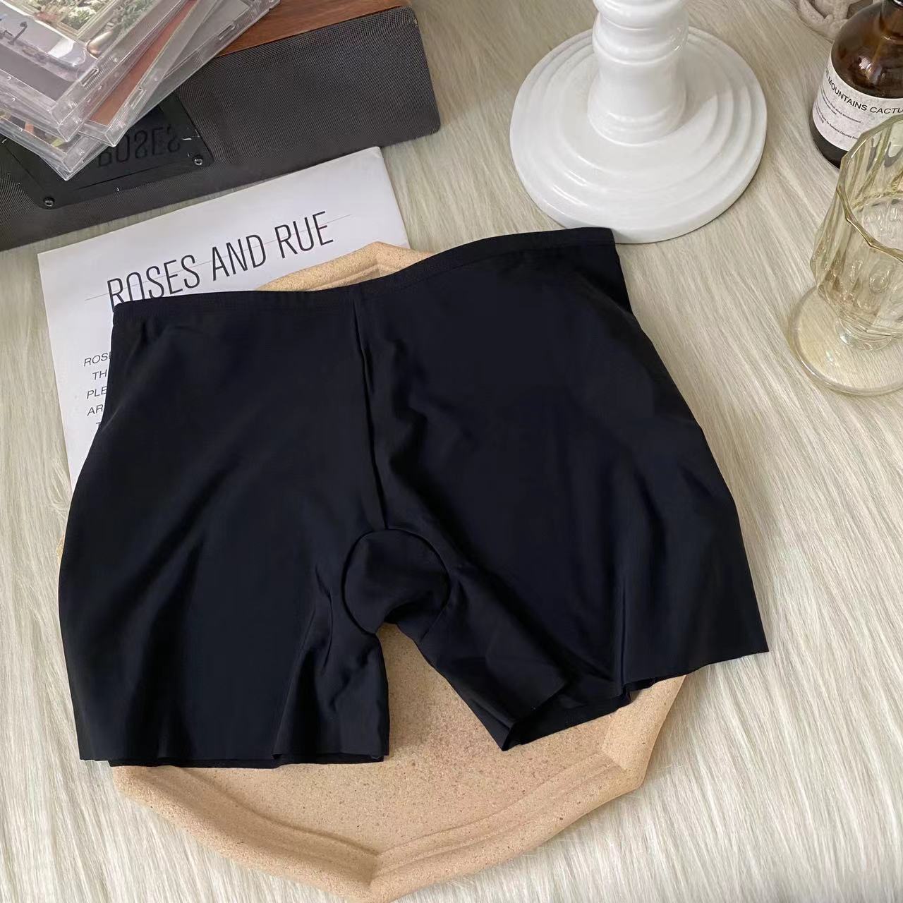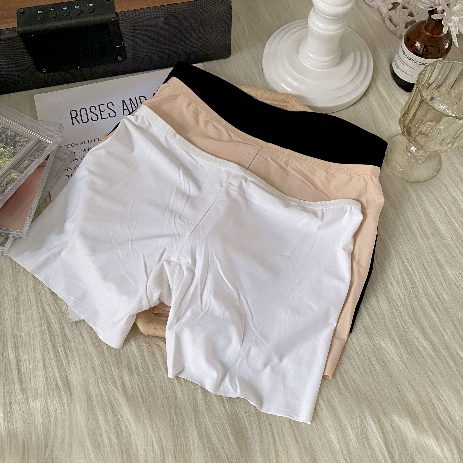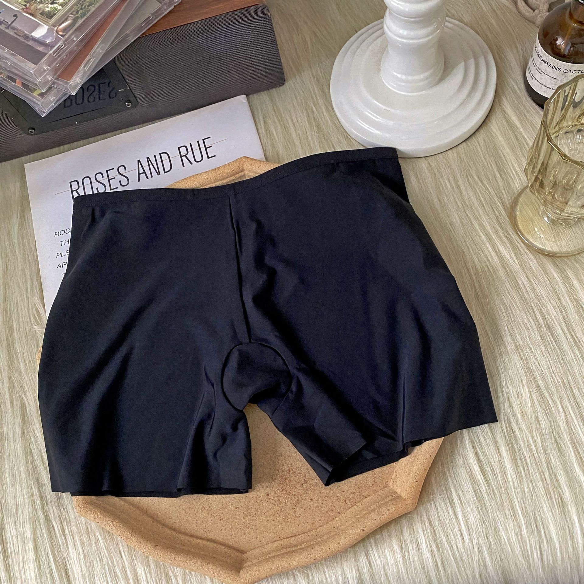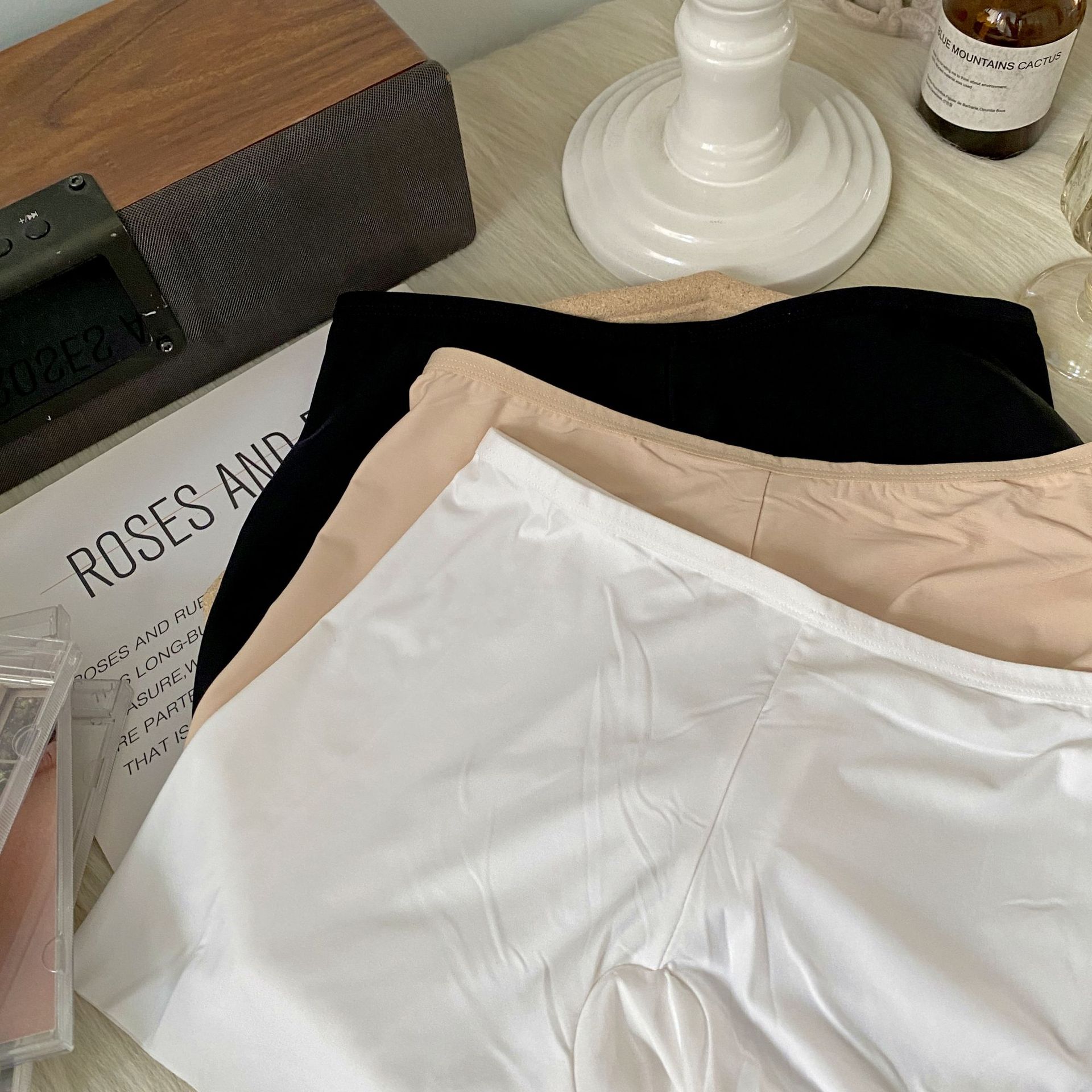 여름 새로운 솔리드 컬러 간단한 추적없는 쿨 아이스 실크 바토밍 반바지 여성의 중간 허리 통기성 안티 러닝 안전 바지